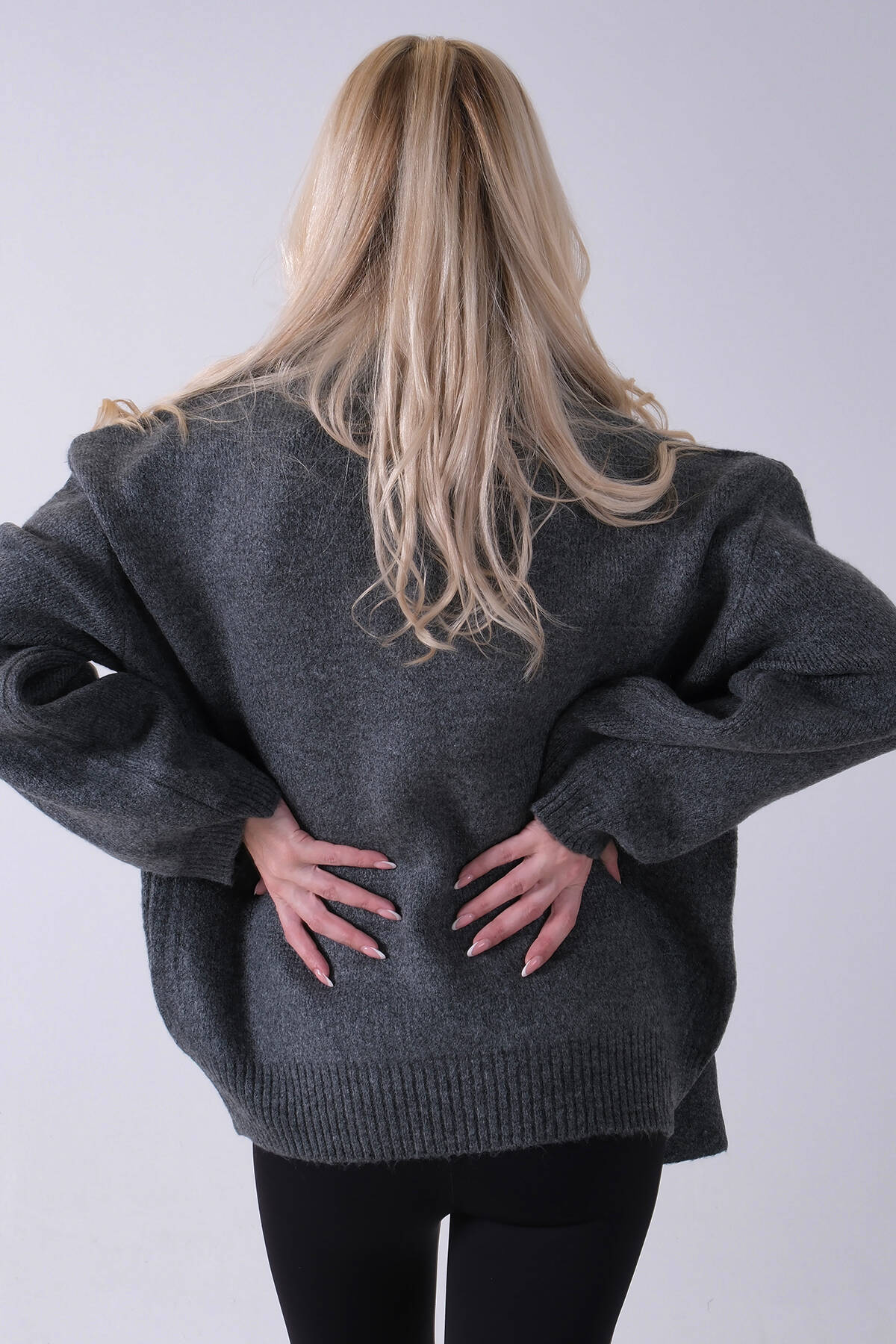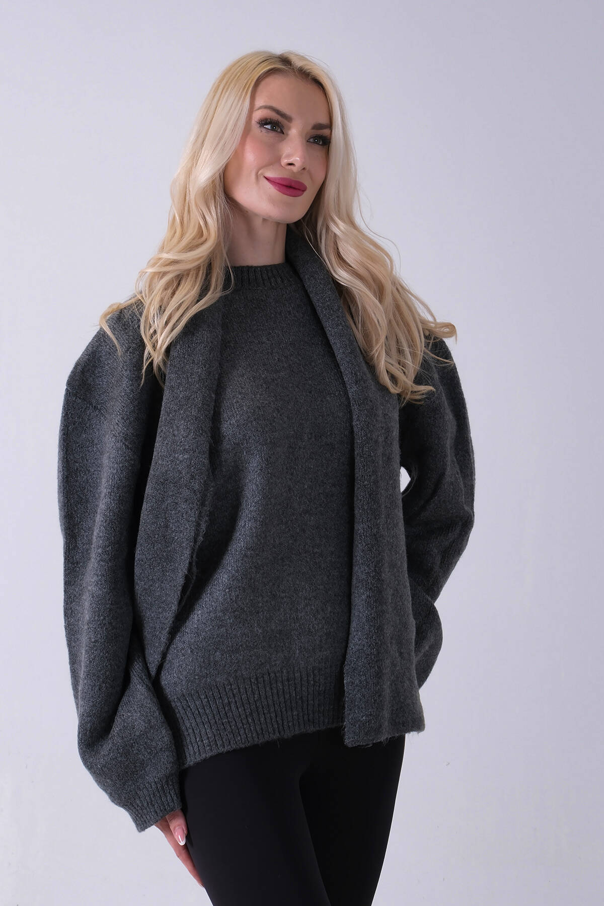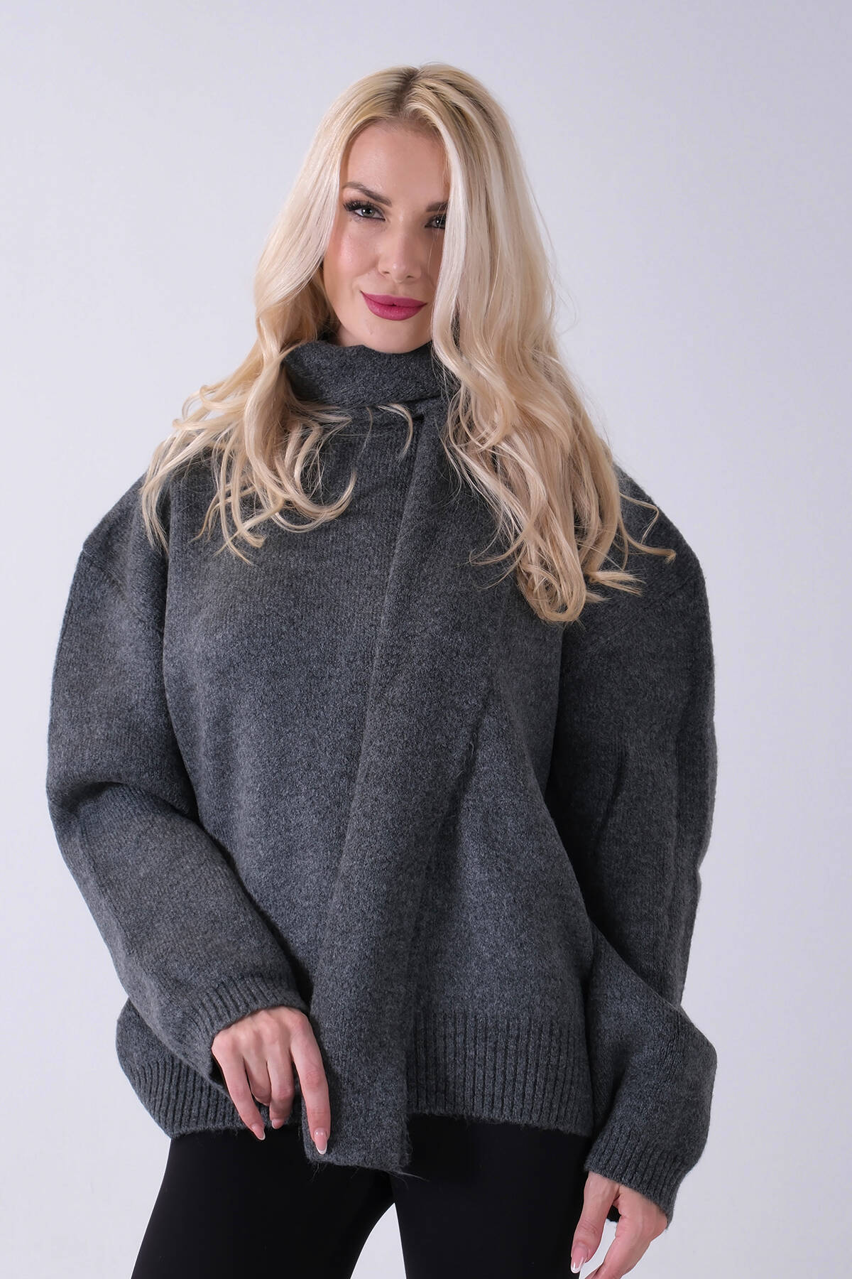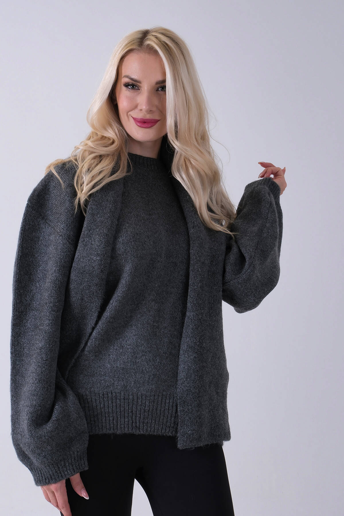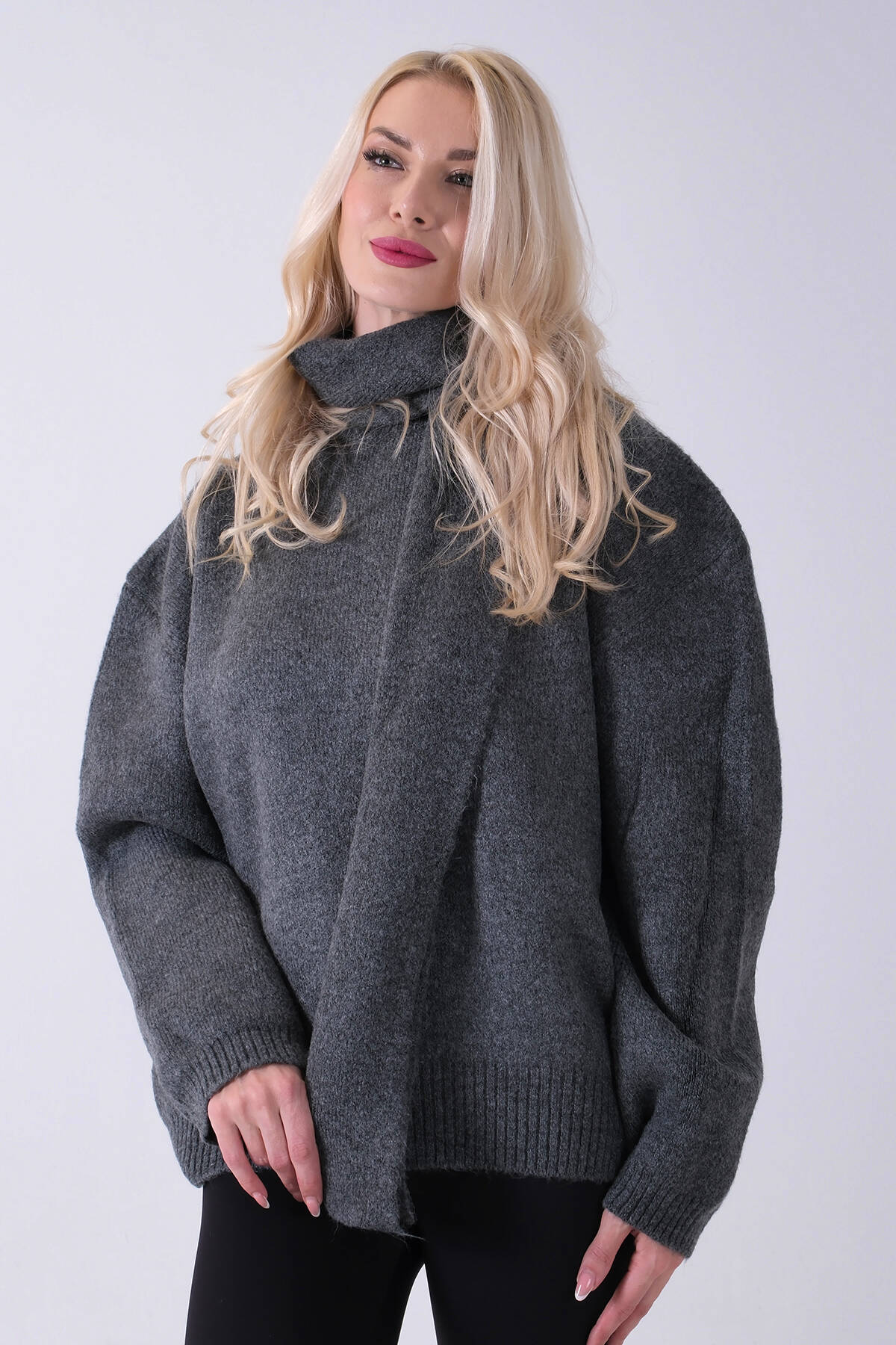 Antrasit Şal Aksesuarlı Bisiklet Yaka Triko Kazak 46892633.315