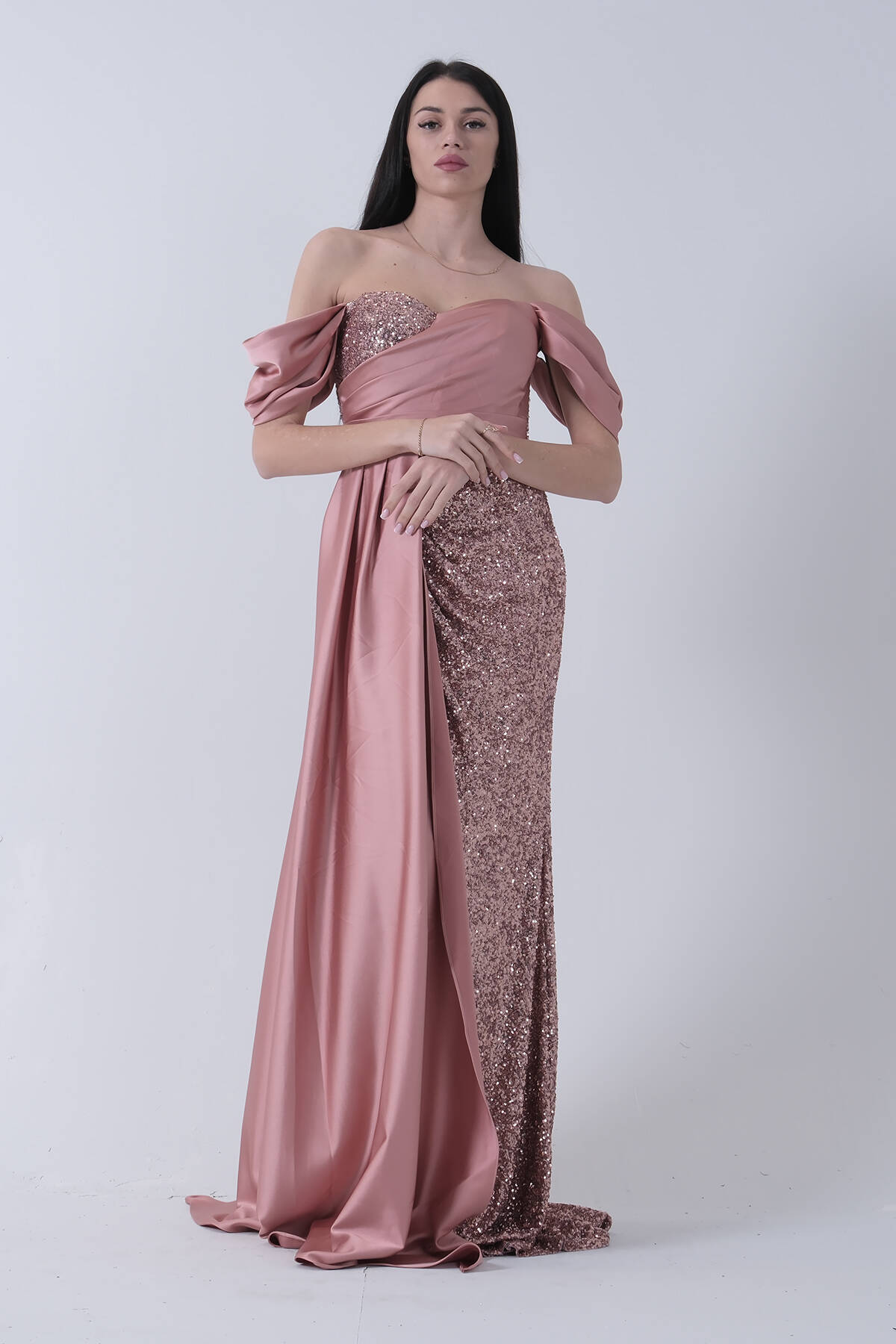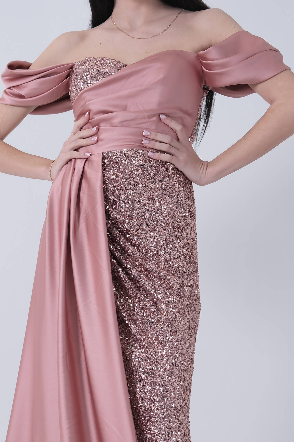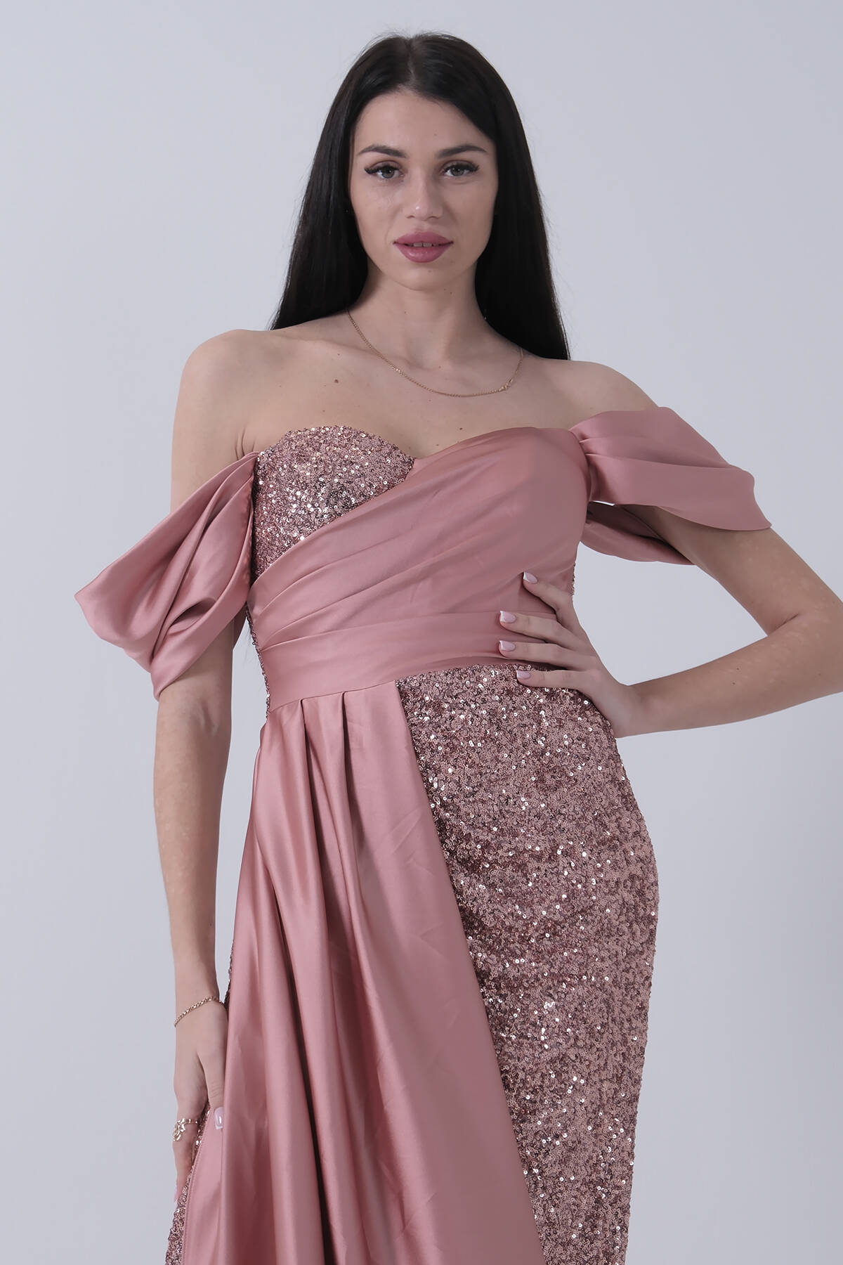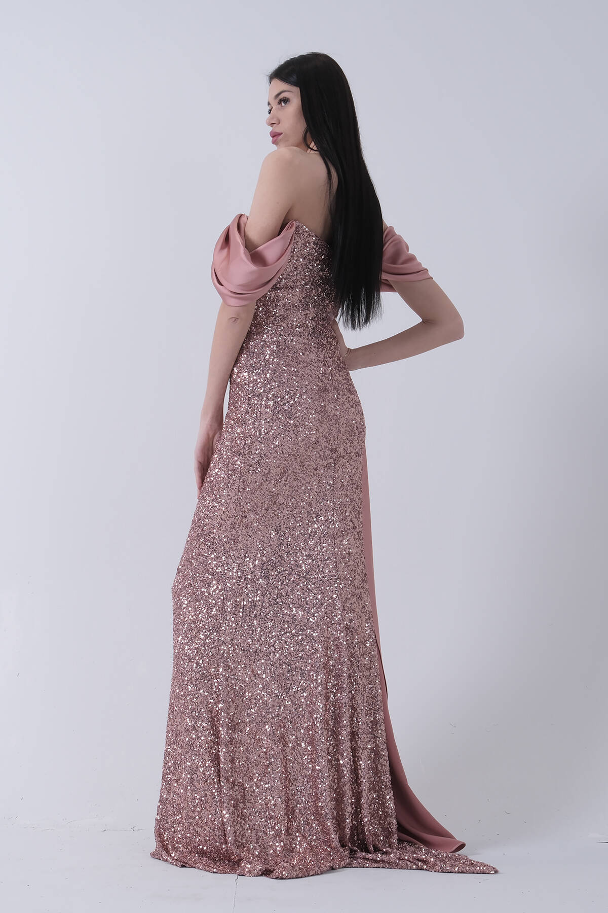 Bakır Pul Payet Detaylı Yırtmaçlı Abiye 9705321.231