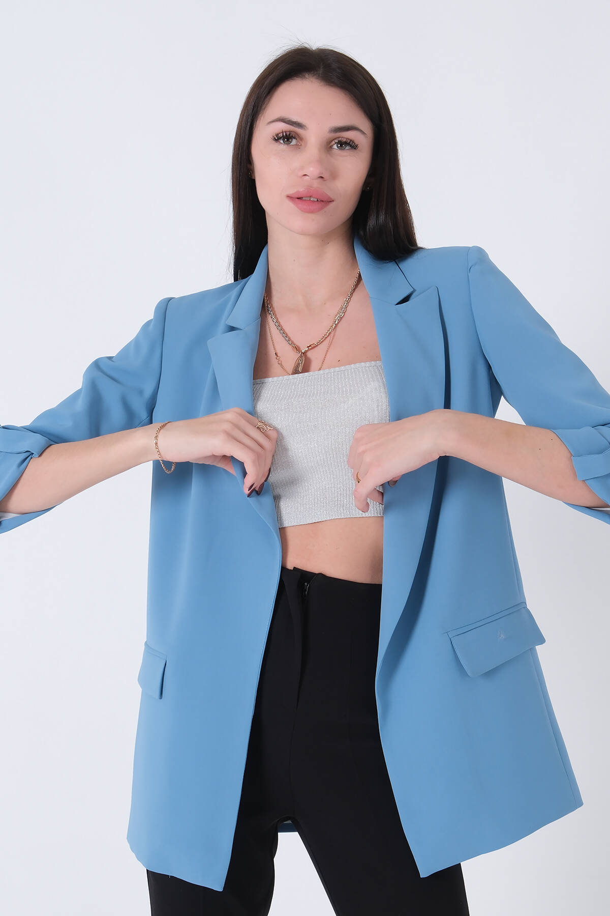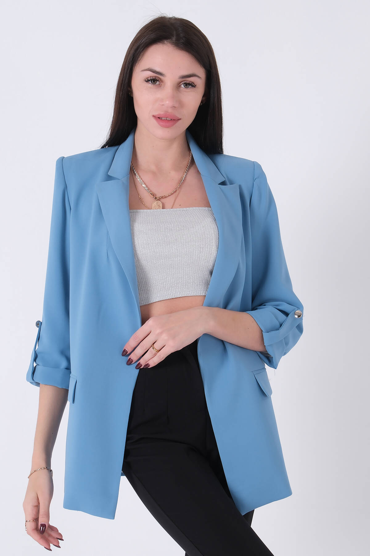 Bebe Mavi Astarlı Kolları Düğme Toparlamalı Ceket 0105136.449