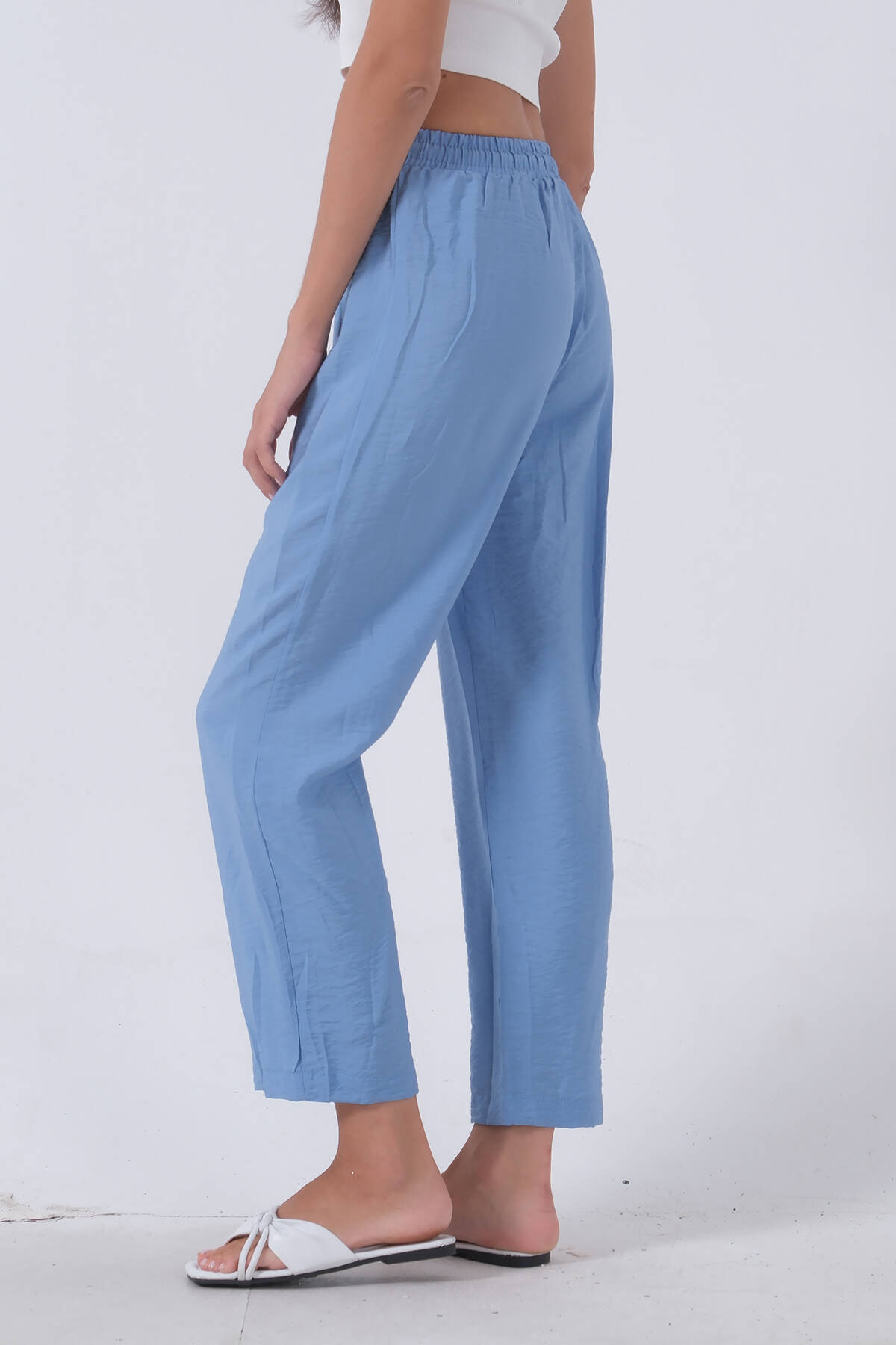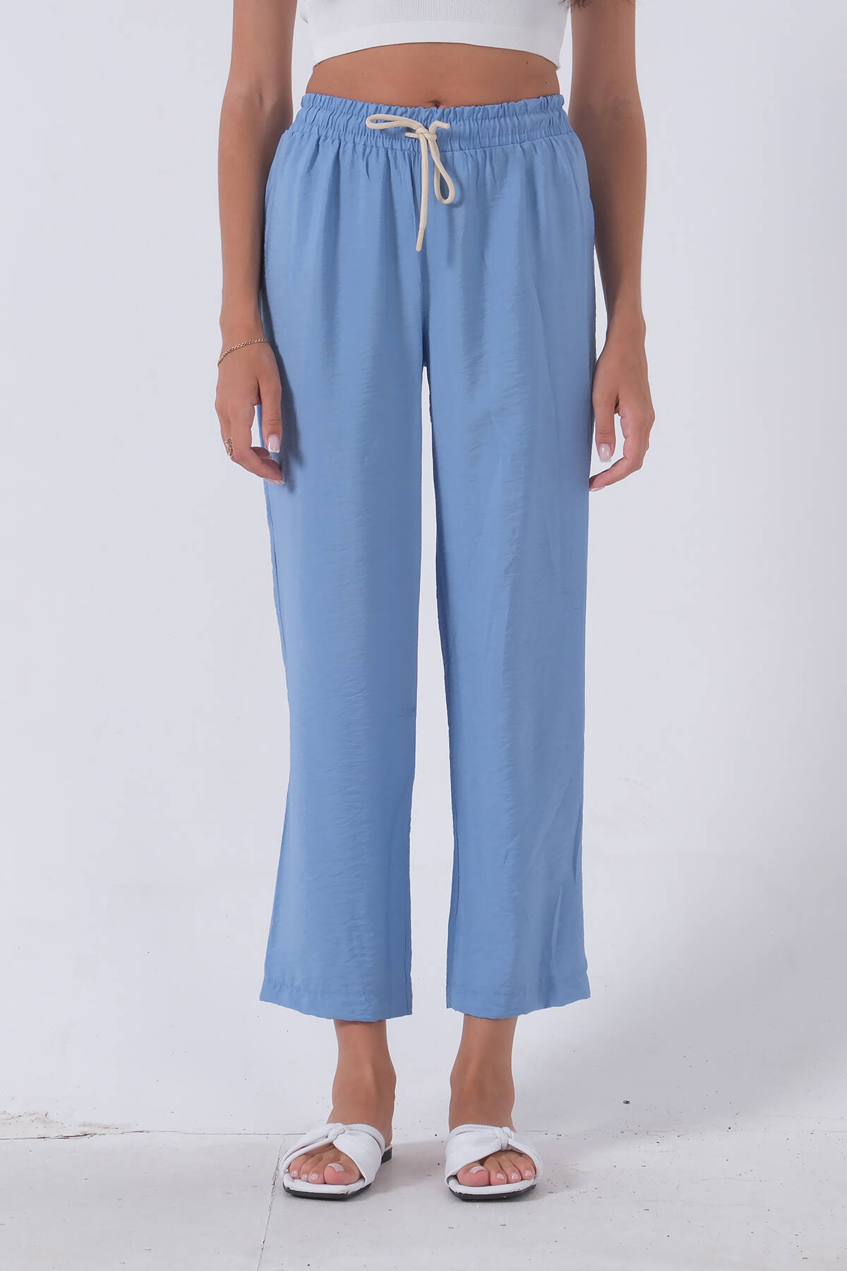 Bebe Mavi Belden Bağlamalı Lastikli Keten Pantolon 0803447.449