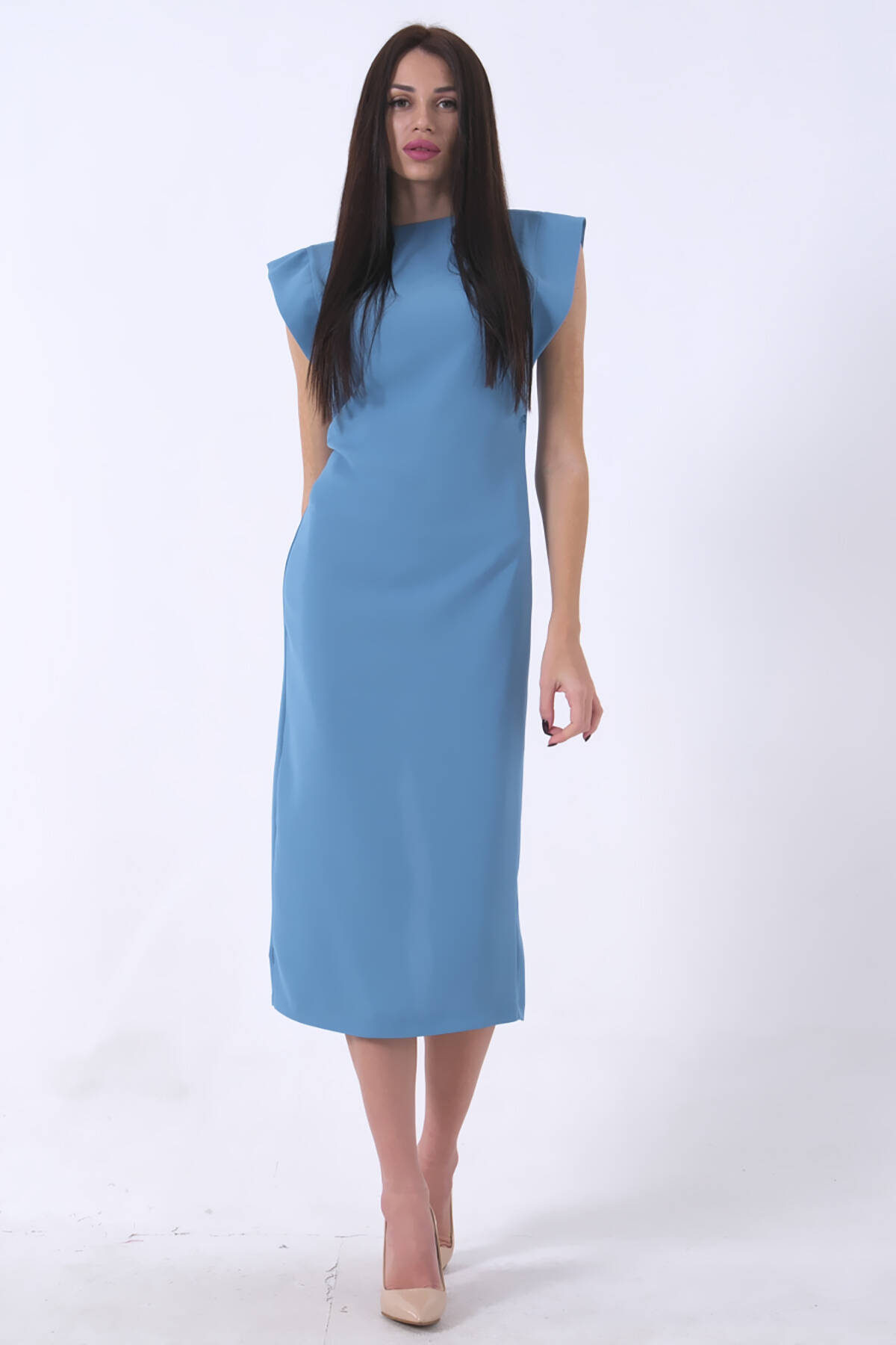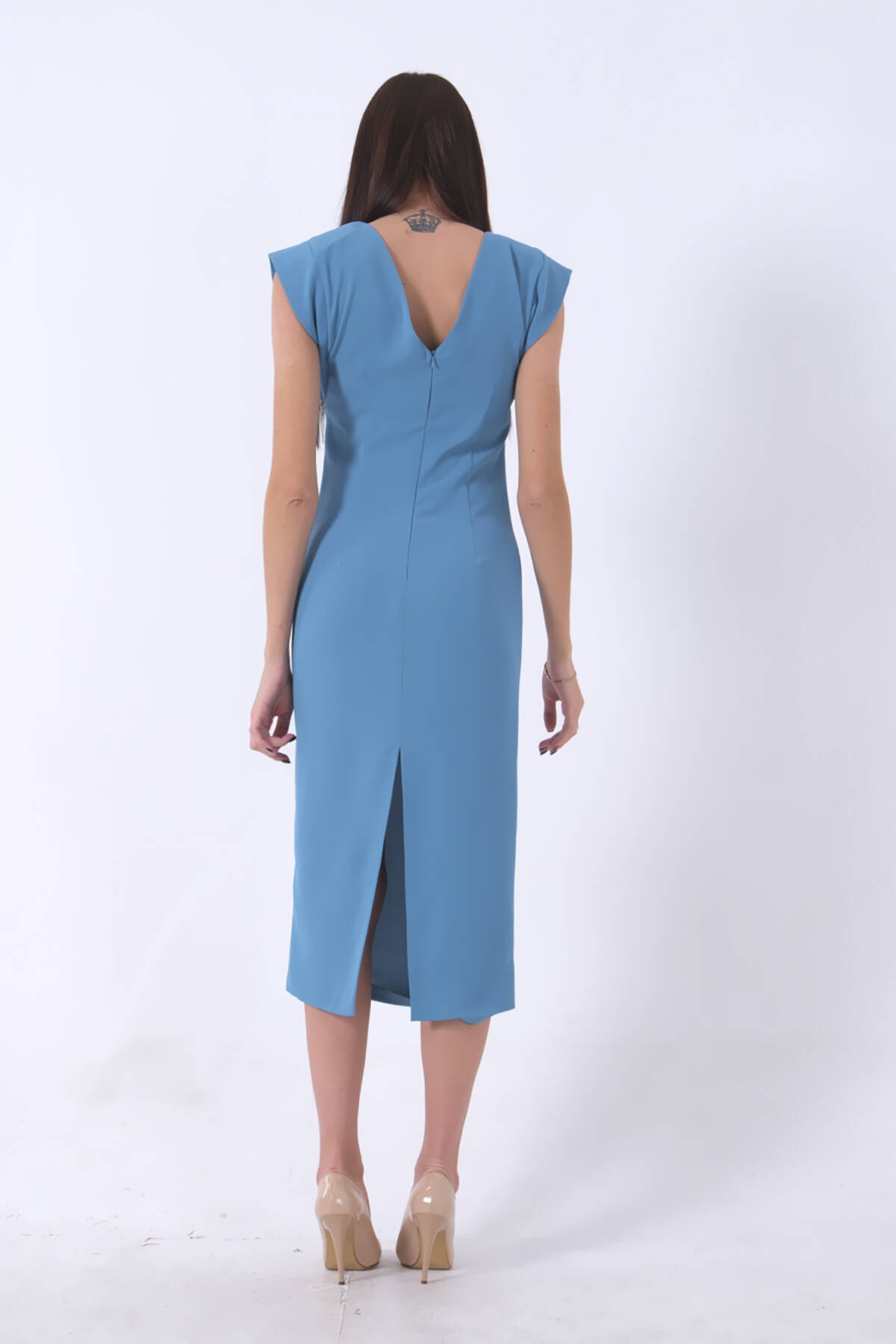Midi Boy Karpuz Kol Vatkalı Sırtı V Yaka Elbise