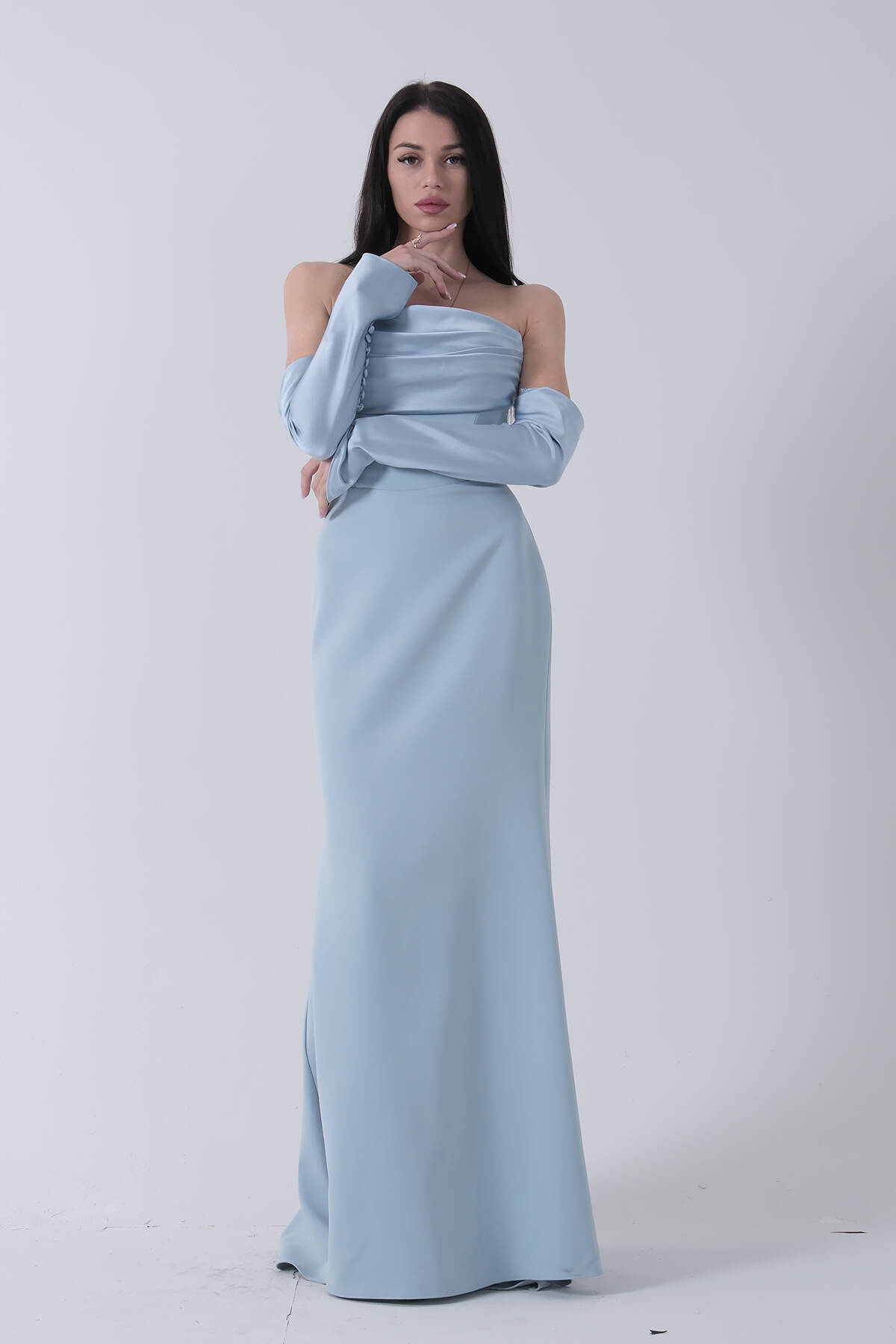 Bebe Mavi Drapeli Düğme Detaylı Uzun Abiye 9705361.449
