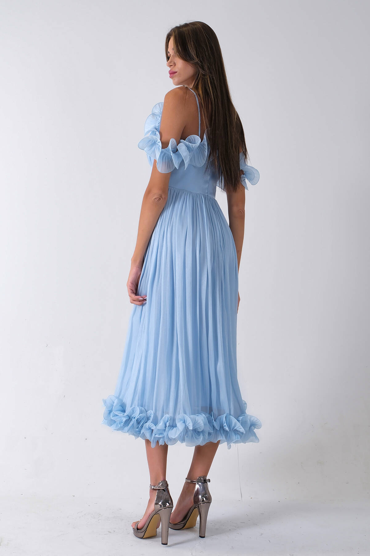 Bebe Mavi Göğüs Ve Etek Ucu Çiçek Detaylı Abiye Elbise 9705622.449