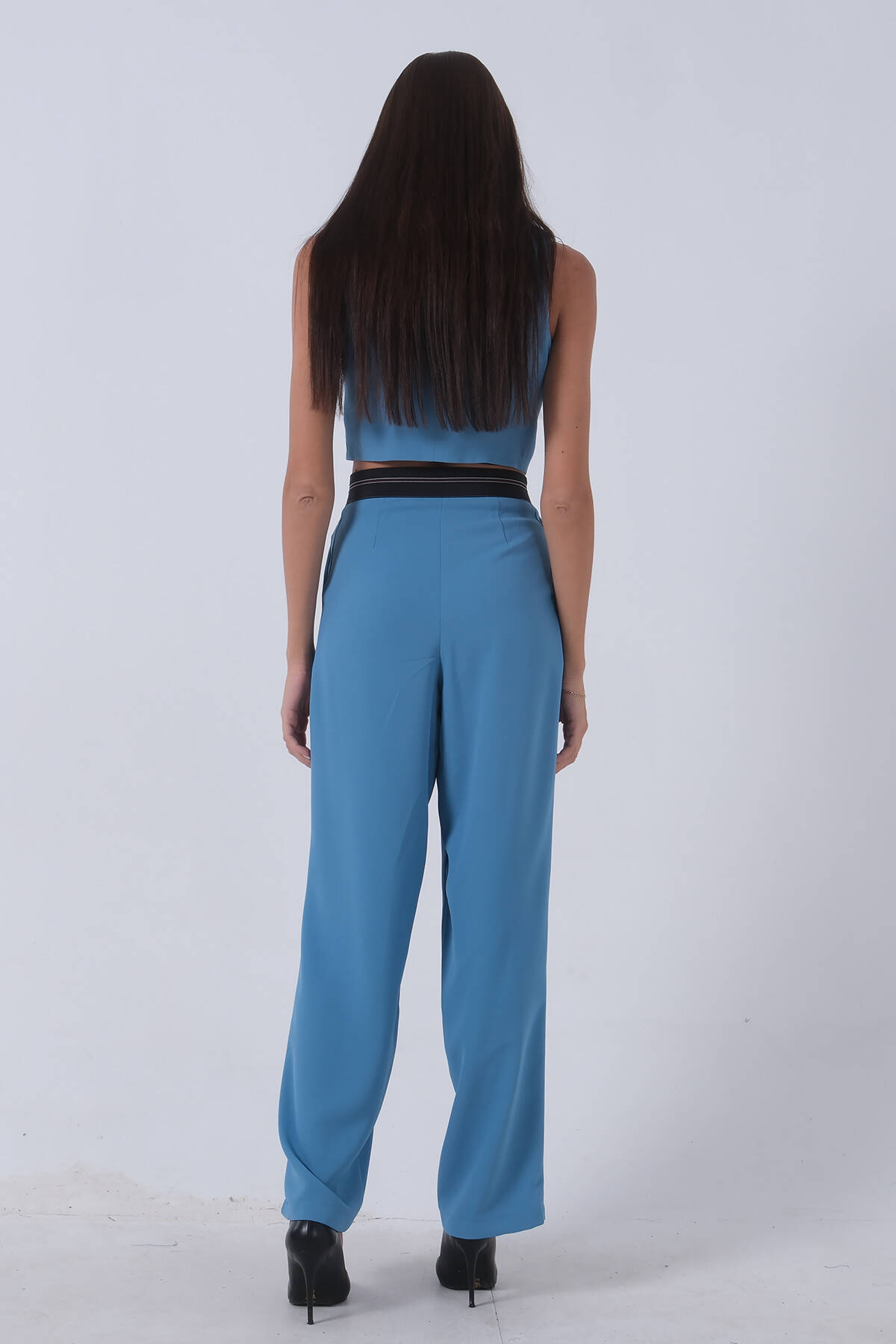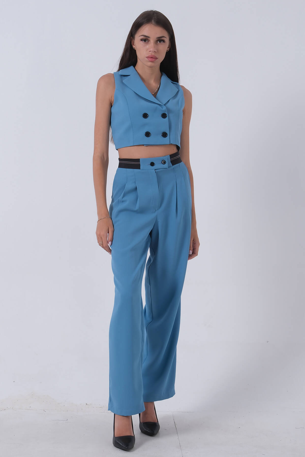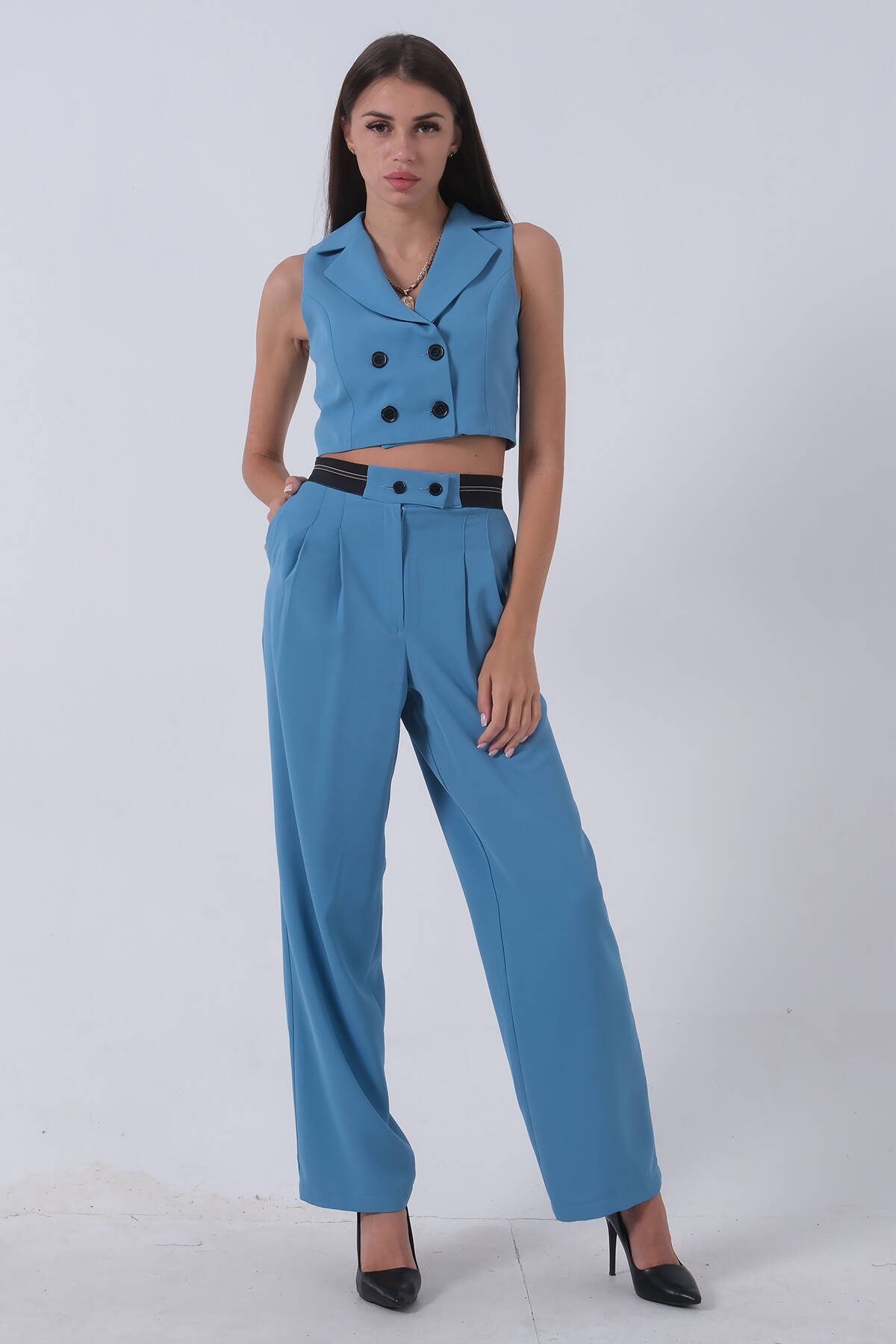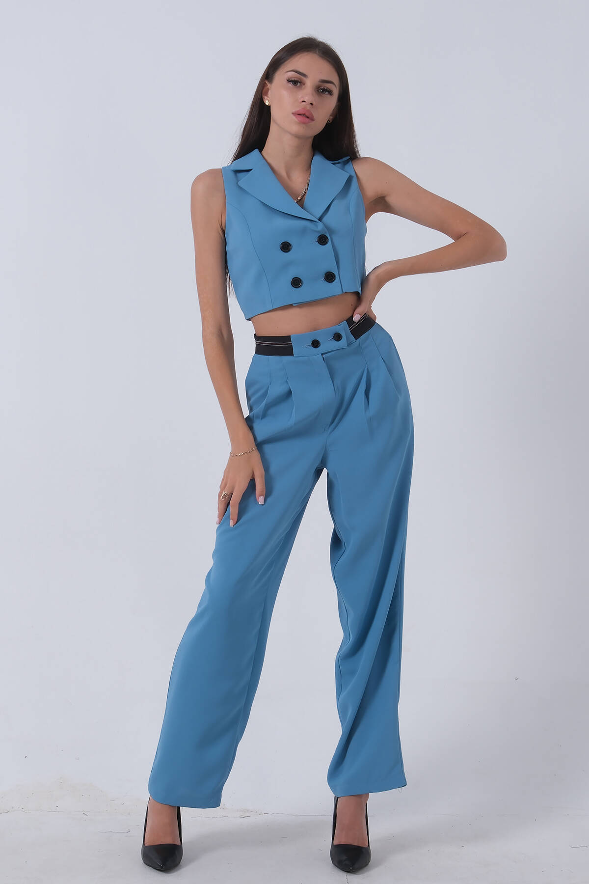 Bebe Mavi Likralı Krep Kumaş Yelekli Pantolon Takım 0106323.449