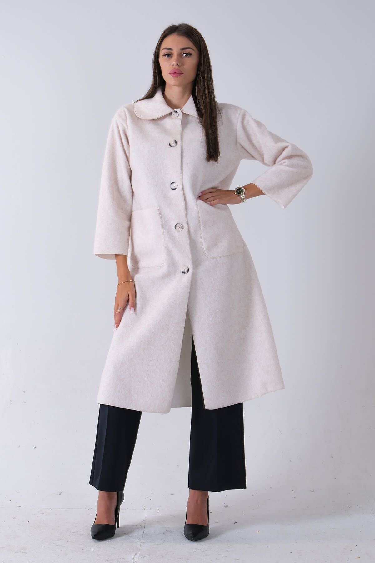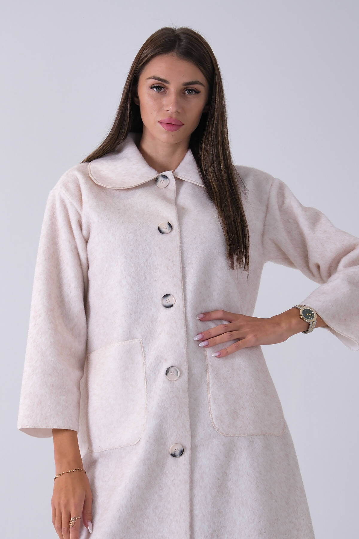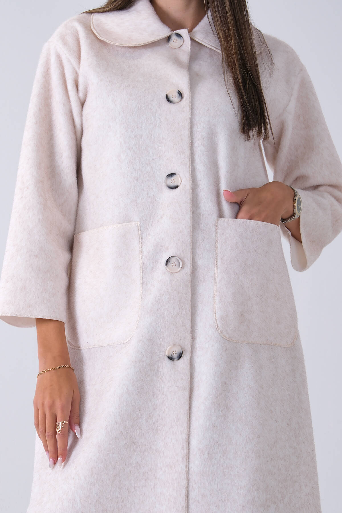 Bej Bebe Yaka Çift Cepli Kaban 31050686.55