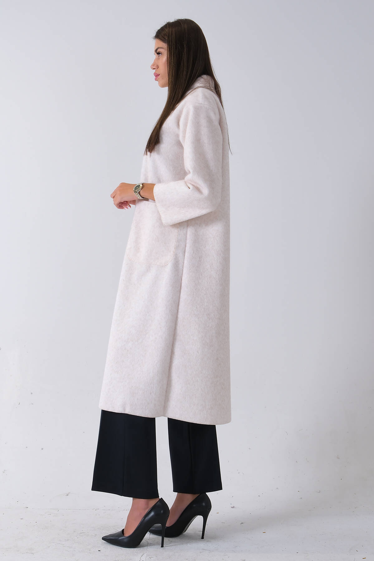 Taş Önden Düğmeli Oversize Örme Kaşe Kaban 0108068.50