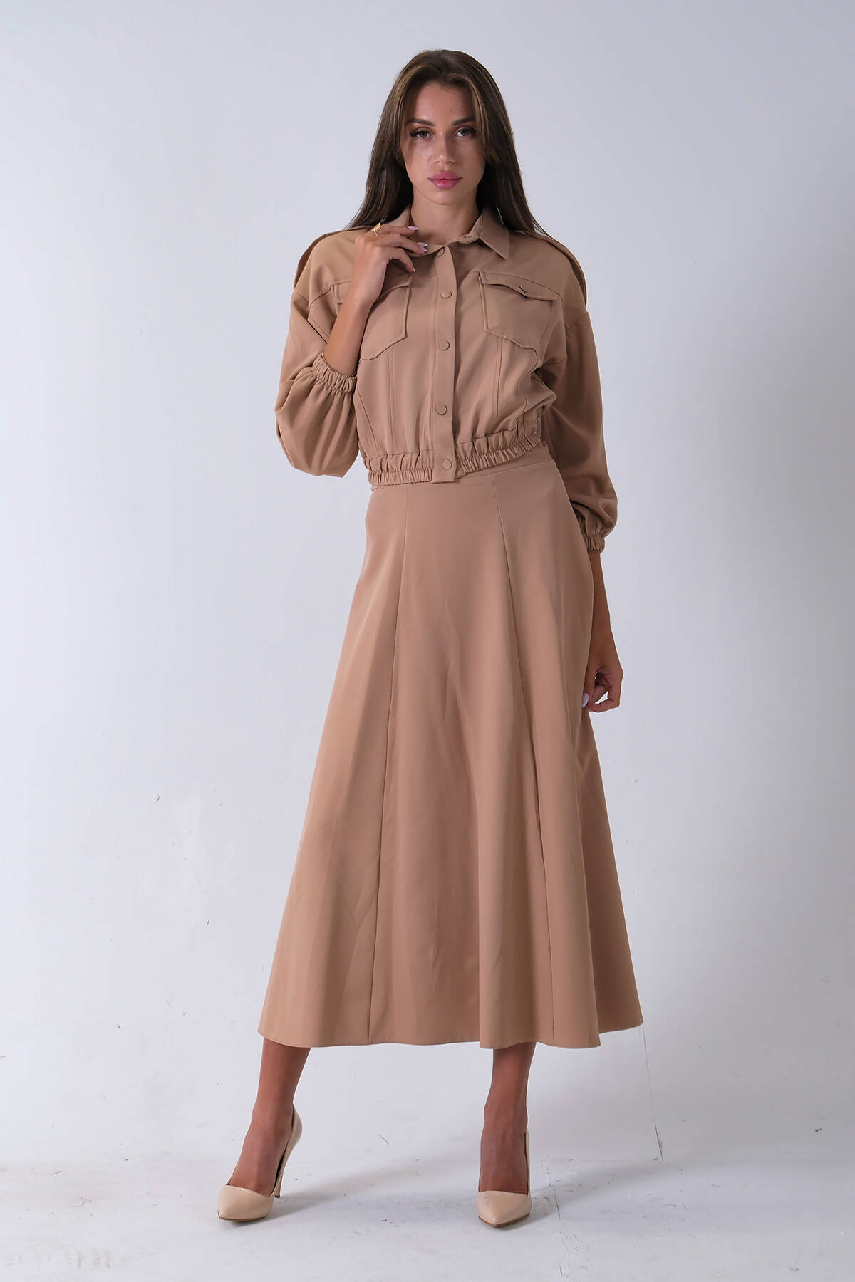 Bej Beli Lastikli Cepli Ceket ve Etek İkili Takım 4595053.55