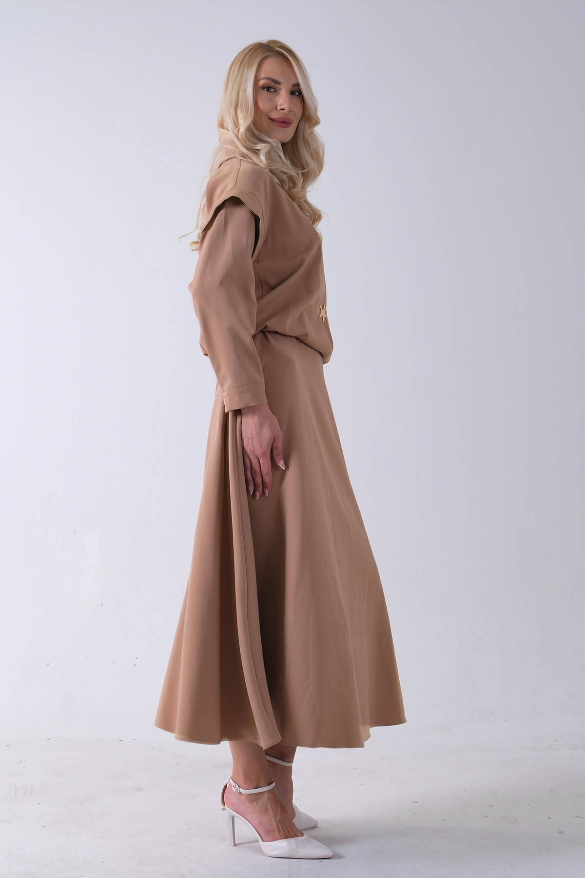 Bej Kol Fermuar Detaylı Cep Görünüm Ceket Etekli Takım 44510857.55