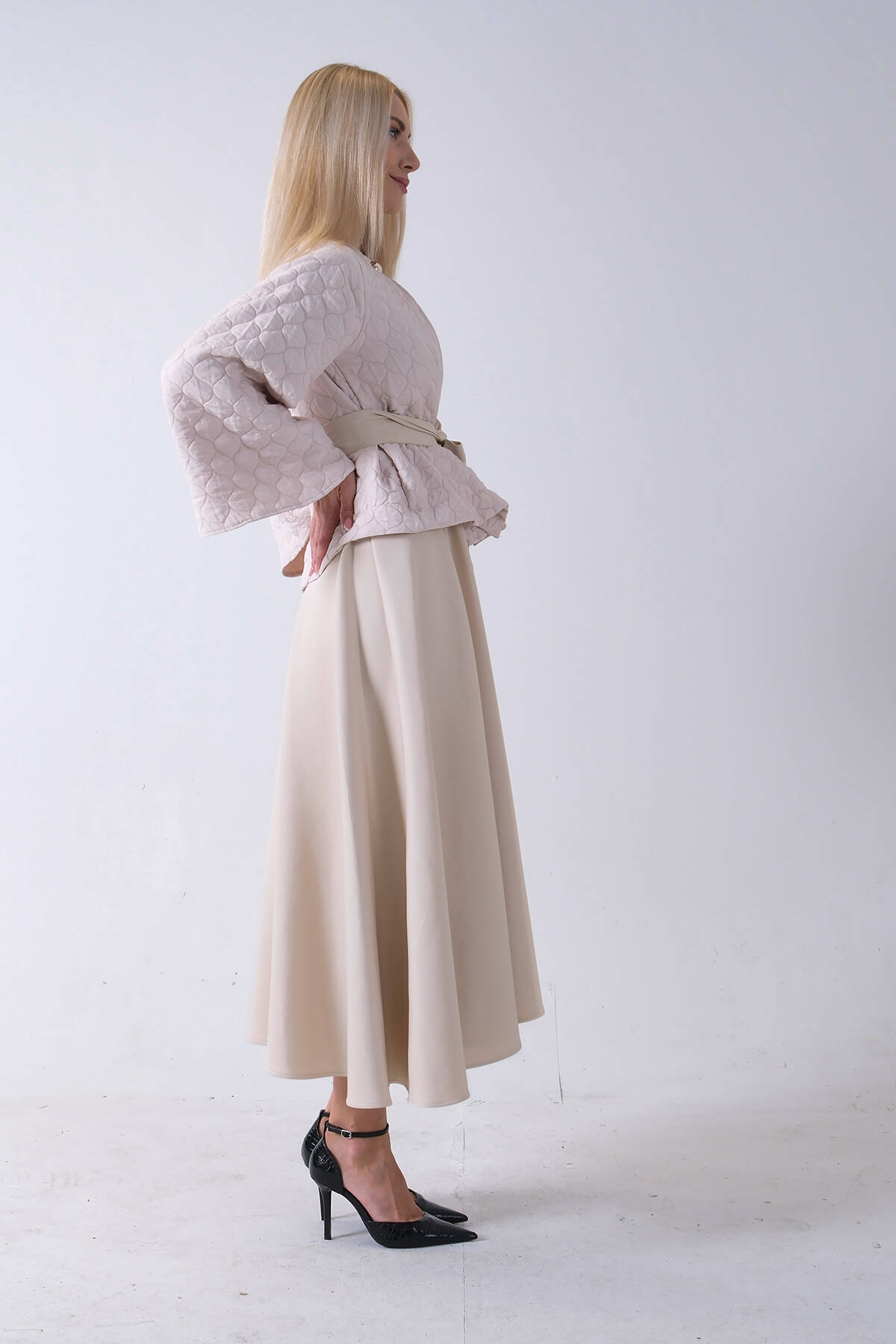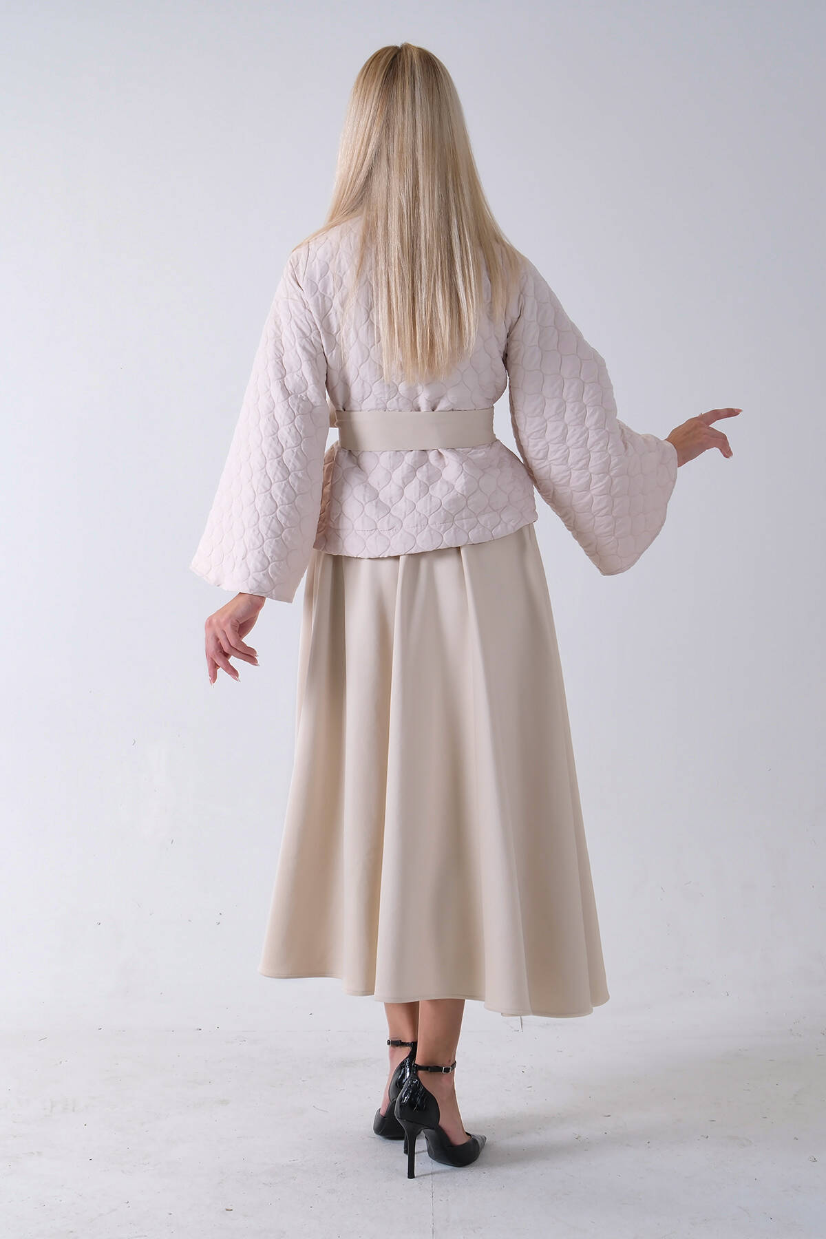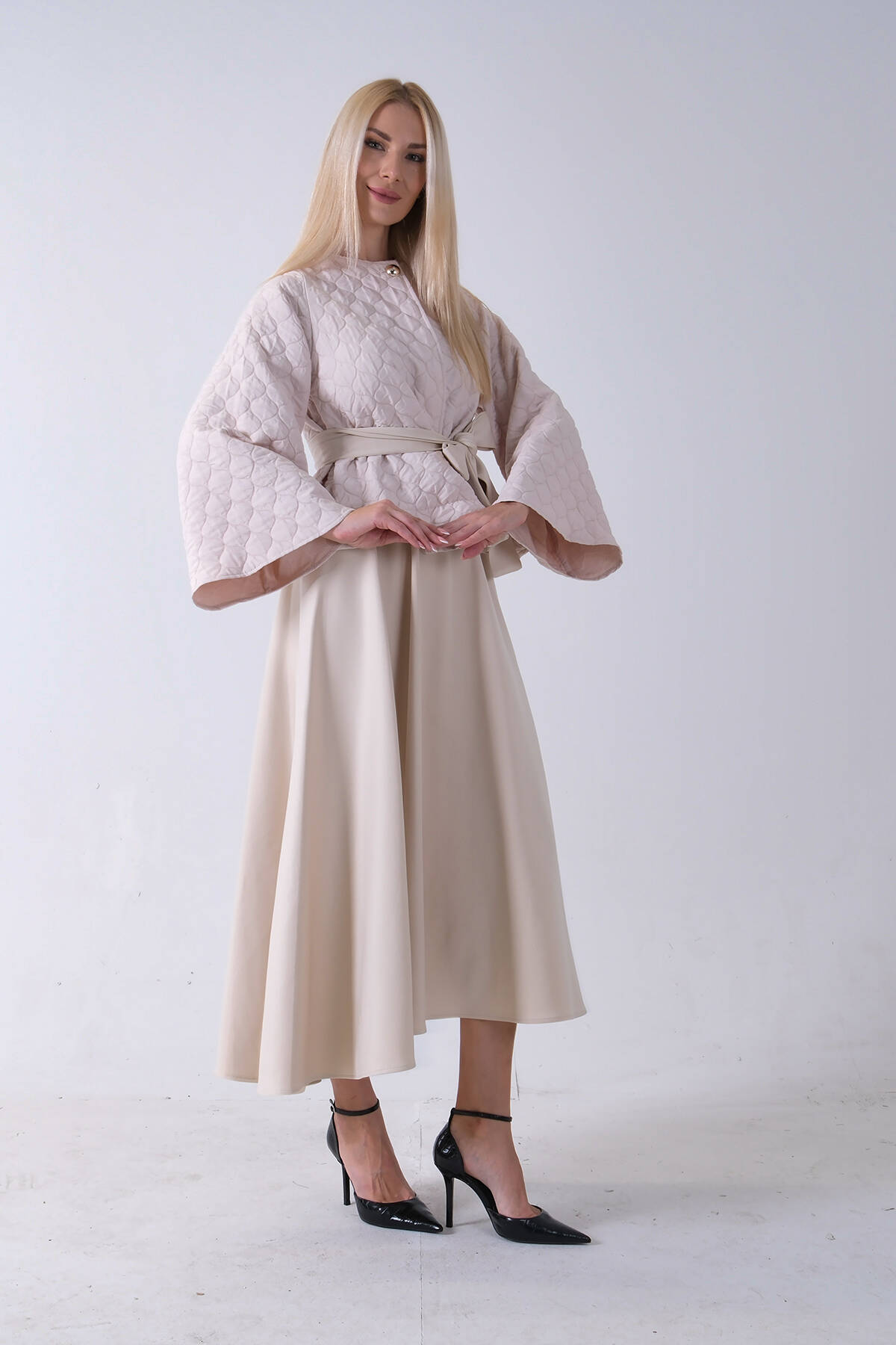 Bej Kapitone Desenli Ceket Etekli Scuba Takım 5303163.55