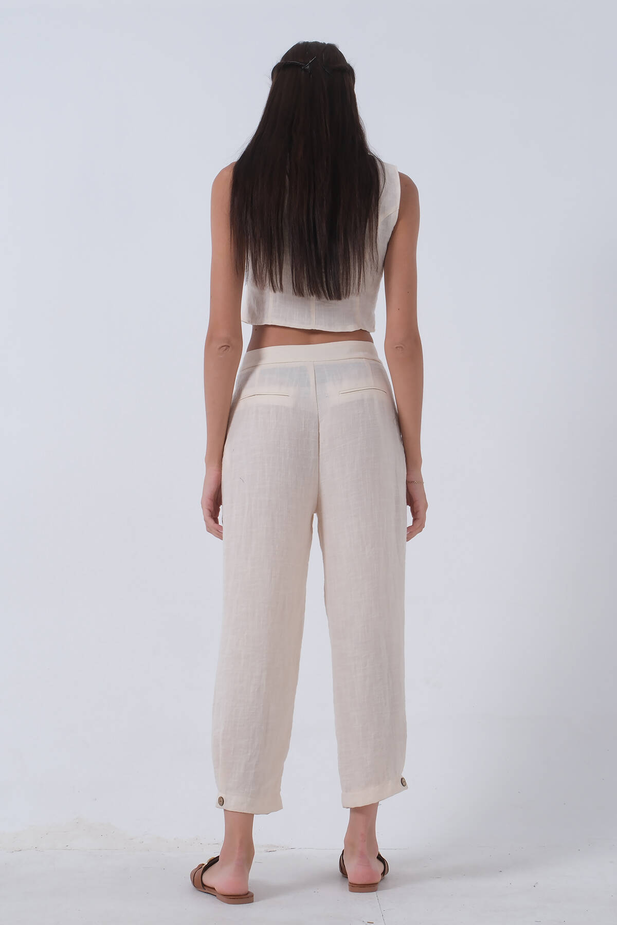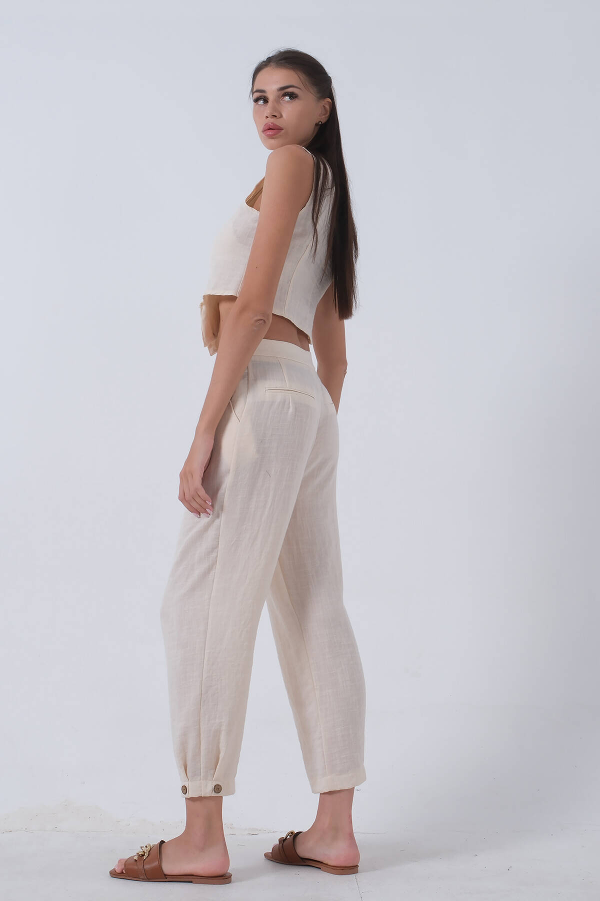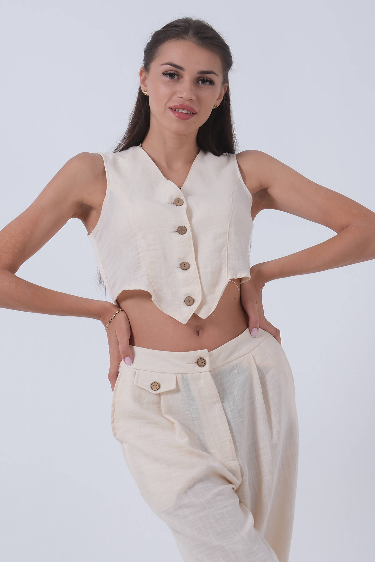 Bej Keten Yelekli Takım 0106321.55
