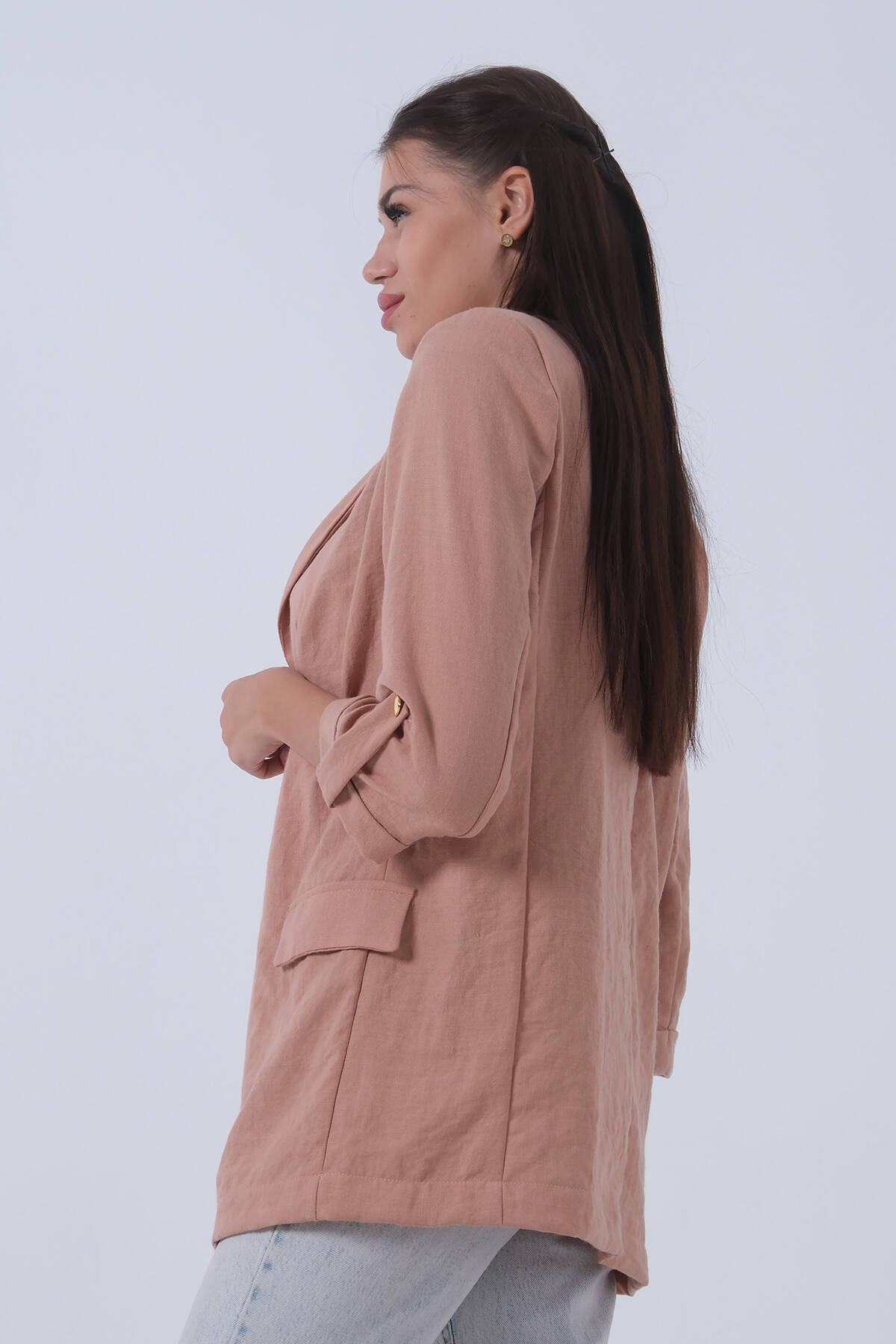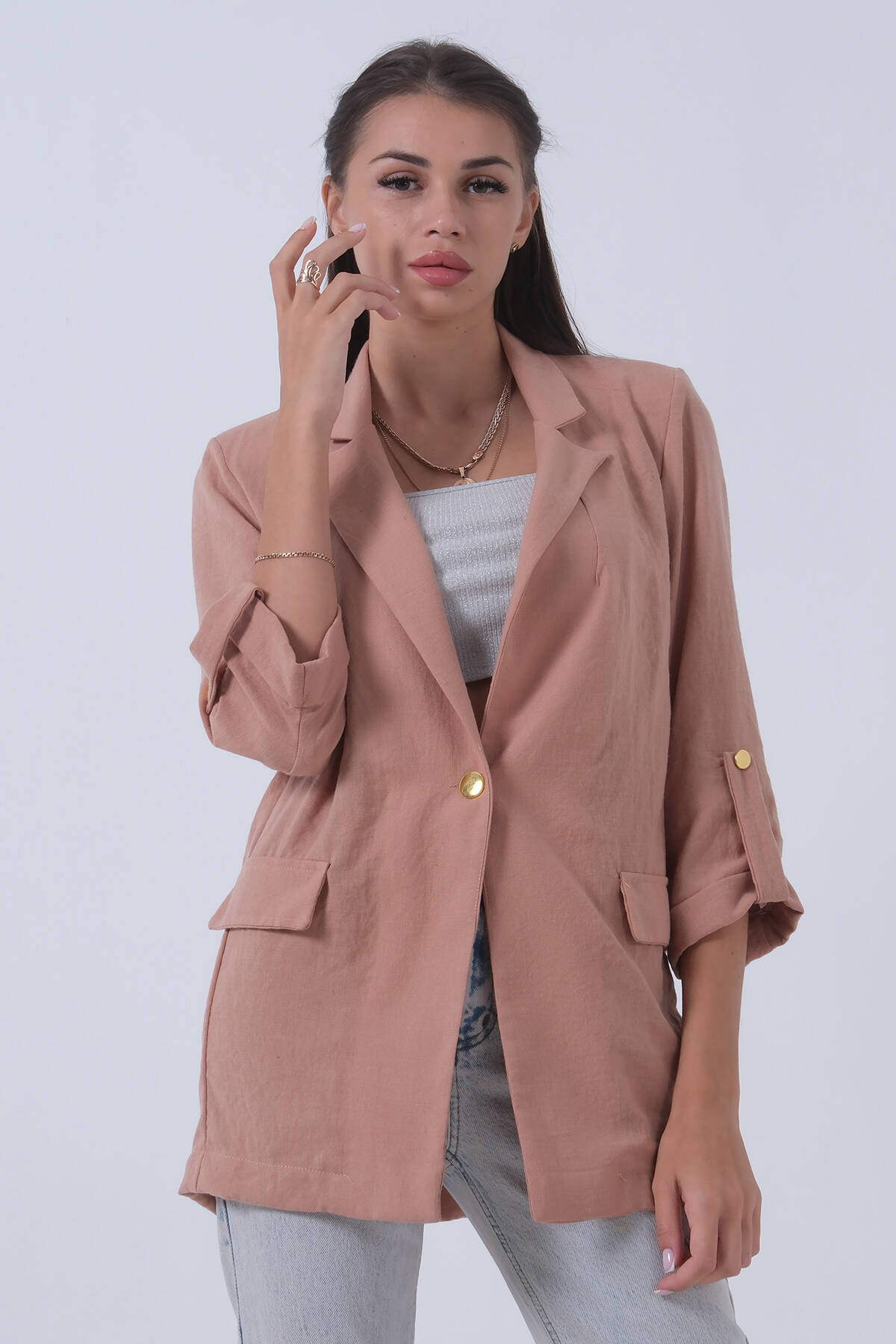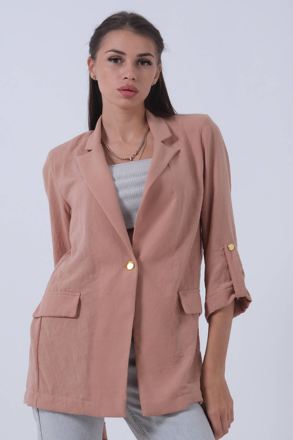 Bej Kolları Düğme Toparlamalı Keten Ceket 01051361.55