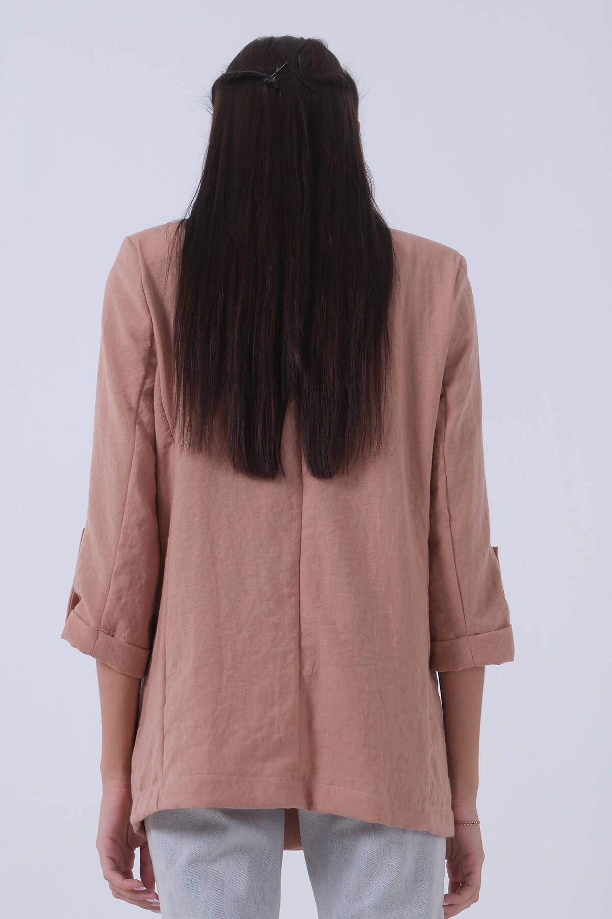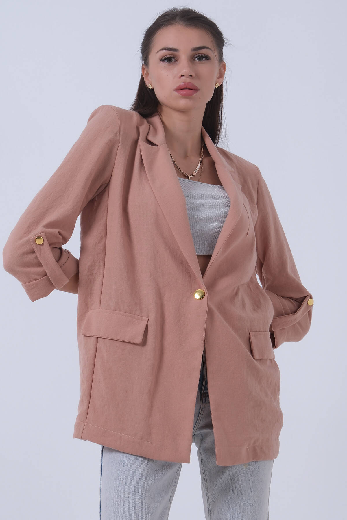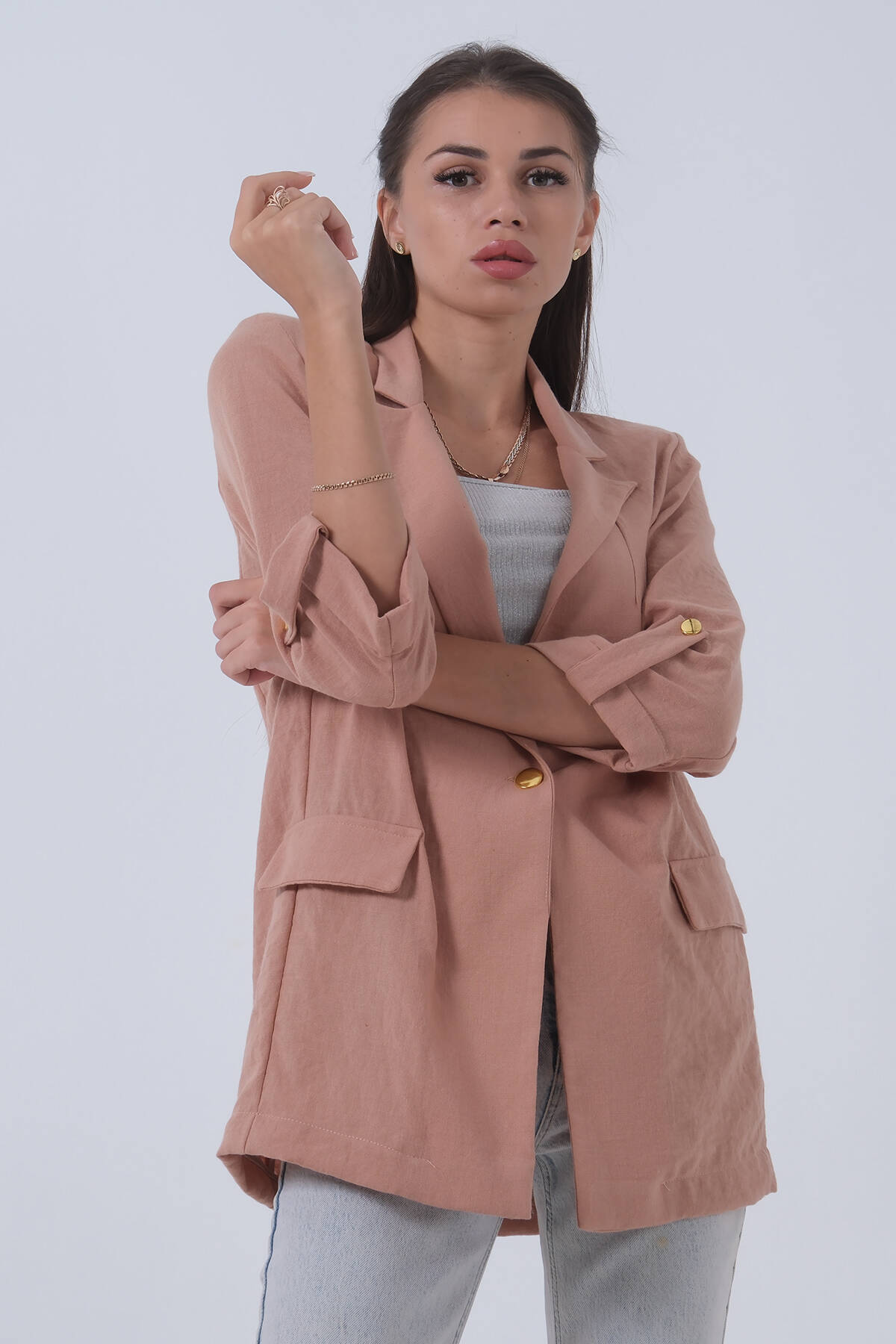 Bej Kolları Düğme Toparlamalı Keten Ceket 01051361.55