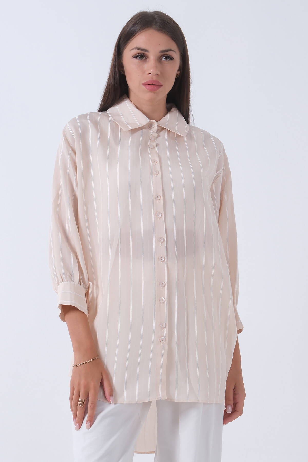 Ekru Üzeri Taş Detaylı Gizli Düğmeli Tunik 44510646.147