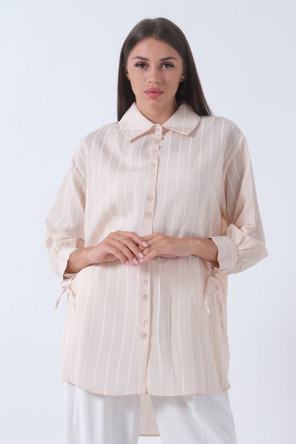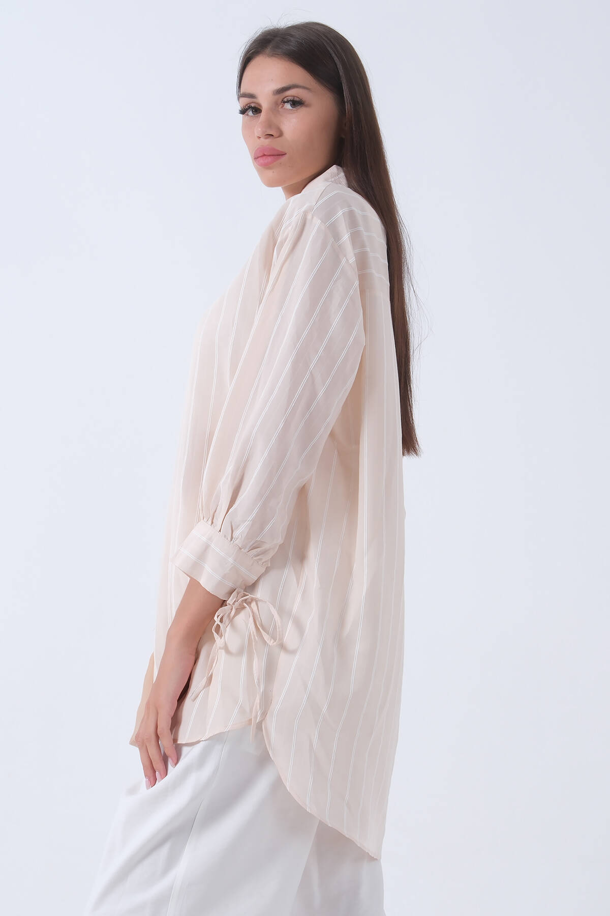 Bej Manşeti Bağcıklı Tunik 3972905.55
