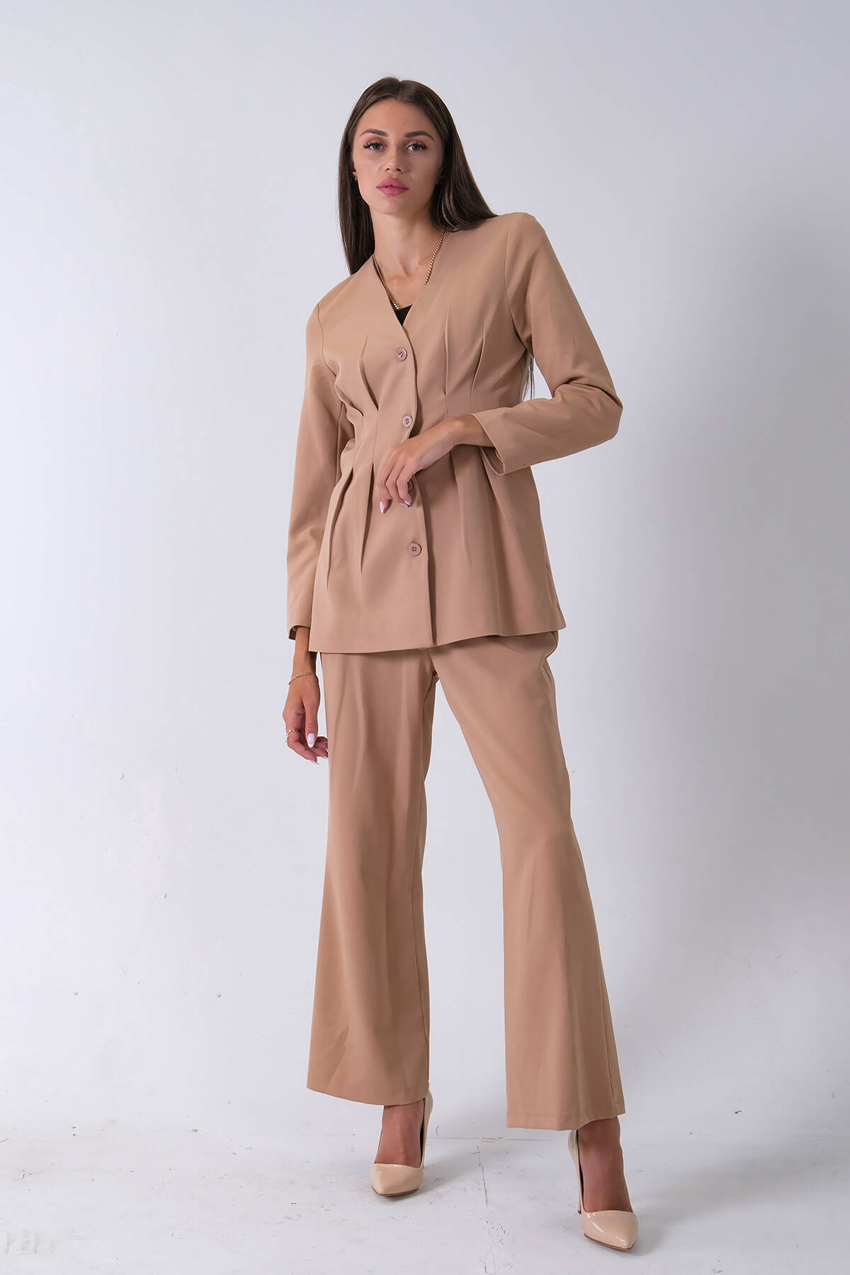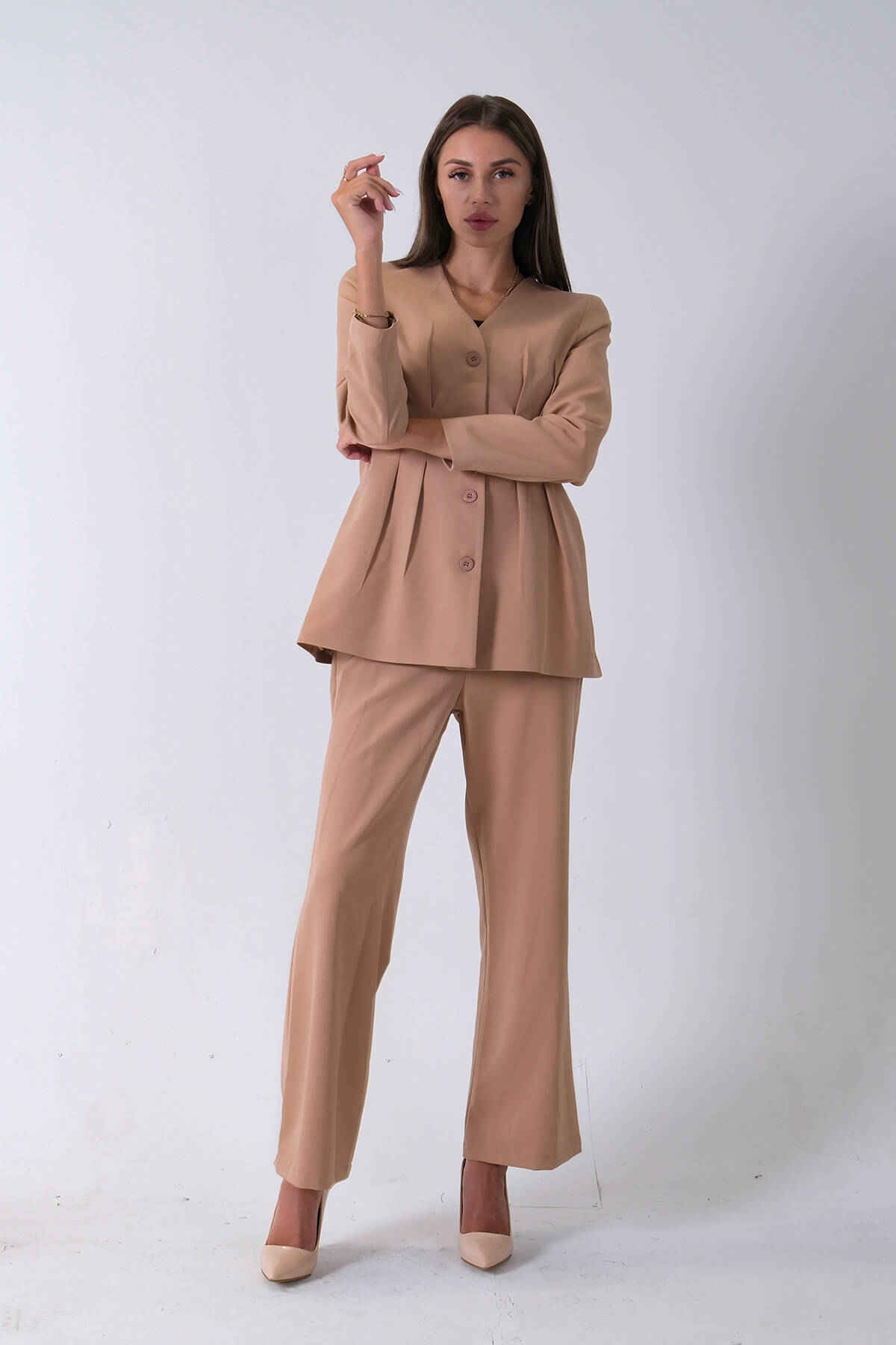 Bej Önü 4 Düğme Kapamalı Pantolonlu Takım 4592261.55