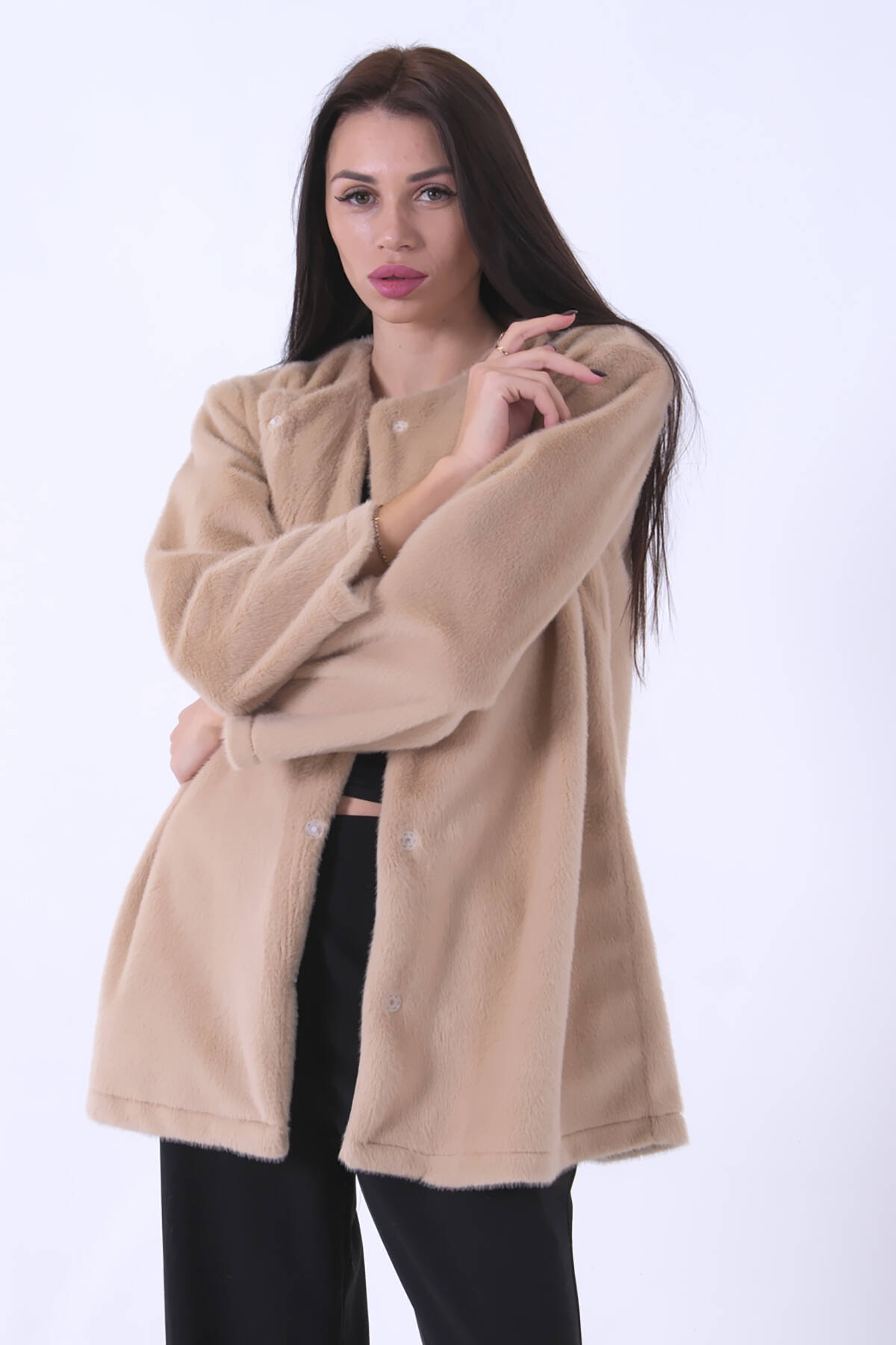 Bej Önü Kapamalı Seyyar Kemerli Peluş Ceket 0105140.55