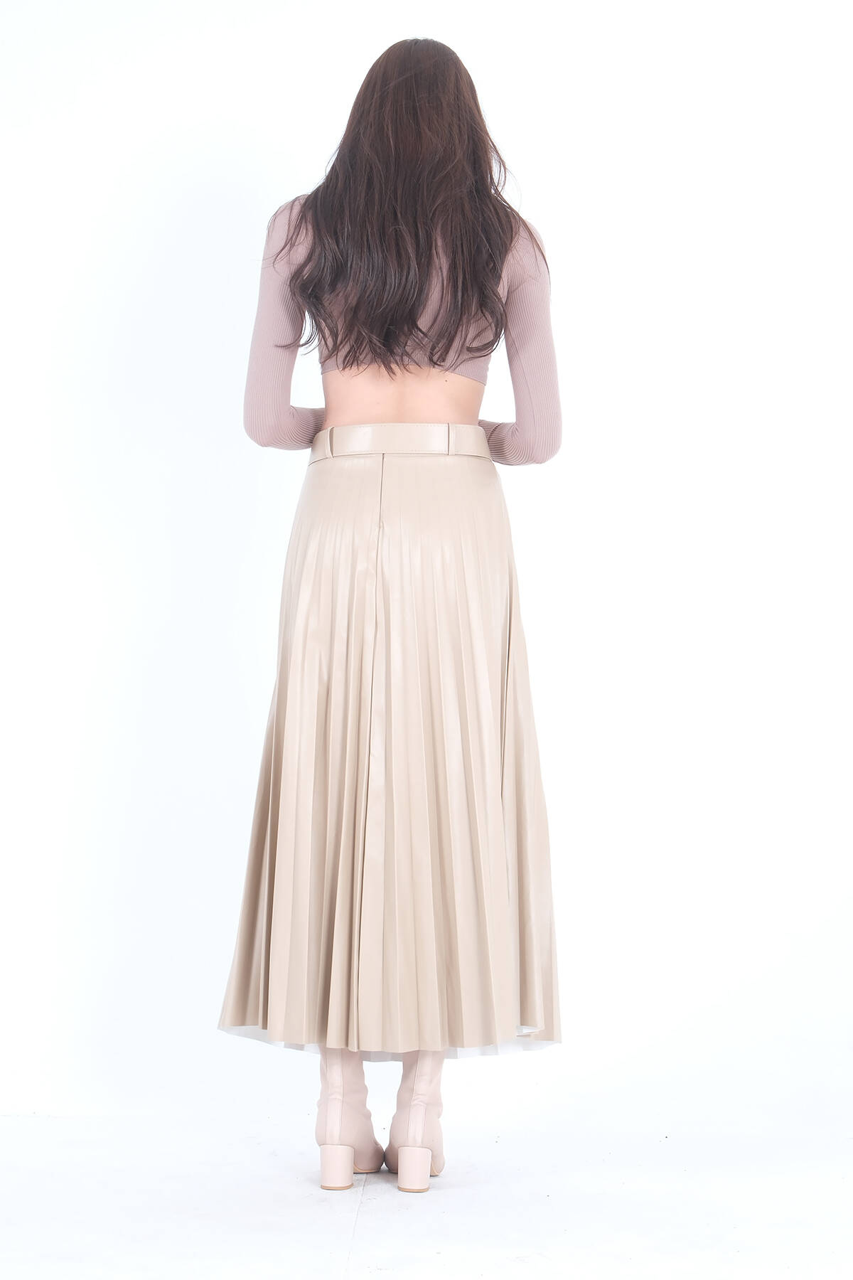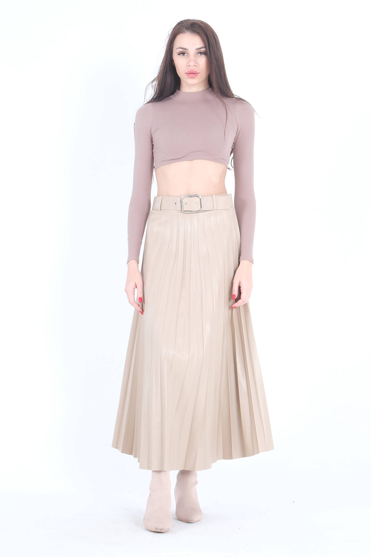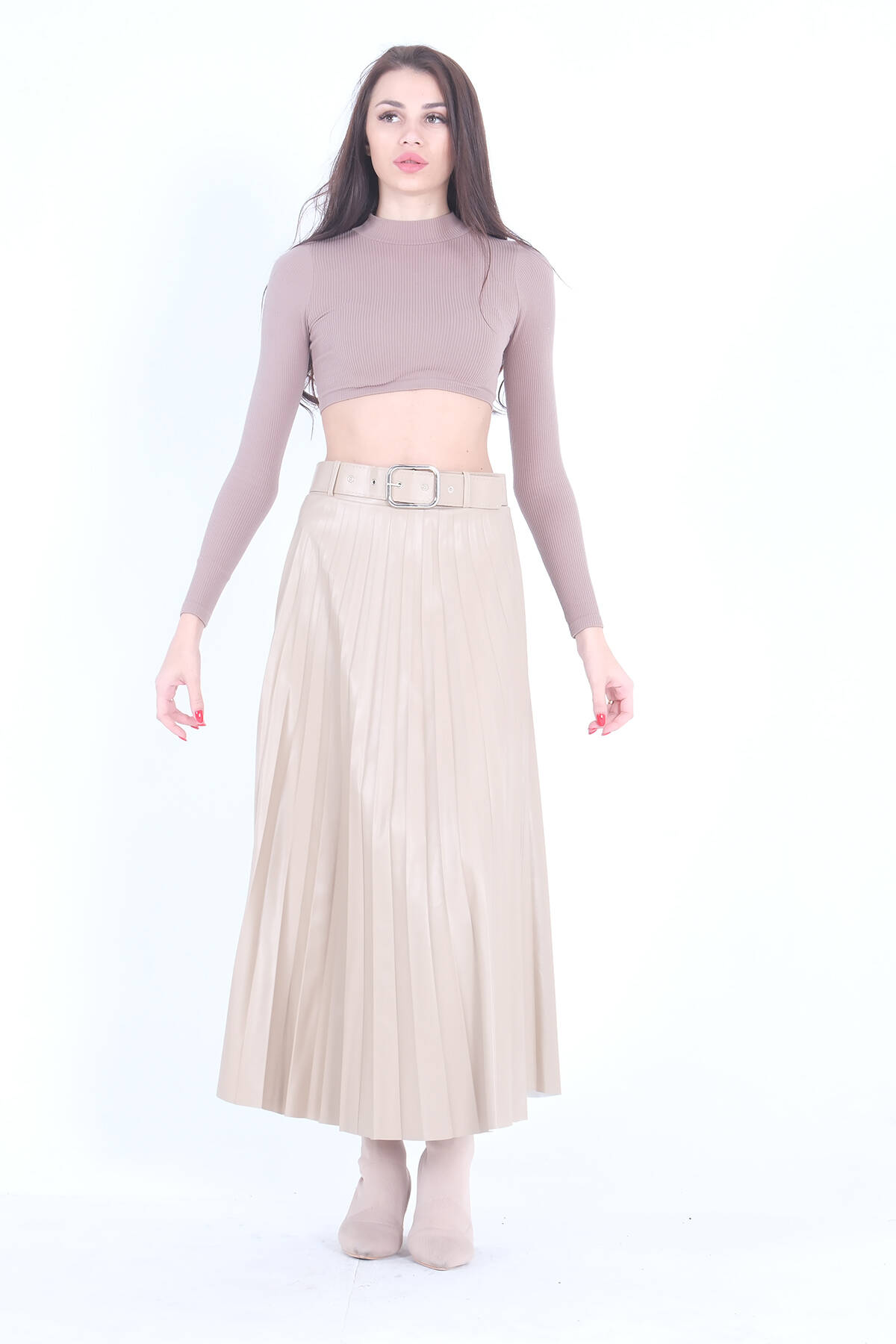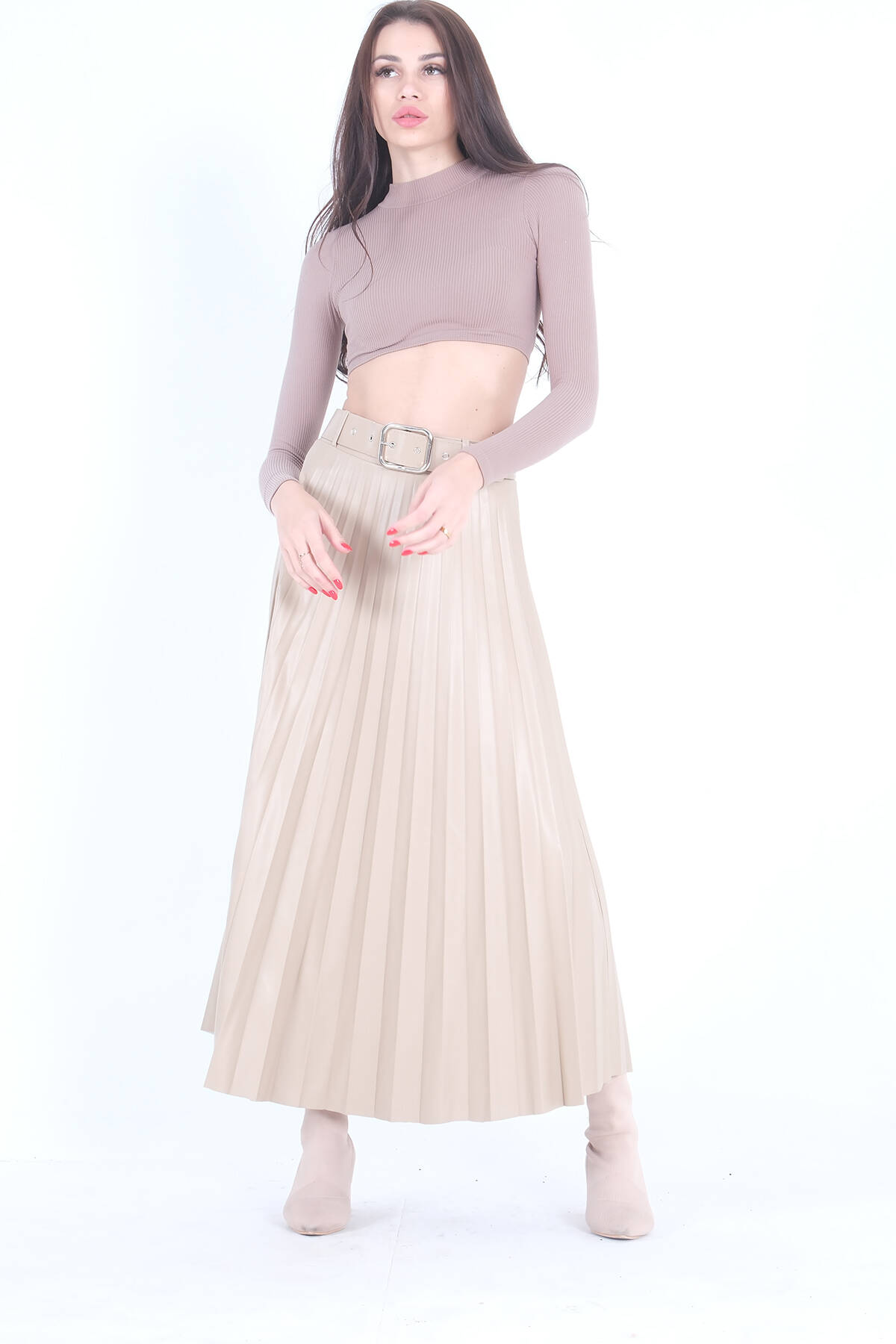 Bej Pliseli Deri Etek 4591002.55