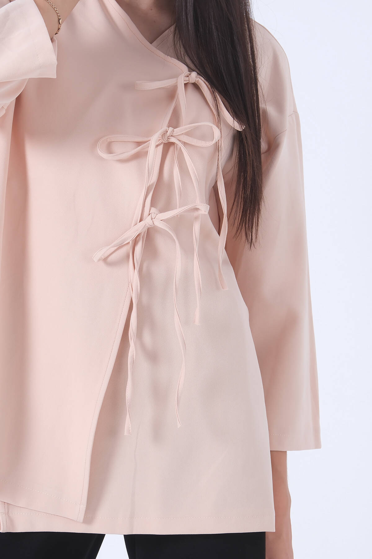 Bej Yandan Bağlamalı Double Kumaş Ceket 31050707.55