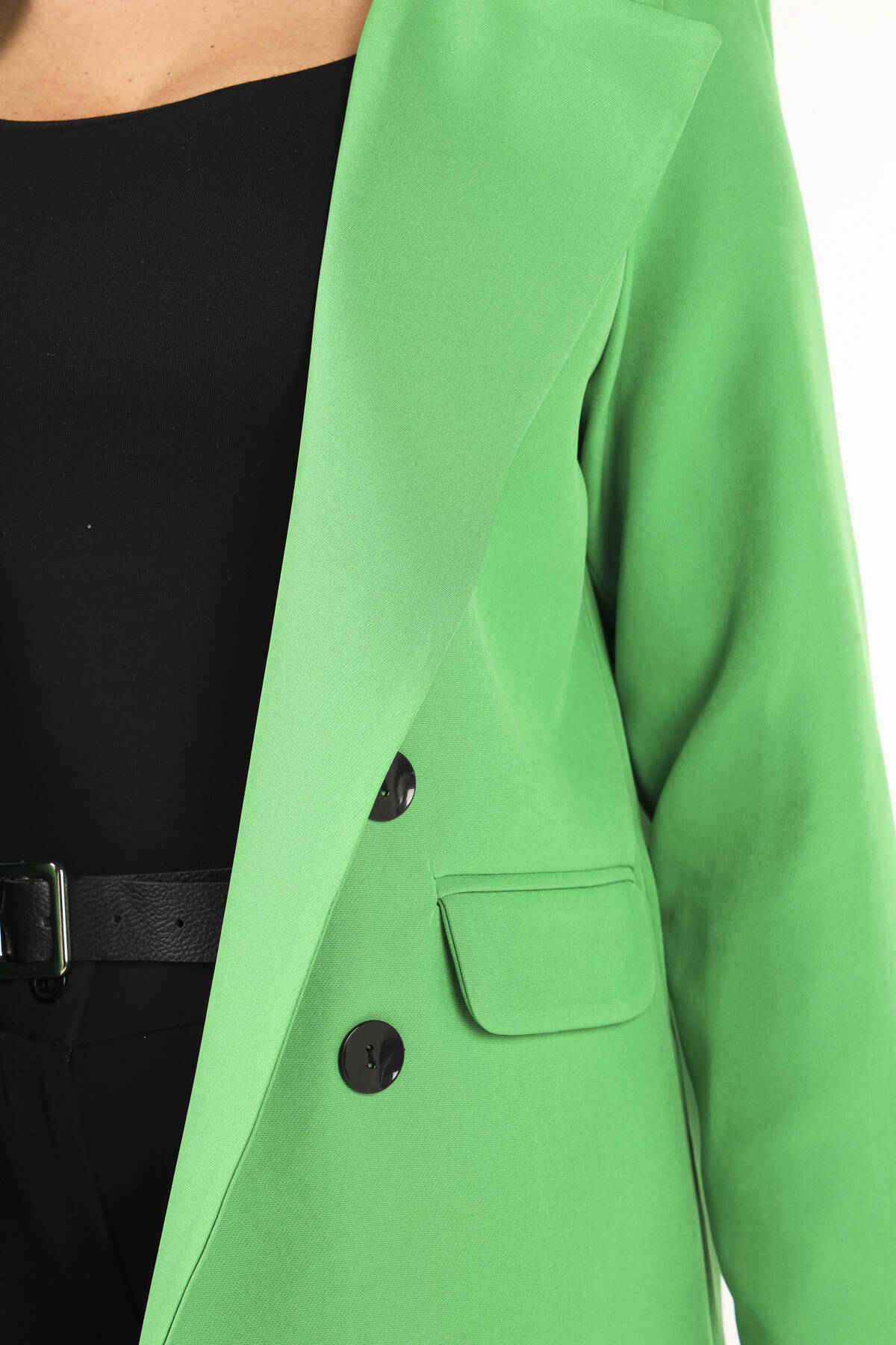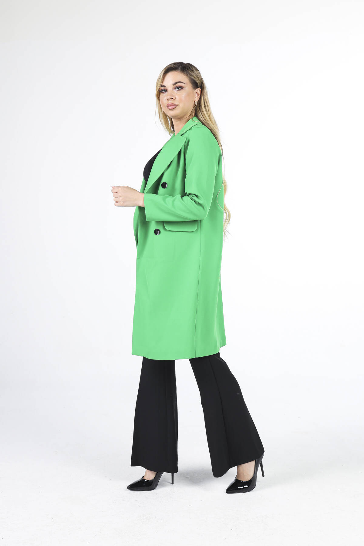Modelin Ölçüleri : Boy: 1.80 cm / Göğüs: 88 cm / Bel: 69 cm /Basen : 94 cm Mankenin Üzerindeki Ürün 36/S Bedendir %100 Polyester Uzun Kol Klasik Yaka Cep Görünüm Detaylı Düğme Detaylı Astarsız Kapamasız Ceket Ürün Boyu : 99 cm Stüdyo Çekimlerinde Renkler Işık Farklılıgından Dolayı Değişiklik Gösterebilir