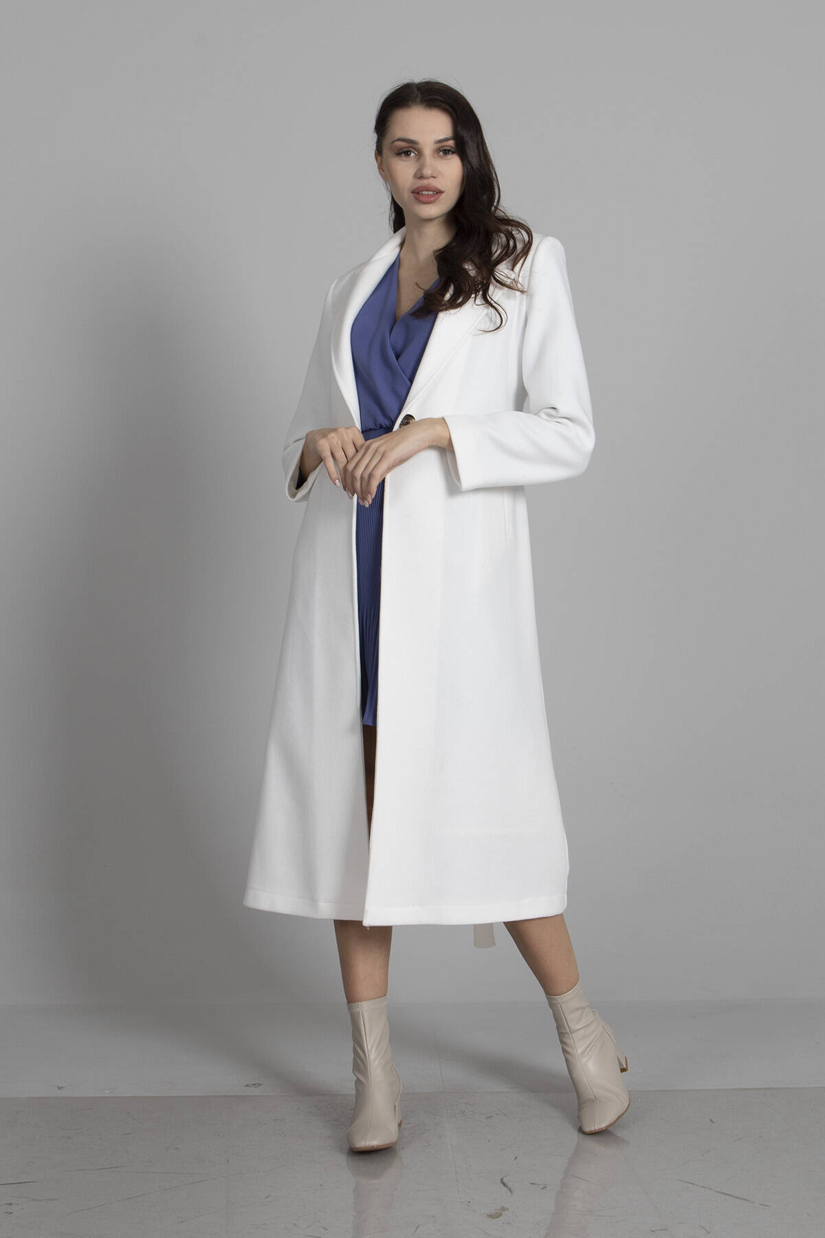 Modelin Ölçüleri : Boy: 1.75 cm / Göğüs: 87 cm / Bel: 66 cm /Basen : 94 cm Mankenin Üzerindeki Ürün 36/S Bedendir %100 Polyester Uzun Kol Kruvaze Yaka Tek Düğmeli Seyyar Kuşaklı Astarlı Çift Cepli Kaşe Kaban Modeli Ürün Boyu: 118 cm Stüdyo Çekimlerinde Renkler Işık Farklılıgından Dolayı Değişiklik Gösterebilir.