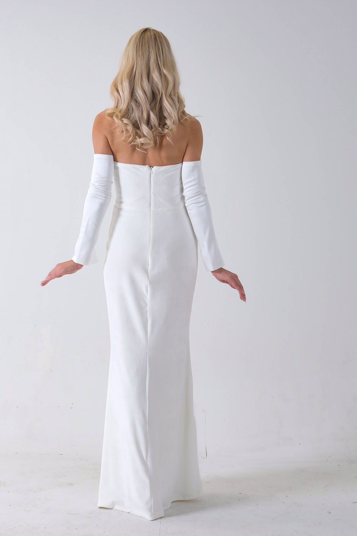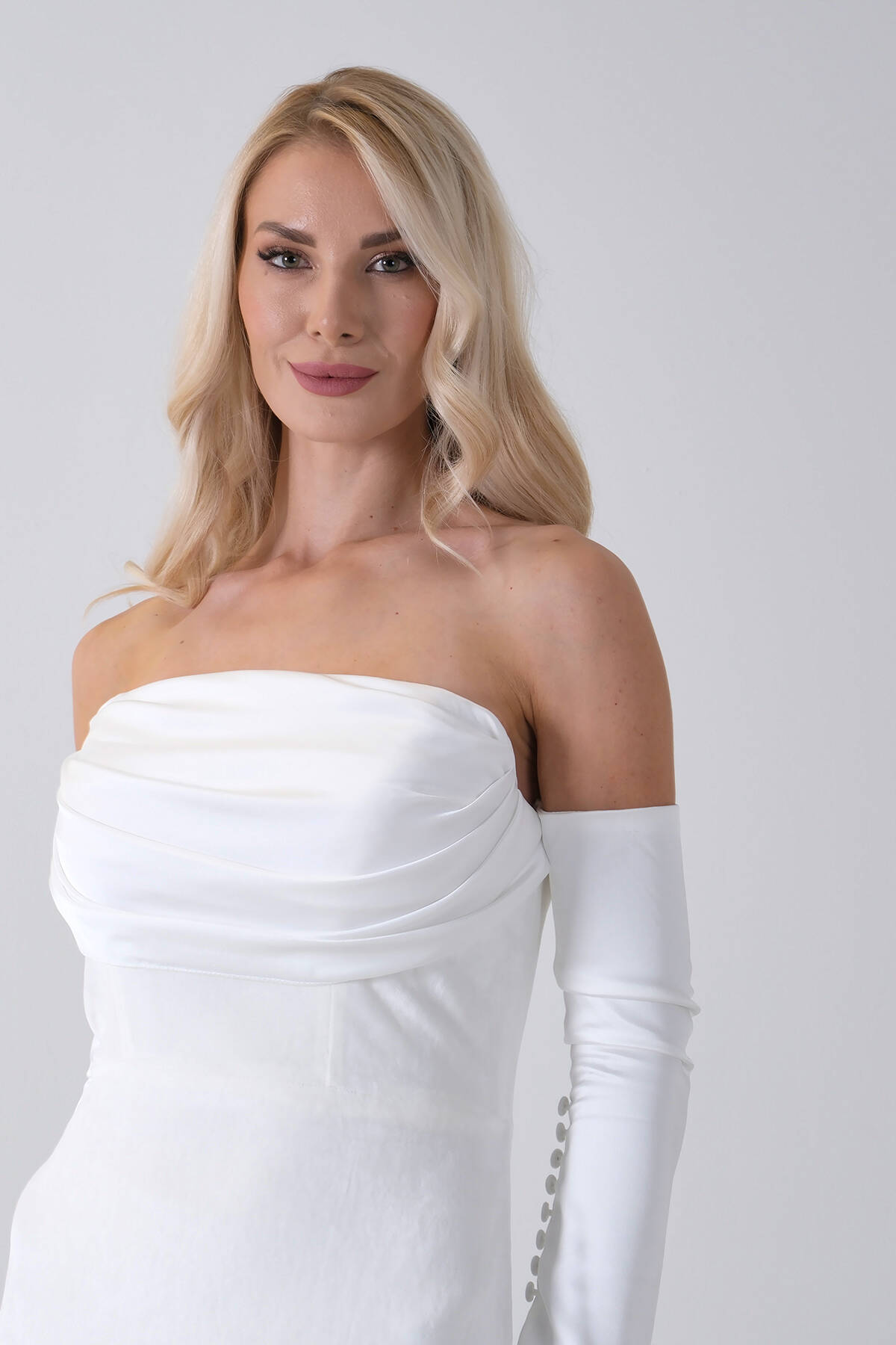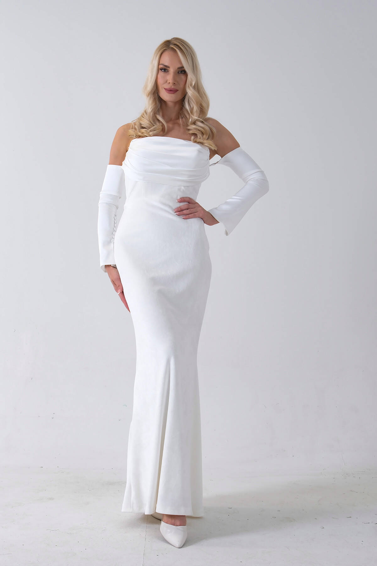 Beyaz Drapeli Takma Kol Detaylı Kadife Abiye 0801068.15