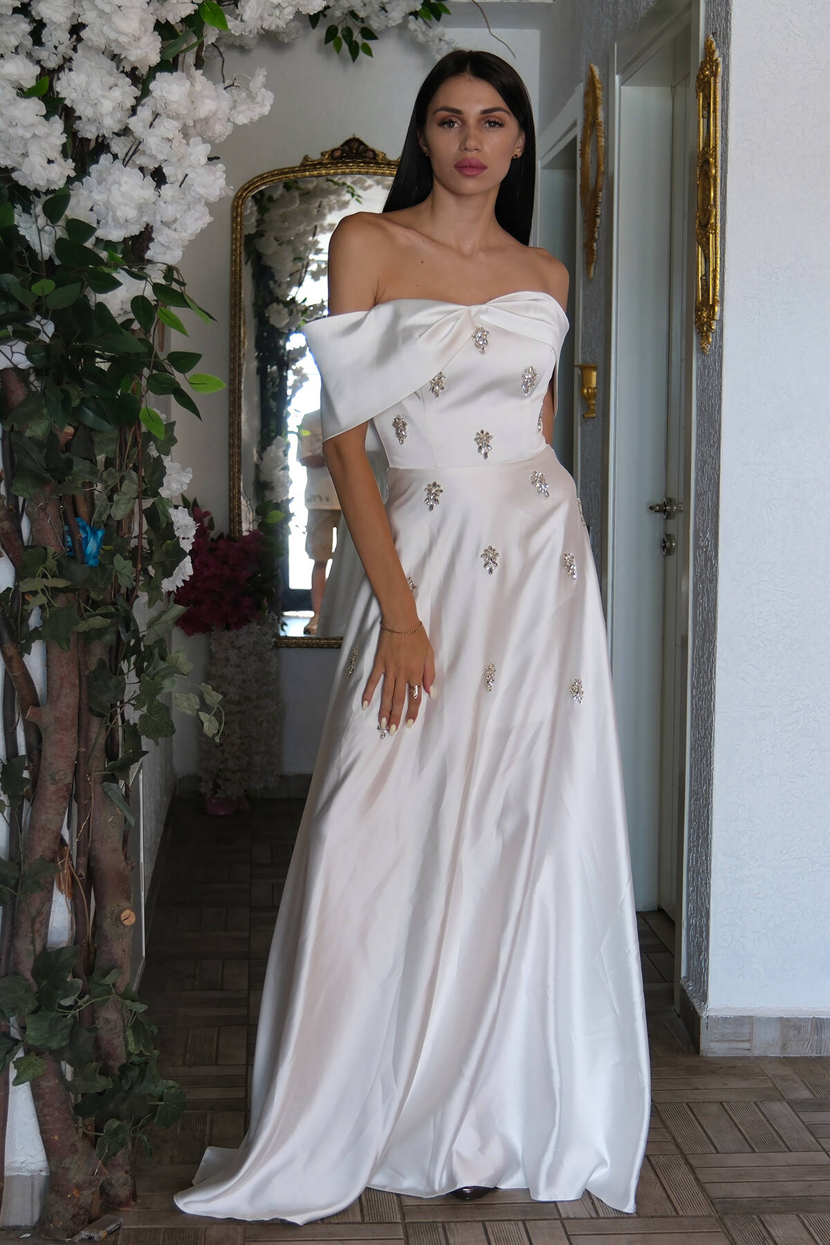 Beyaz Fiyonk Yaka Taş Detaylı Abiye 9705541.15