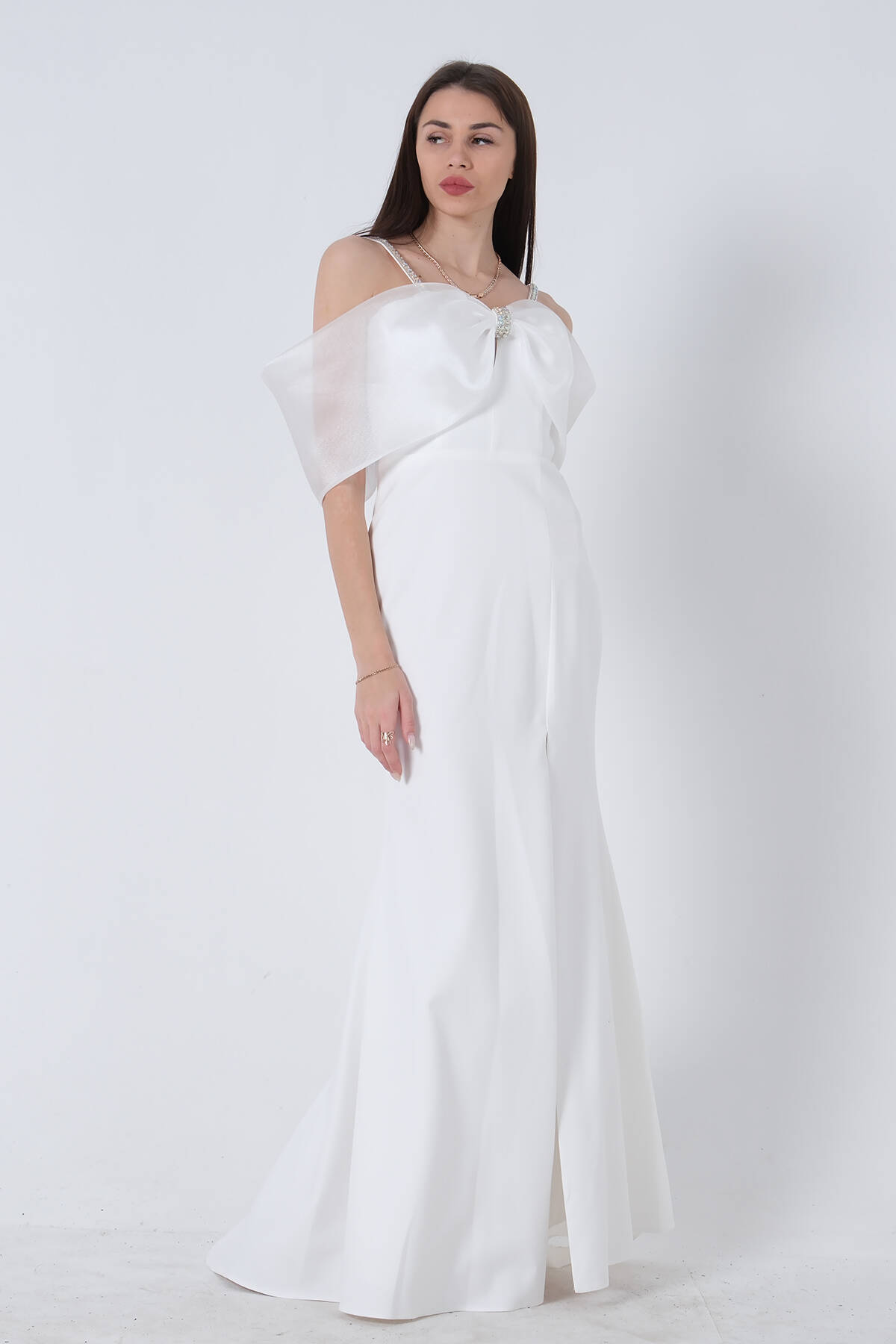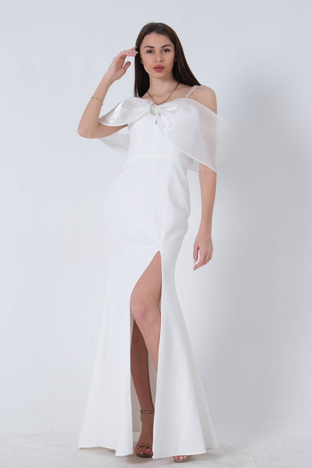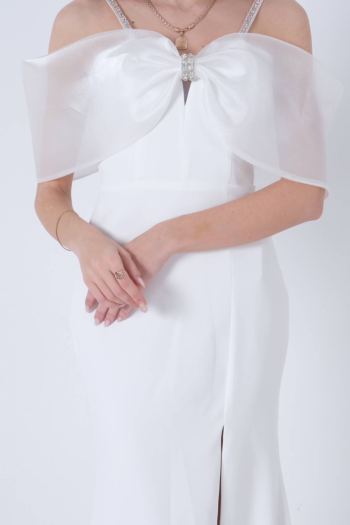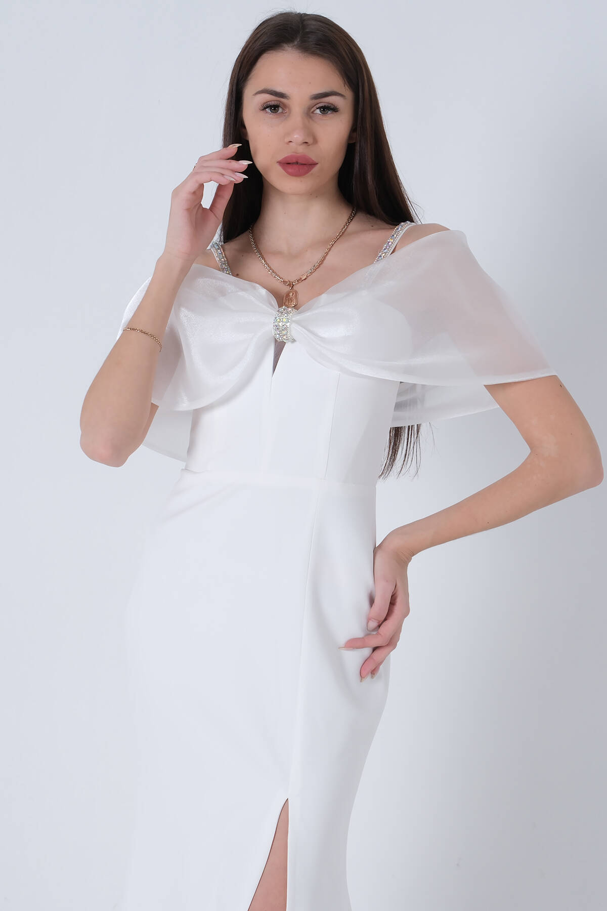 Beyaz Göğüs Taş Detaylı Yırtmaçlı Abiye 9705201.15