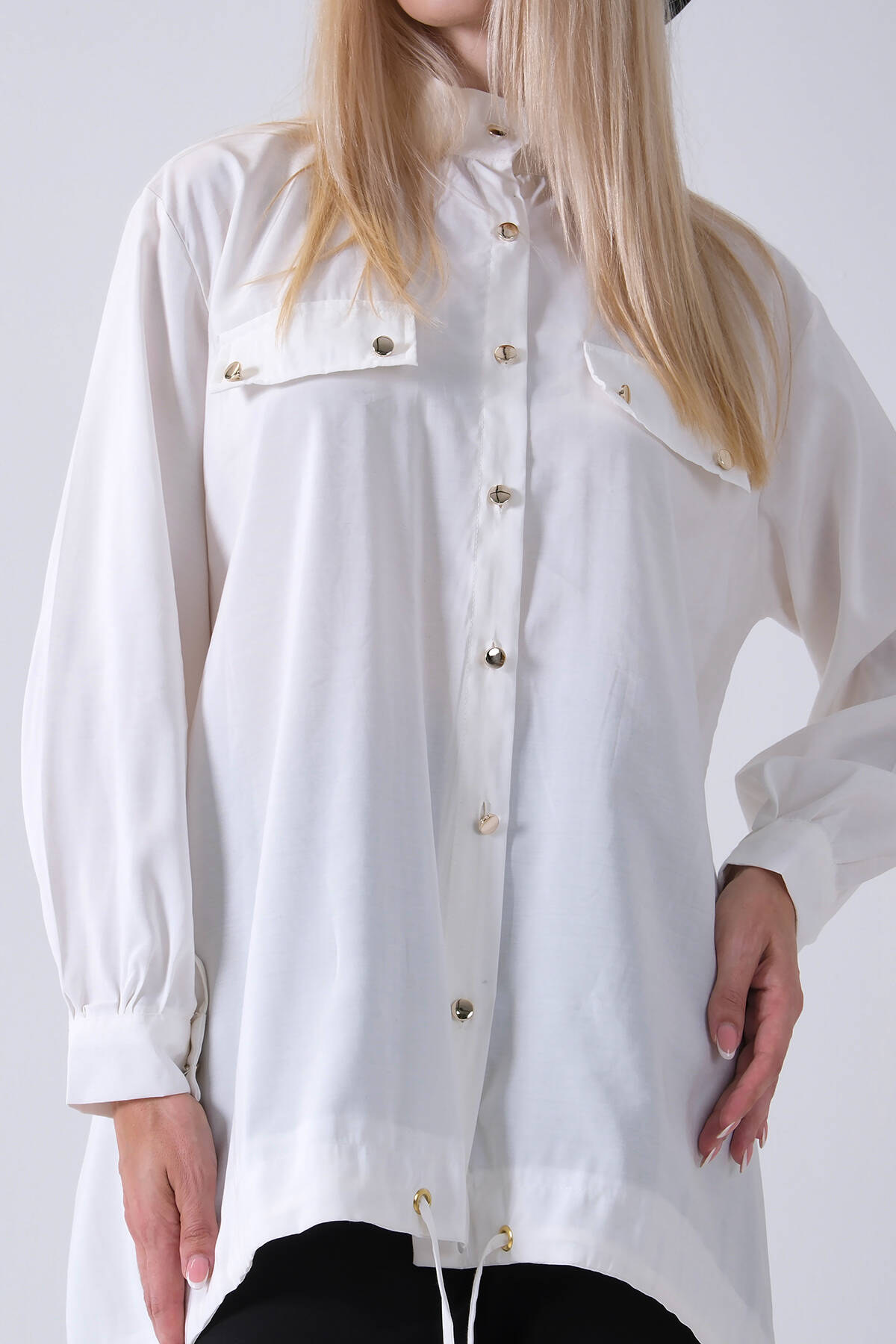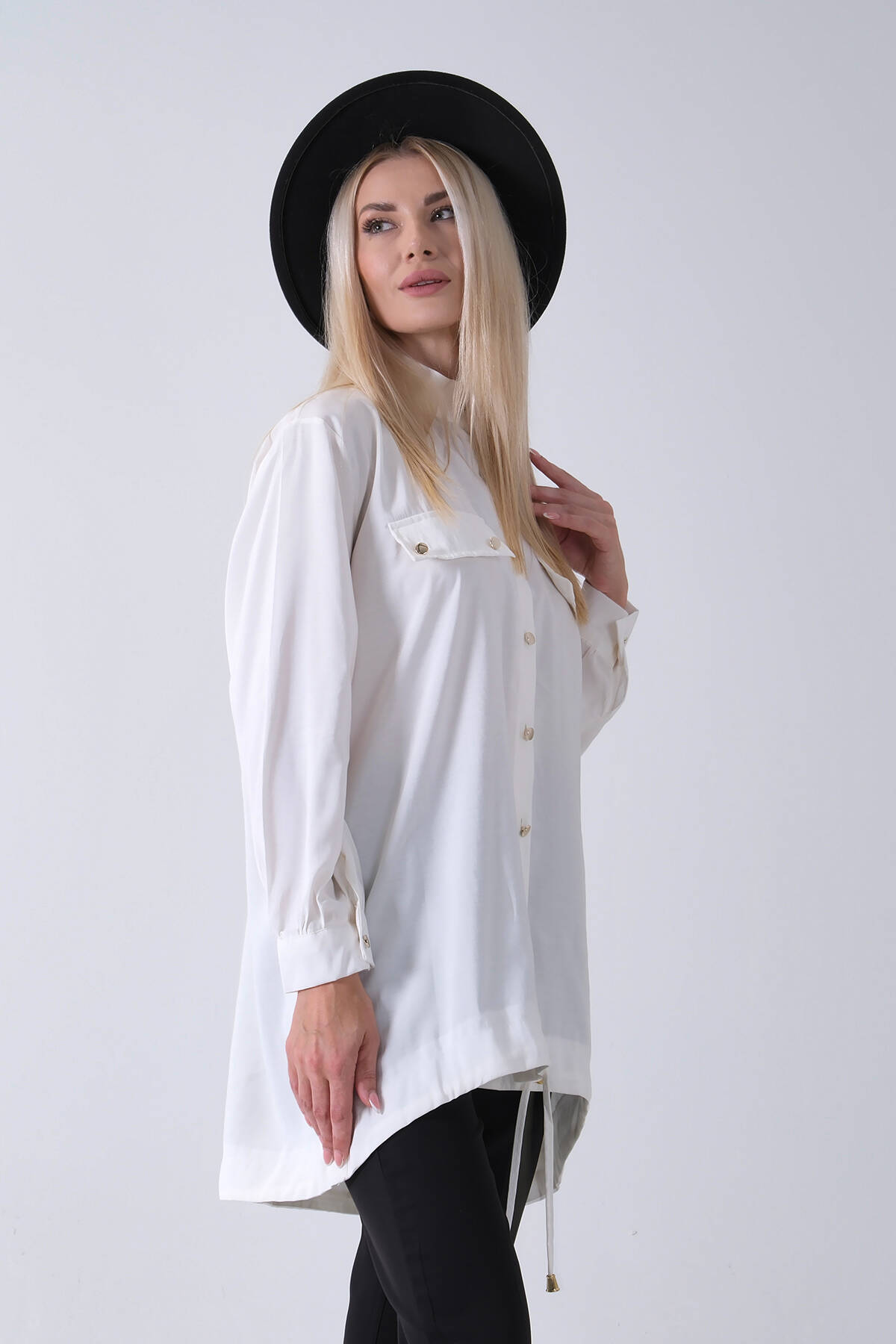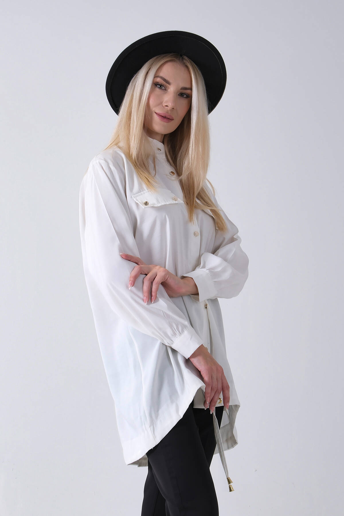 Beyaz Hakim Yaka Cep Kapak Detaylı Etek Ucu İpli Tunik 3972106.15