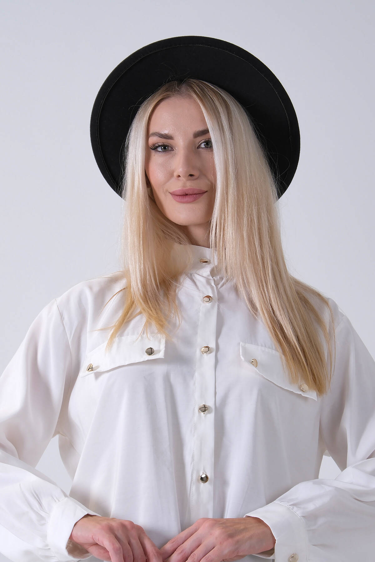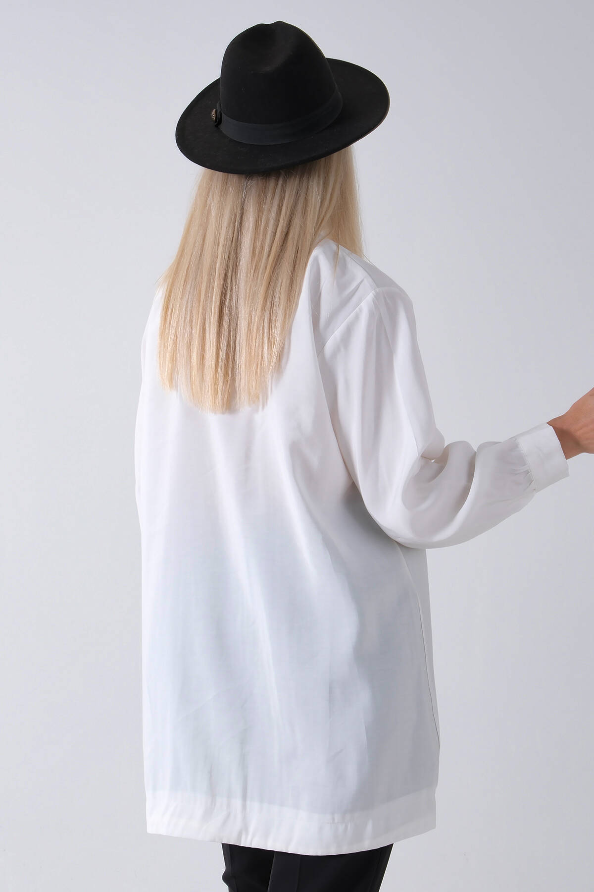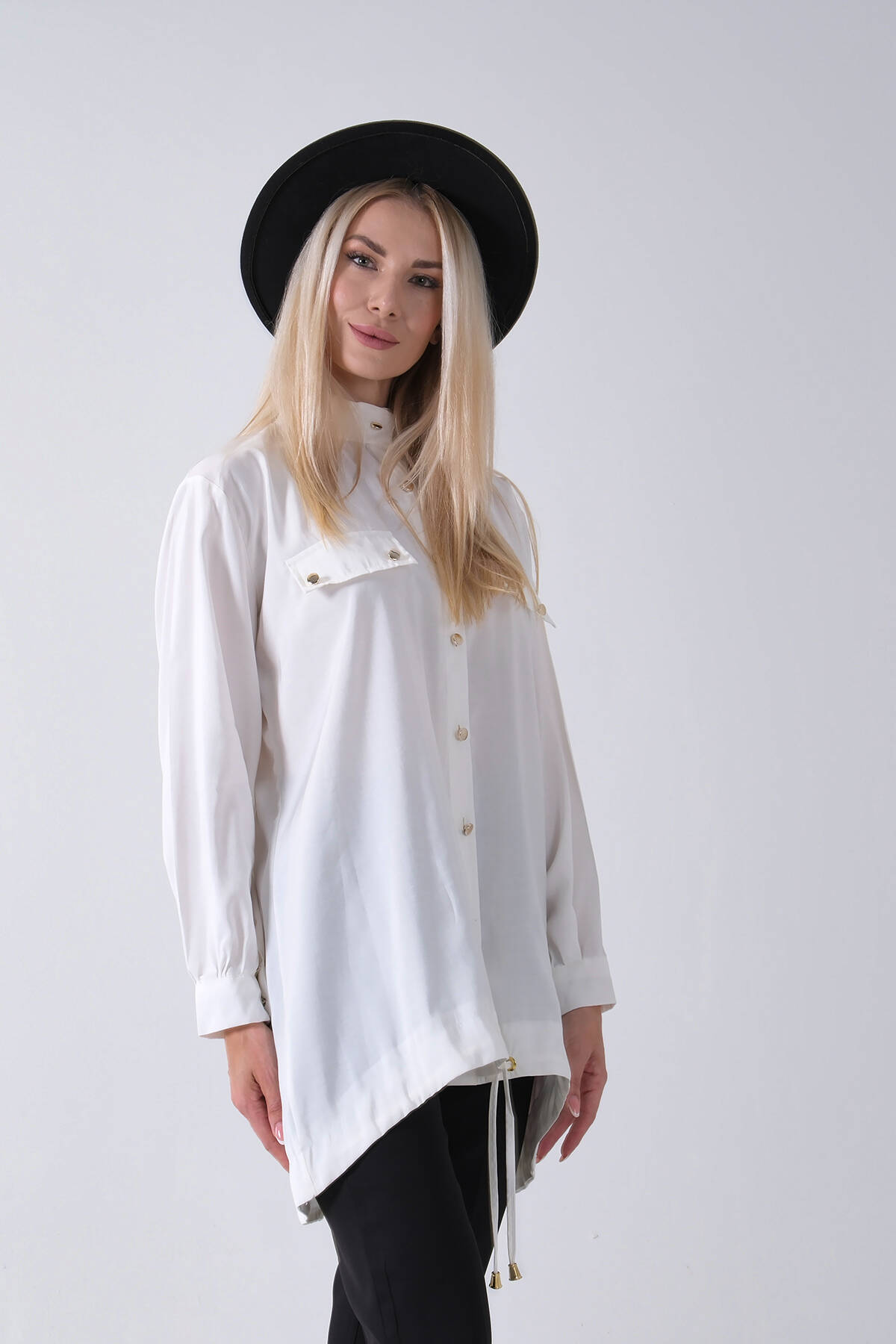 Beyaz Hakim Yaka Cep Kapak Detaylı Etek Ucu İpli Tunik 3972106.15