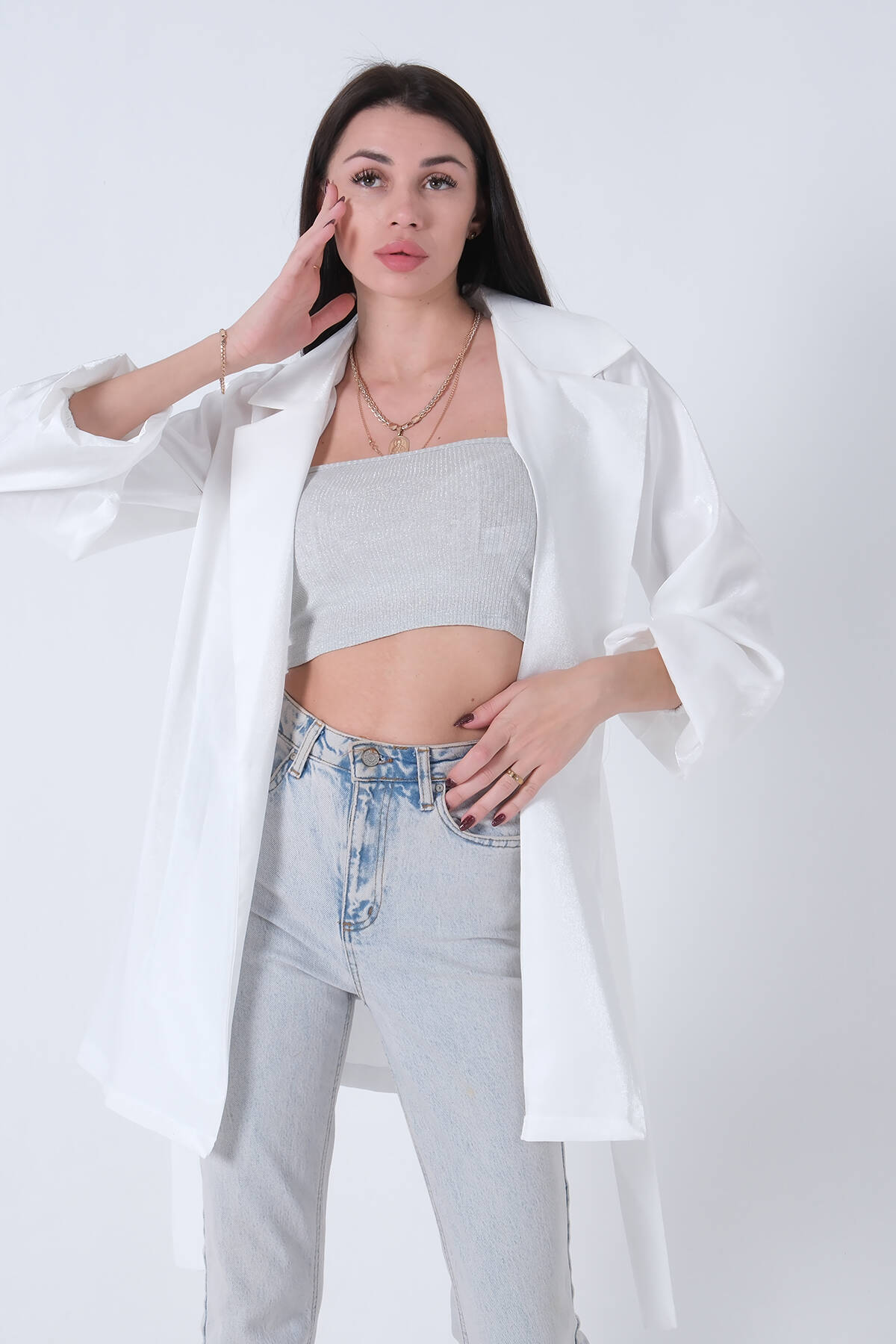 Beyaz Kolları Volanlı Monoray Saten Ceket 31050689.15