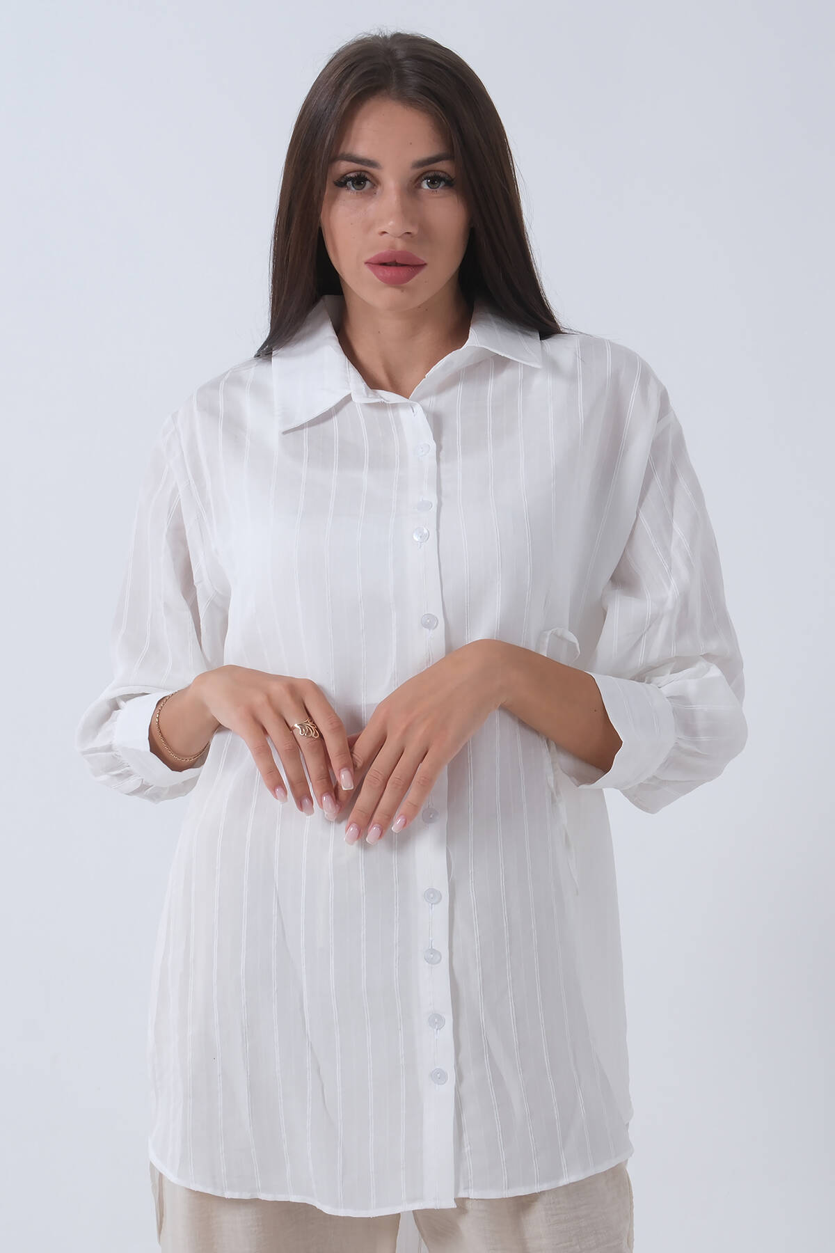 Beyaz Manşeti Bağcıklı Tunik 3972905.15