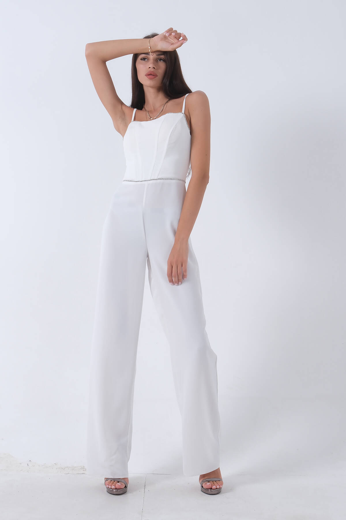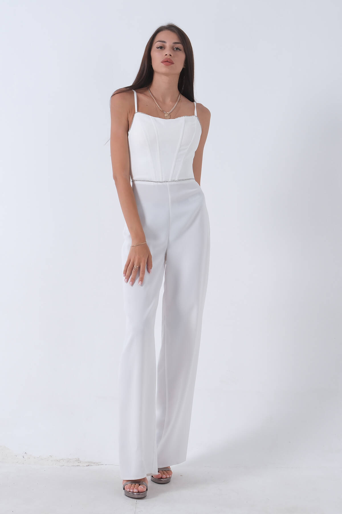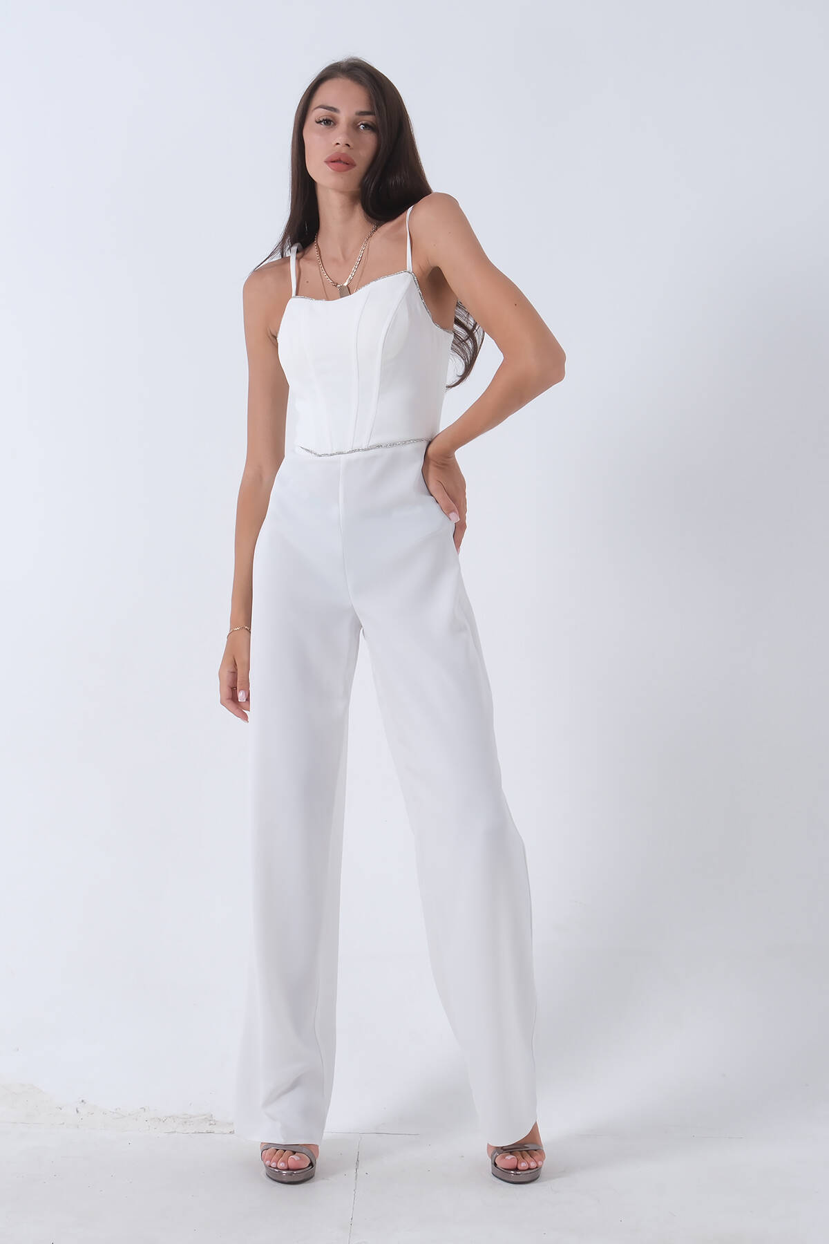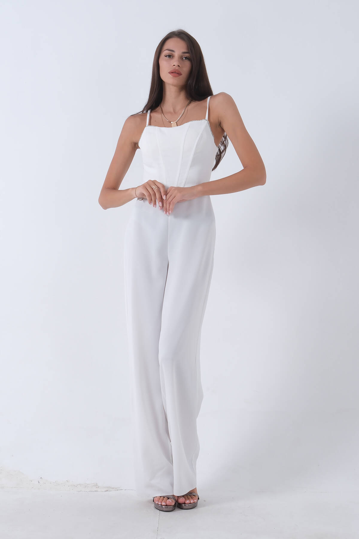 Beyaz Ön Göğüs Gipeli İp Askılı Tulum 6502470.15