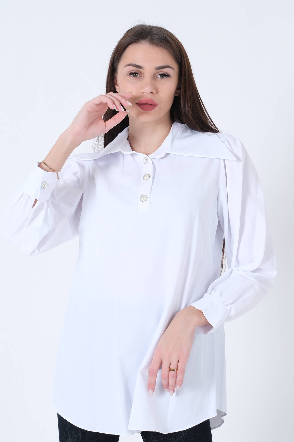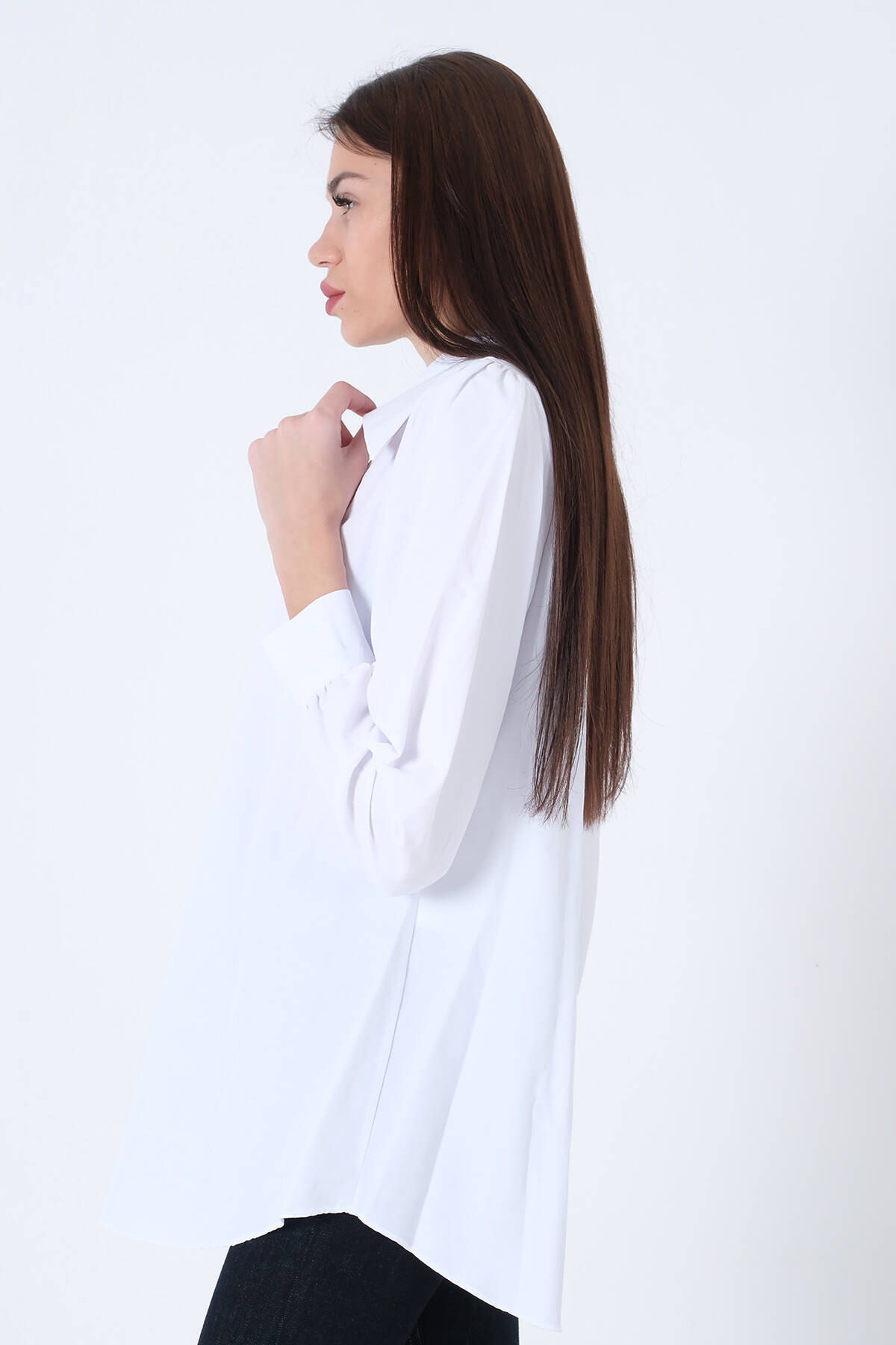 Beyaz Önü Yarım Patlı Terikoton Gömlek 31021996.15