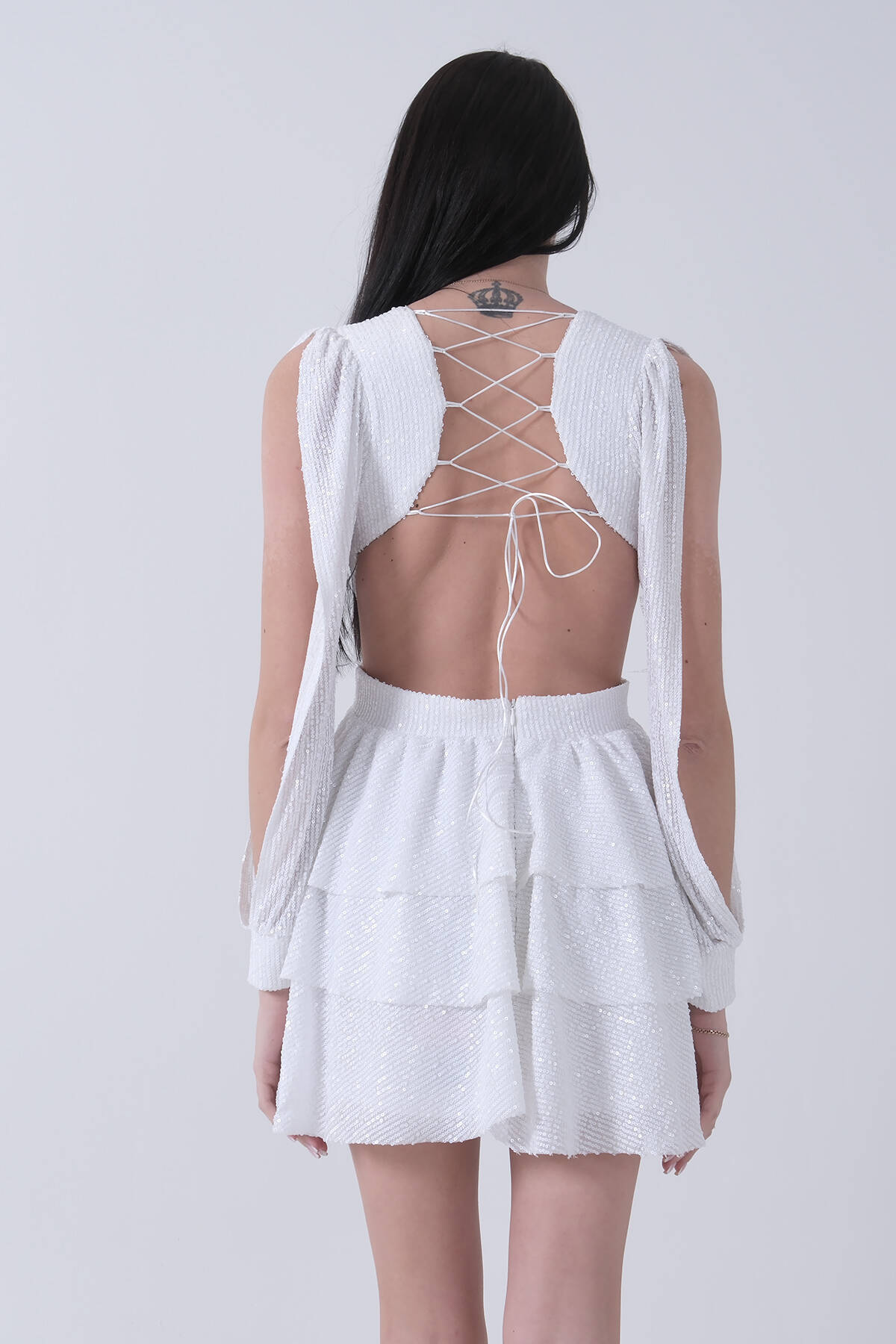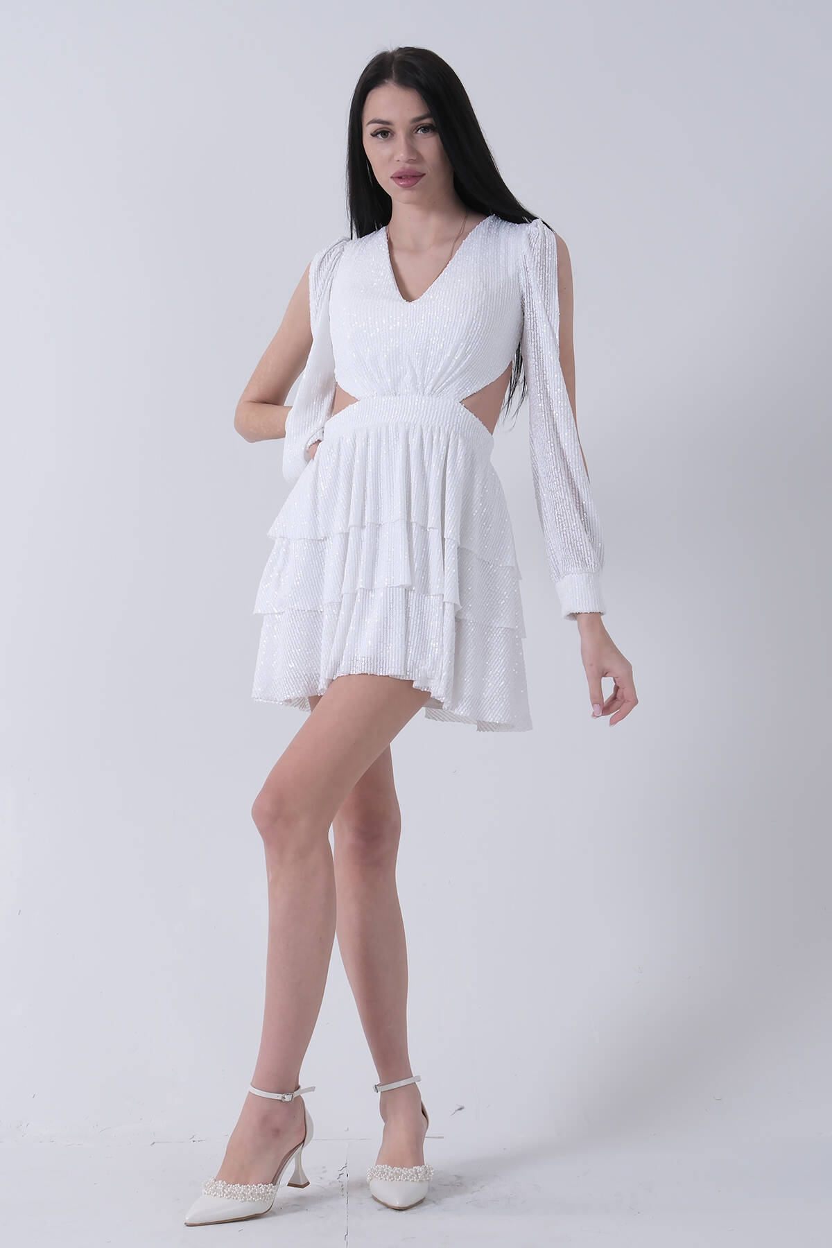 Modelin Ölçüleri : Boy: 1.80 cm / Göğüs: 88 cm / Bel: 69 cm /Basen : 94 cm Mankenin Üzerindeki Ürün 38/M Bedendir %100 Polyester Payetli Sırtı İp Bağlama Detaylı Bel Dekolteli Eteği Katlı Abiye Ürün Boyu : 83 cm Stüdyo Çekimlerinde Renkler Işık Farklılıgından Dolayı Değişiklik Gösterebilir (Dikkat! Ürünlerimiz güvenlik bandı ile gönderilmektedir . Güvenlik bandı olmayan ürünlerin iadesi kabul edilmeyecektir)