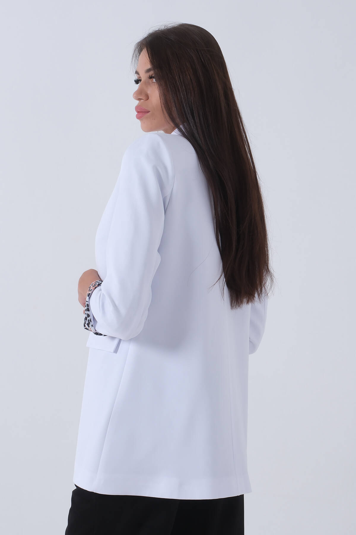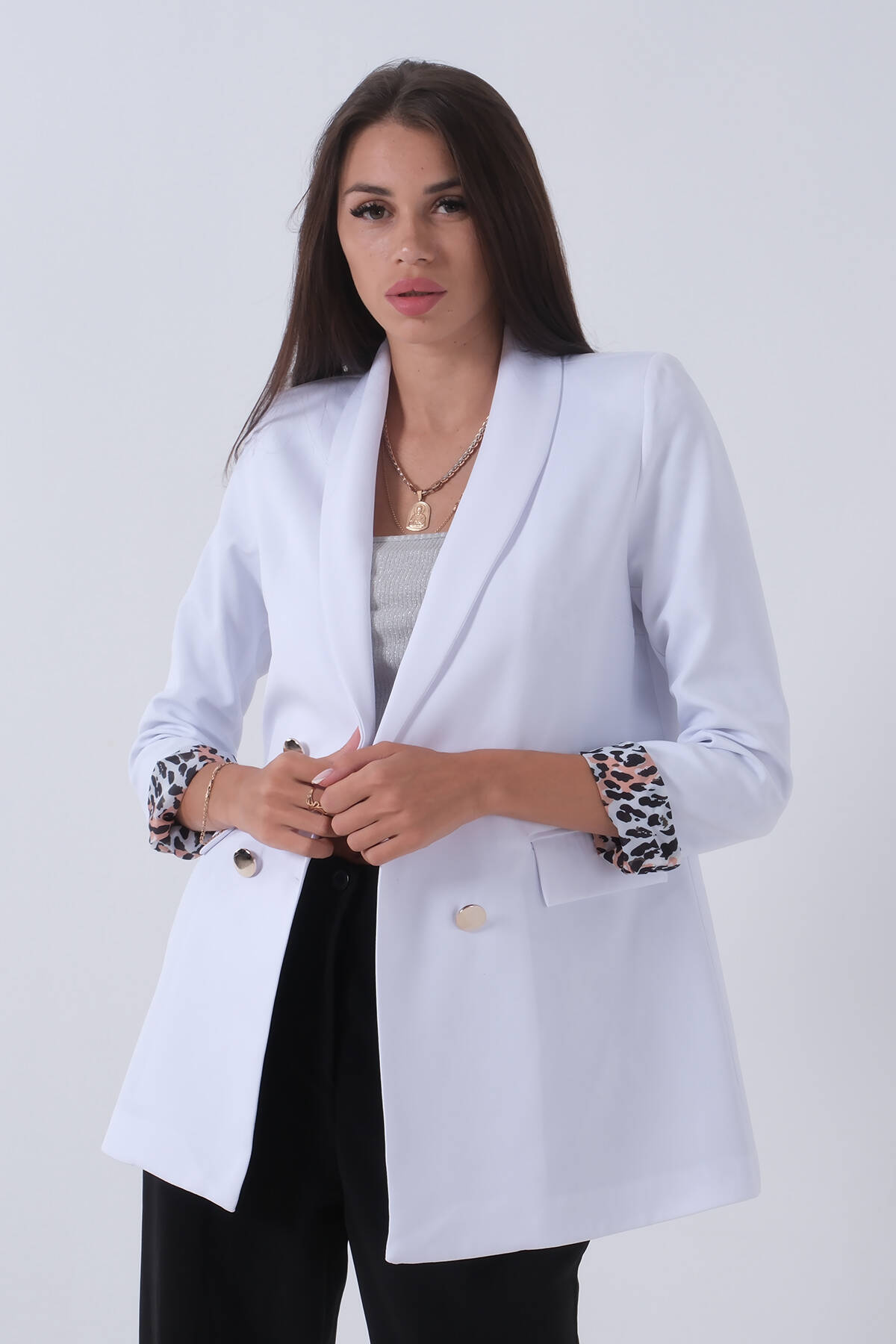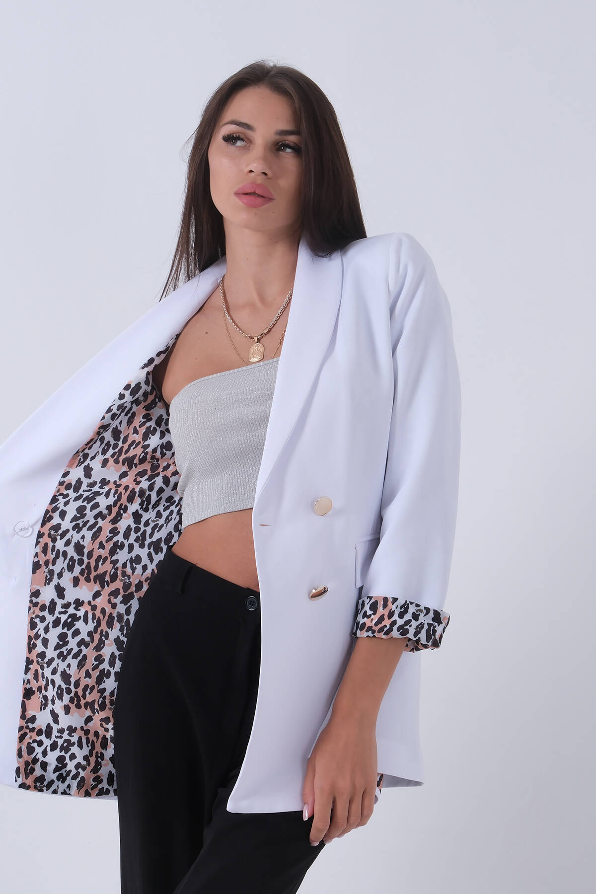 Beyaz Şal Yaka Leopar Astarlı Kruvaze Ceket 39711561.15
