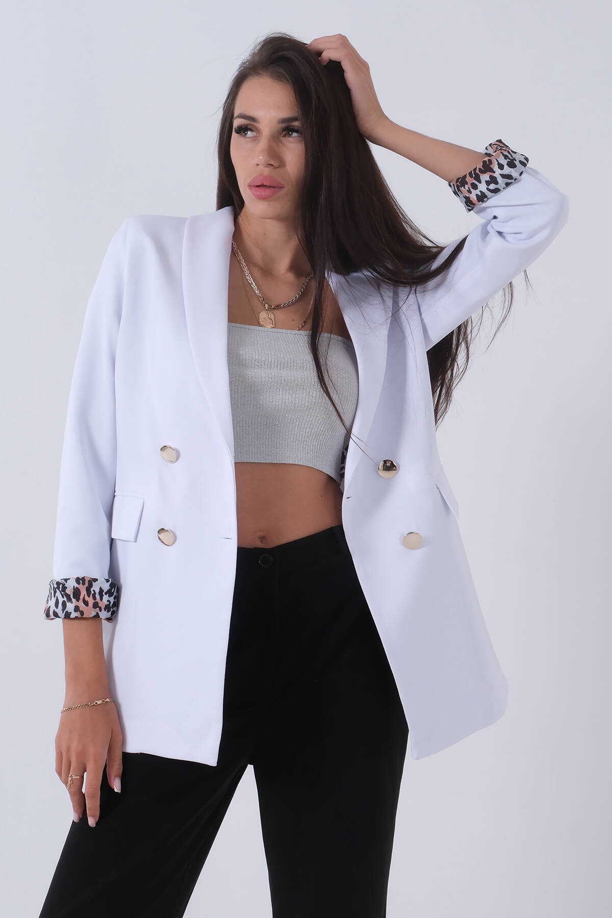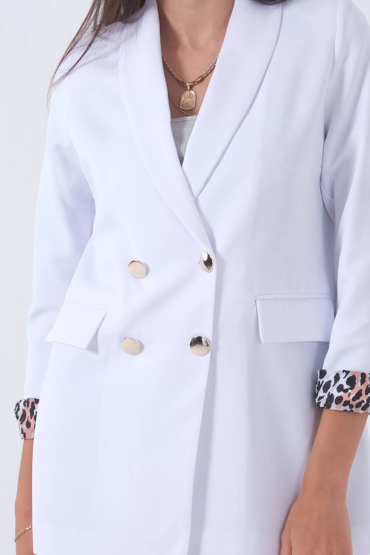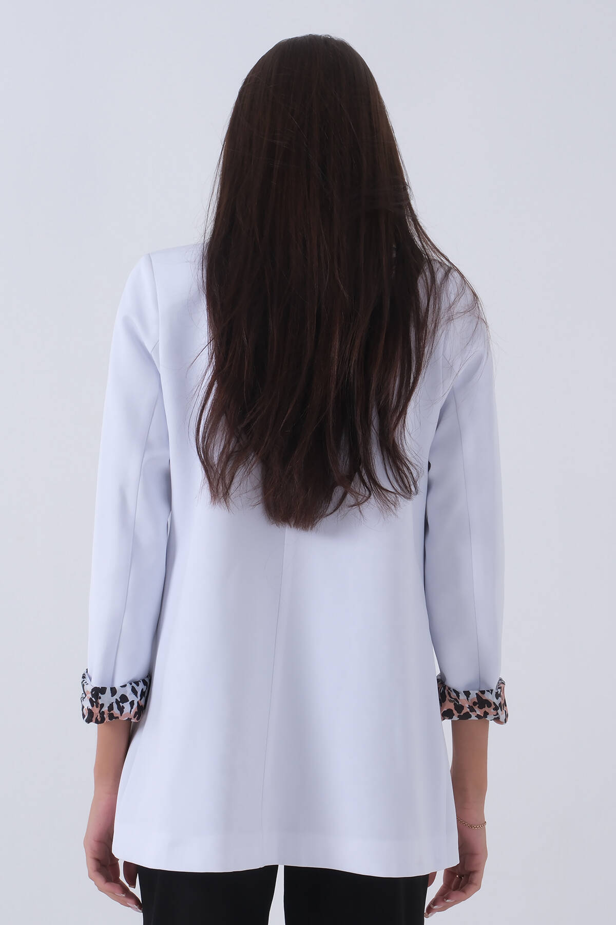 Beyaz Şal Yaka Leopar Astarlı Kruvaze Ceket 39711561.15