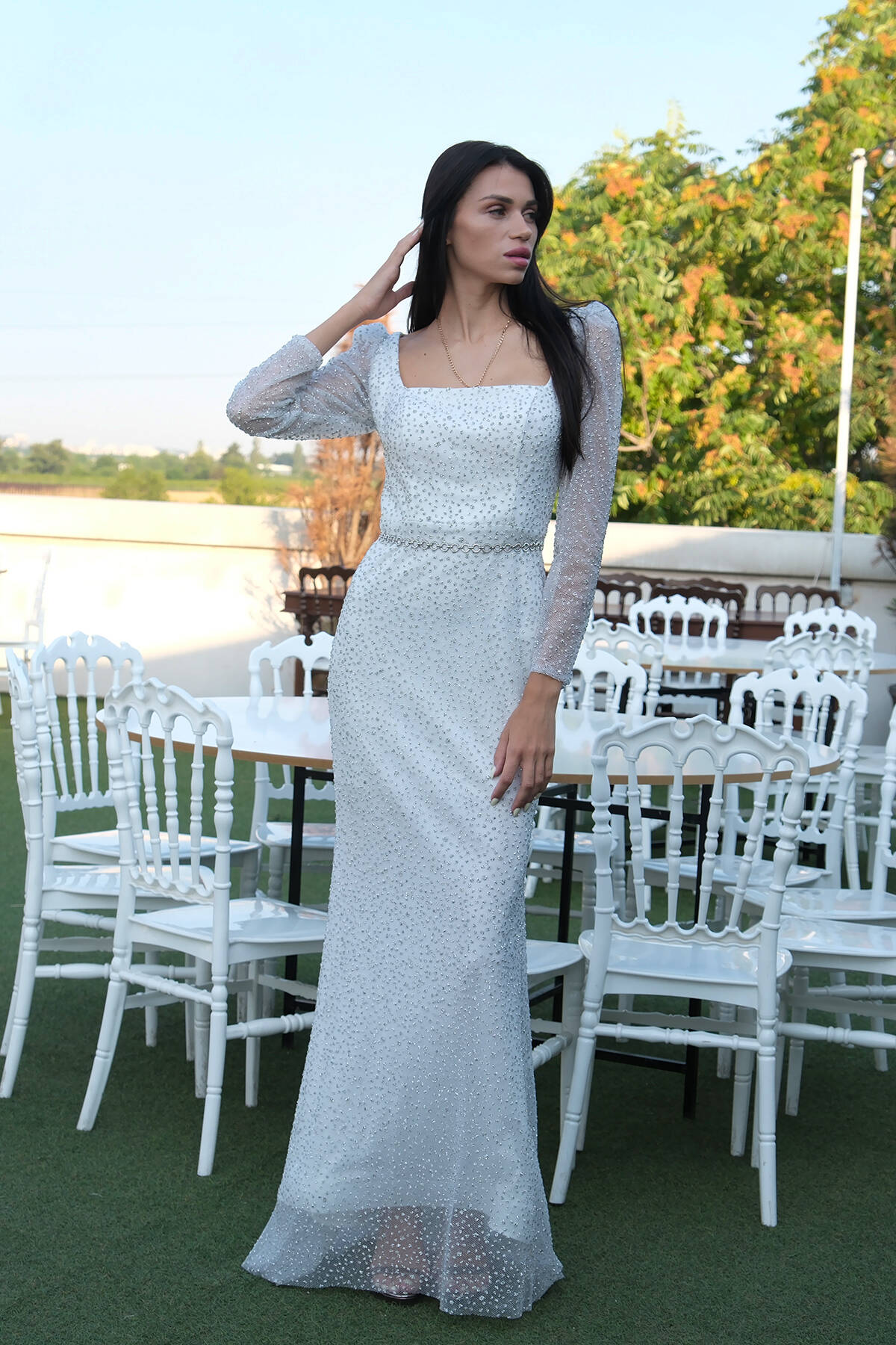 Beyaz Taş İşlemeli Balık Abiye Elbise 9705141.15