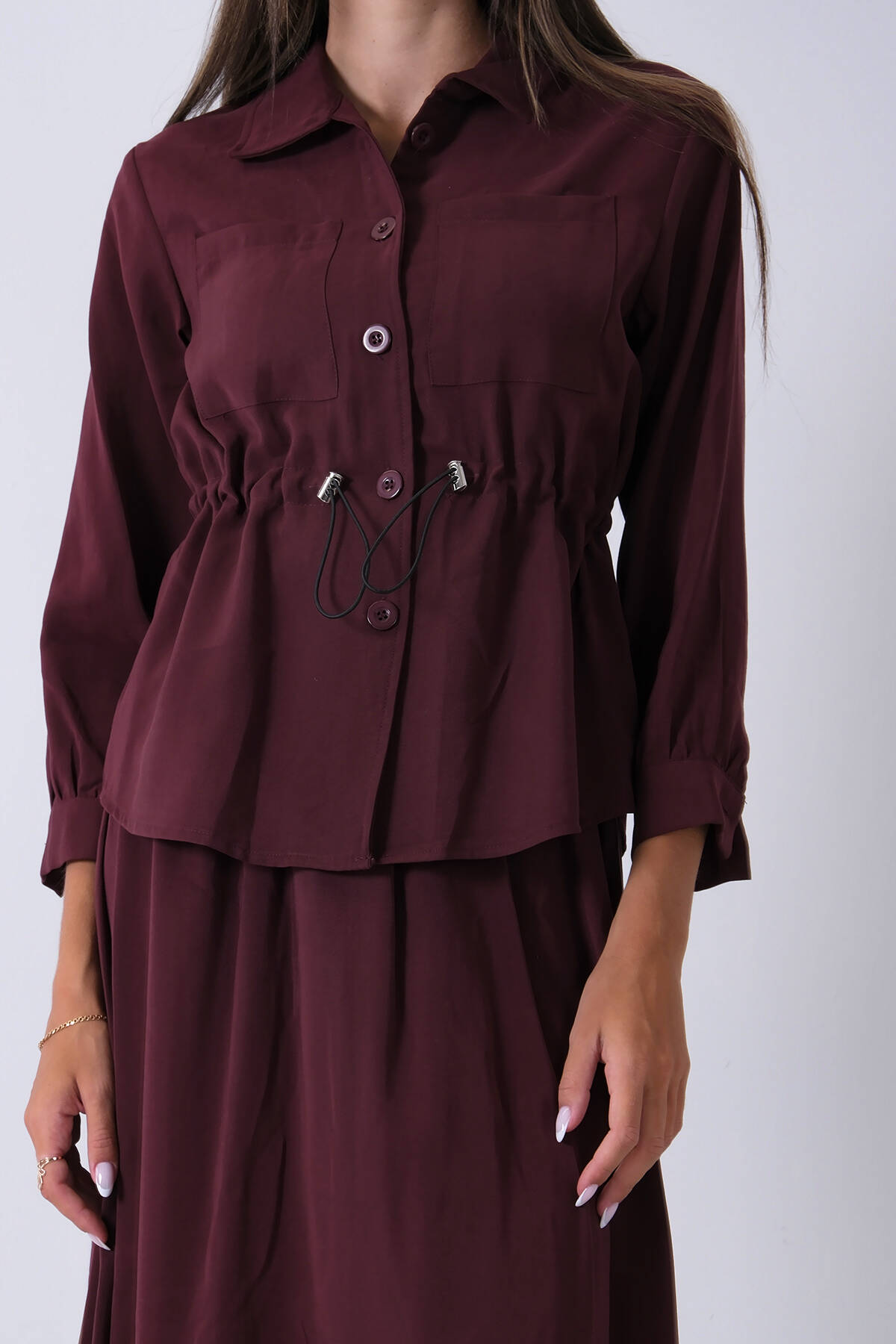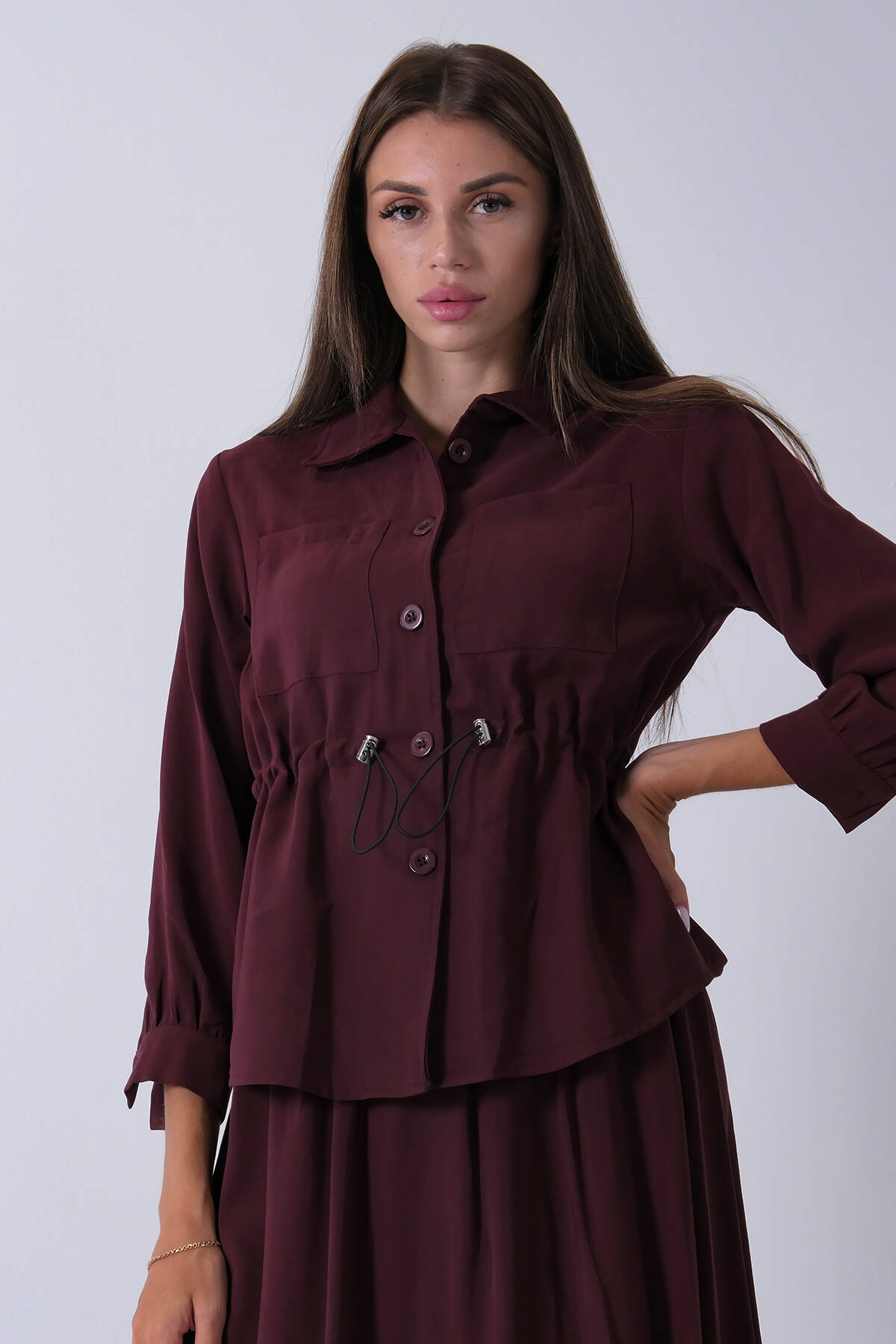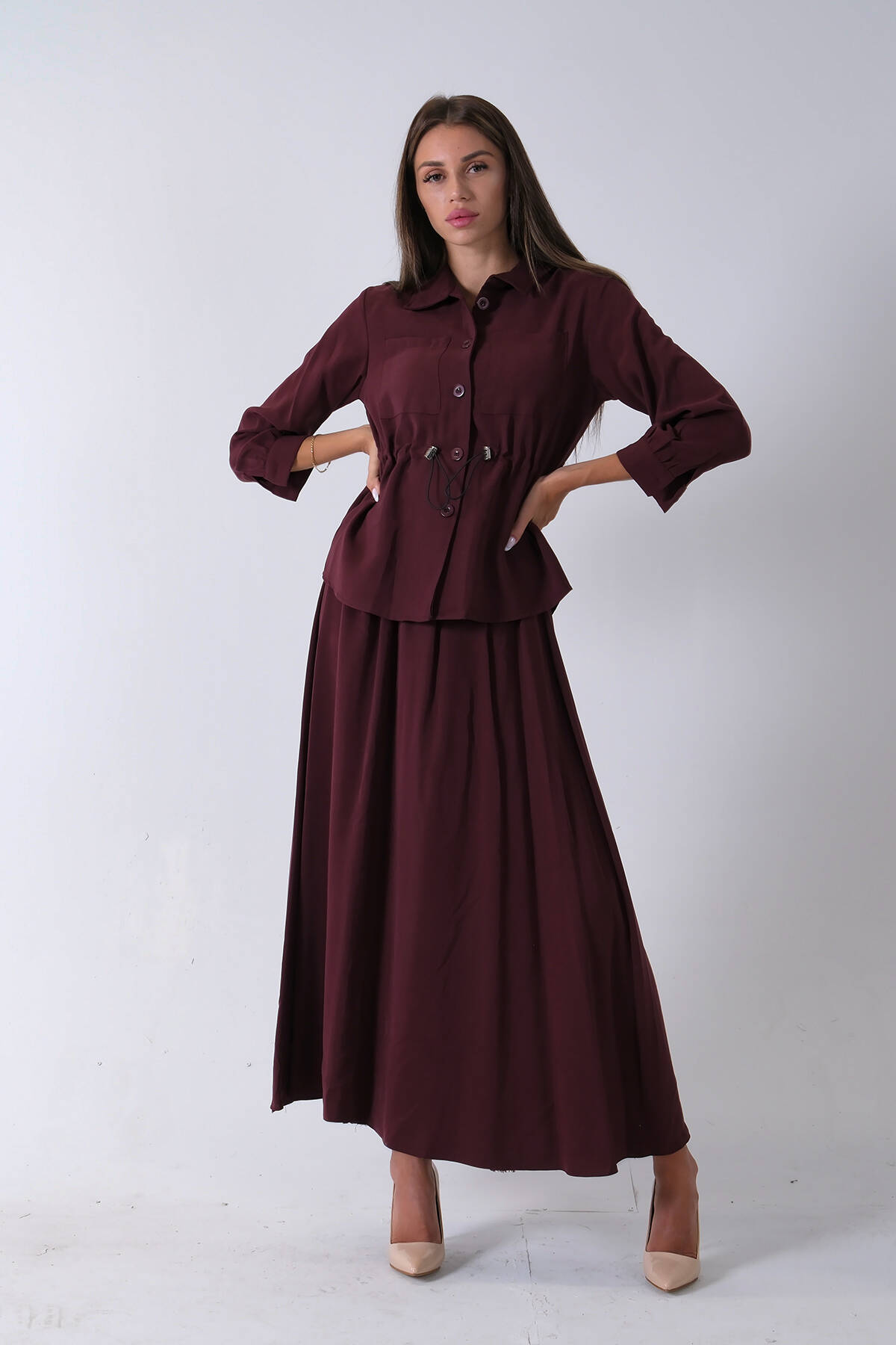 Bordo 2 Cep Detaylı Belden Lastikli Etekli Takım 4592257.04