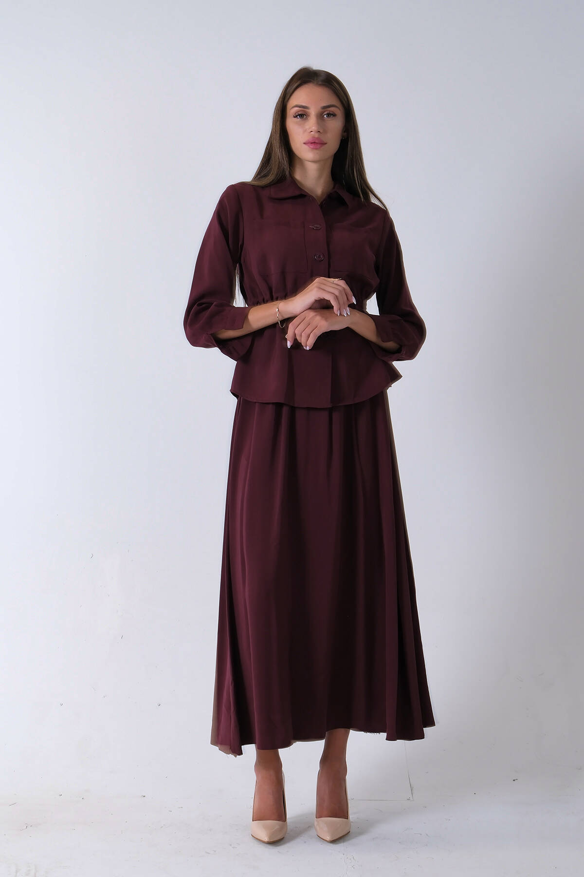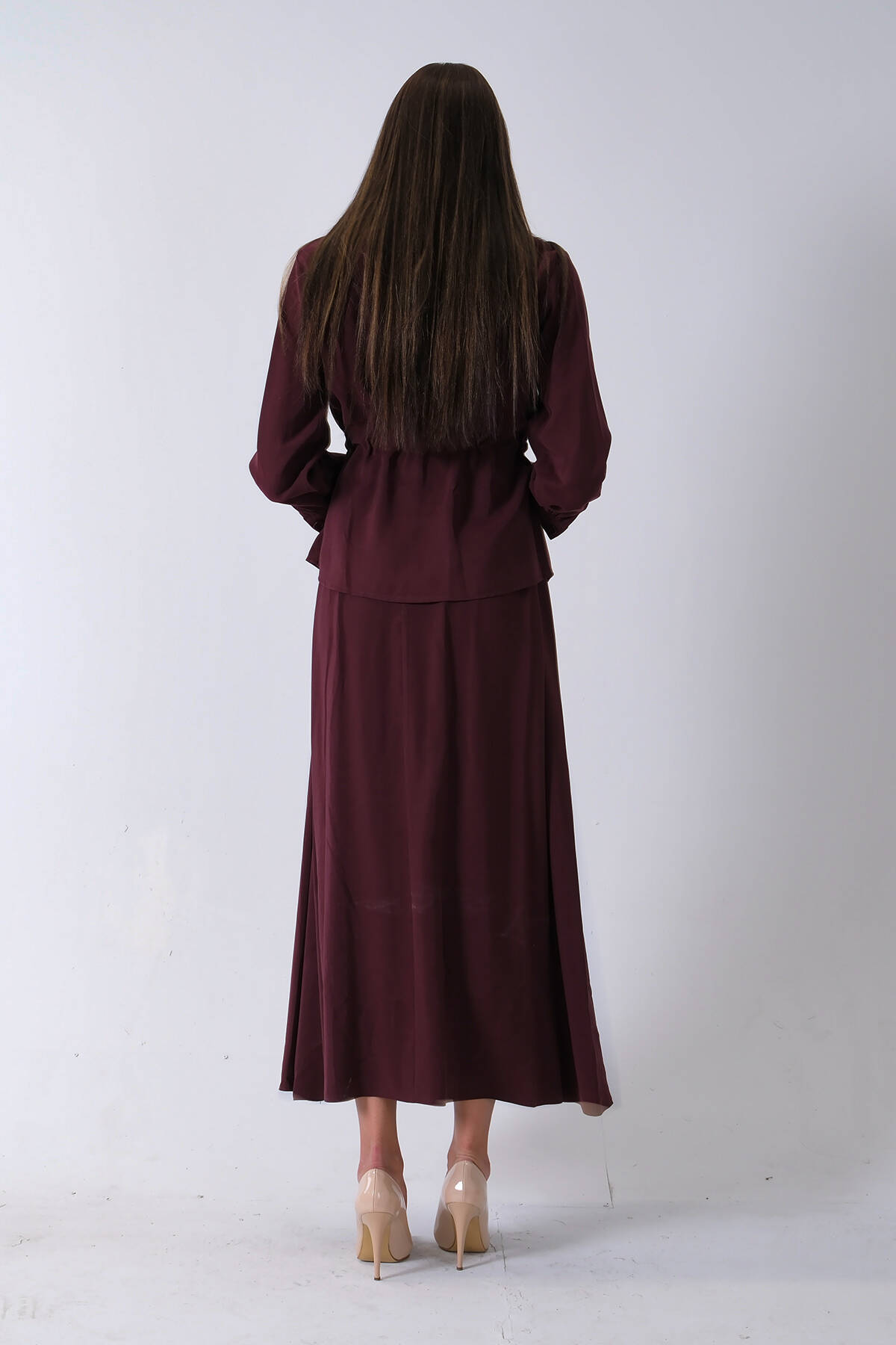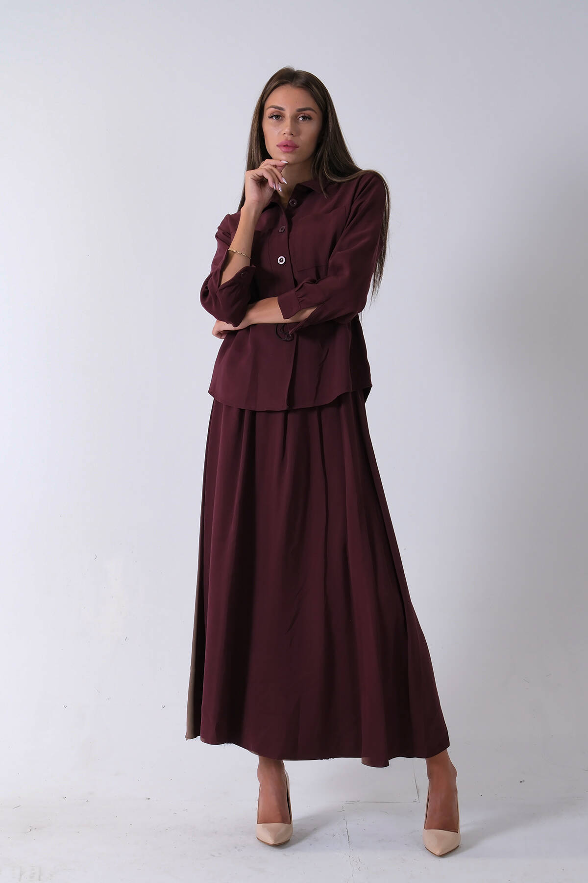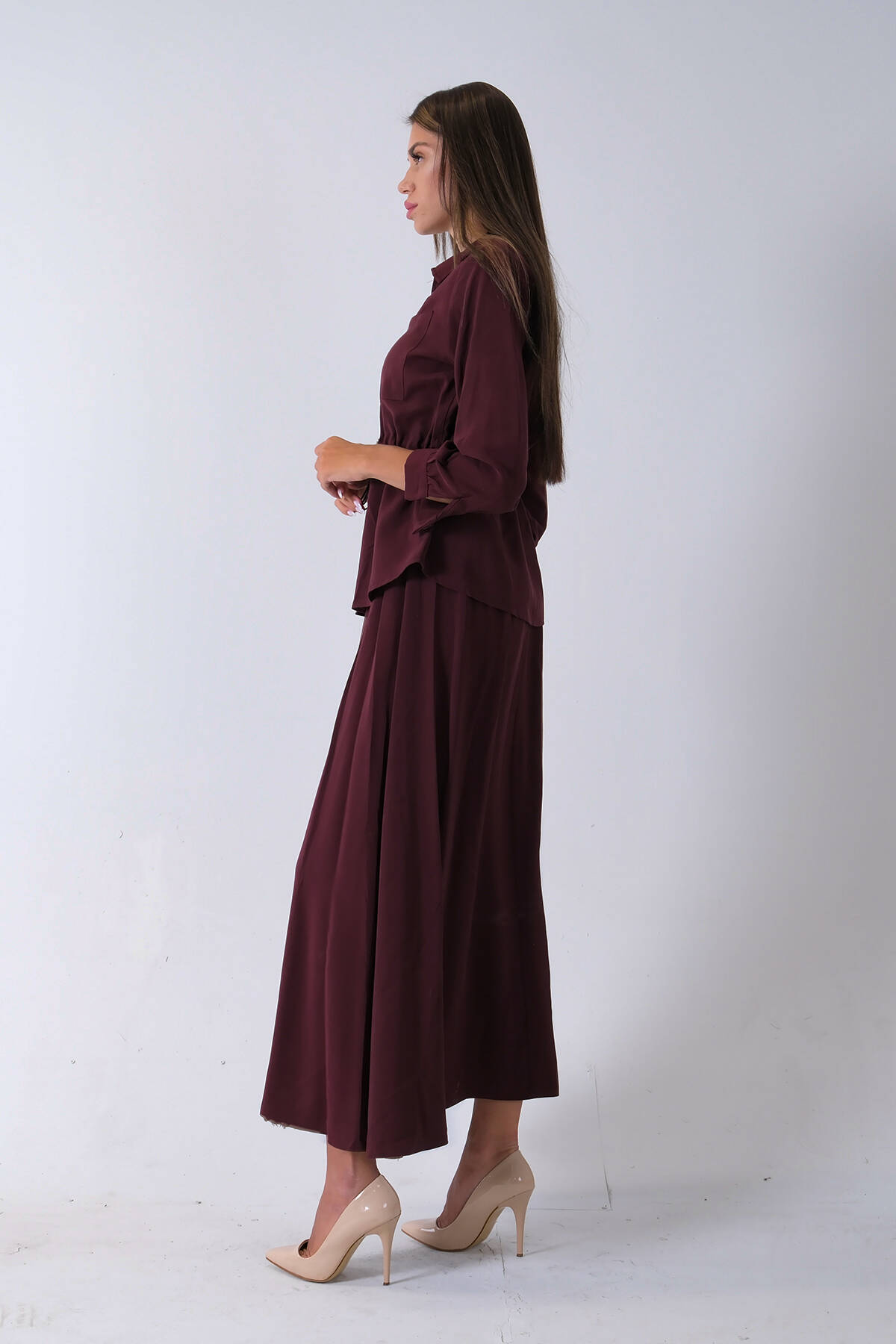 Bordo 2 Cep Detaylı Belden Lastikli Etekli Takım 4592257.04