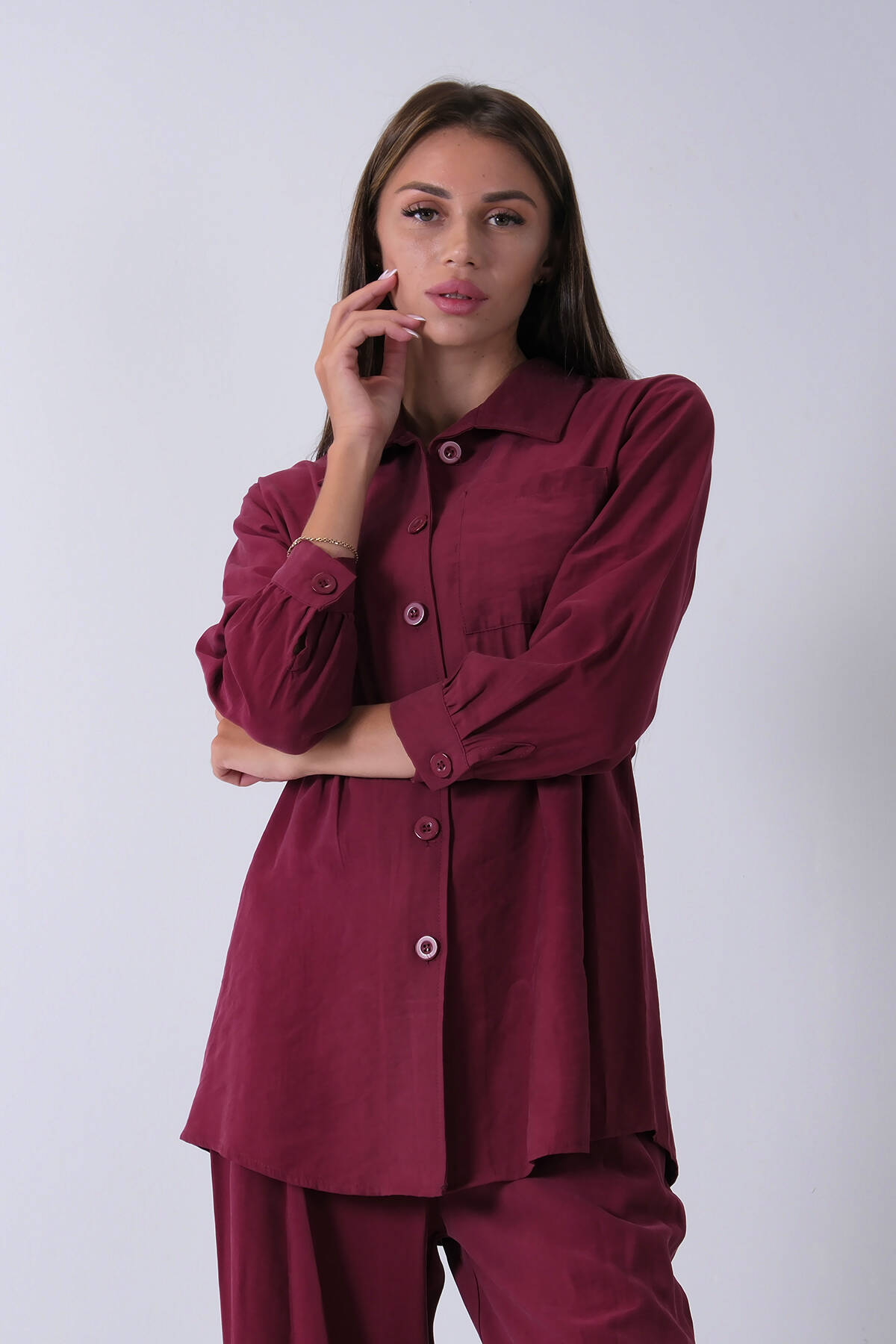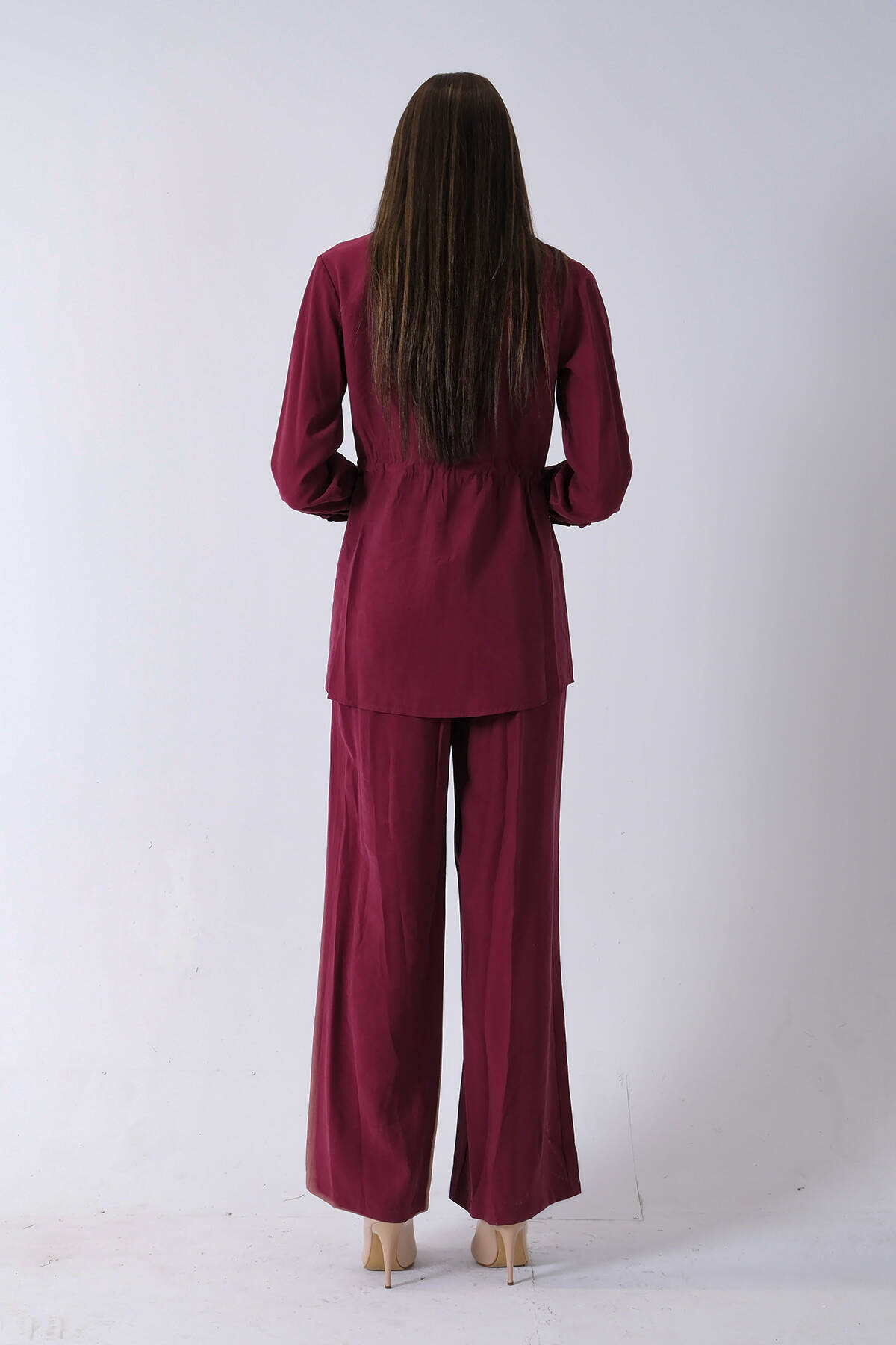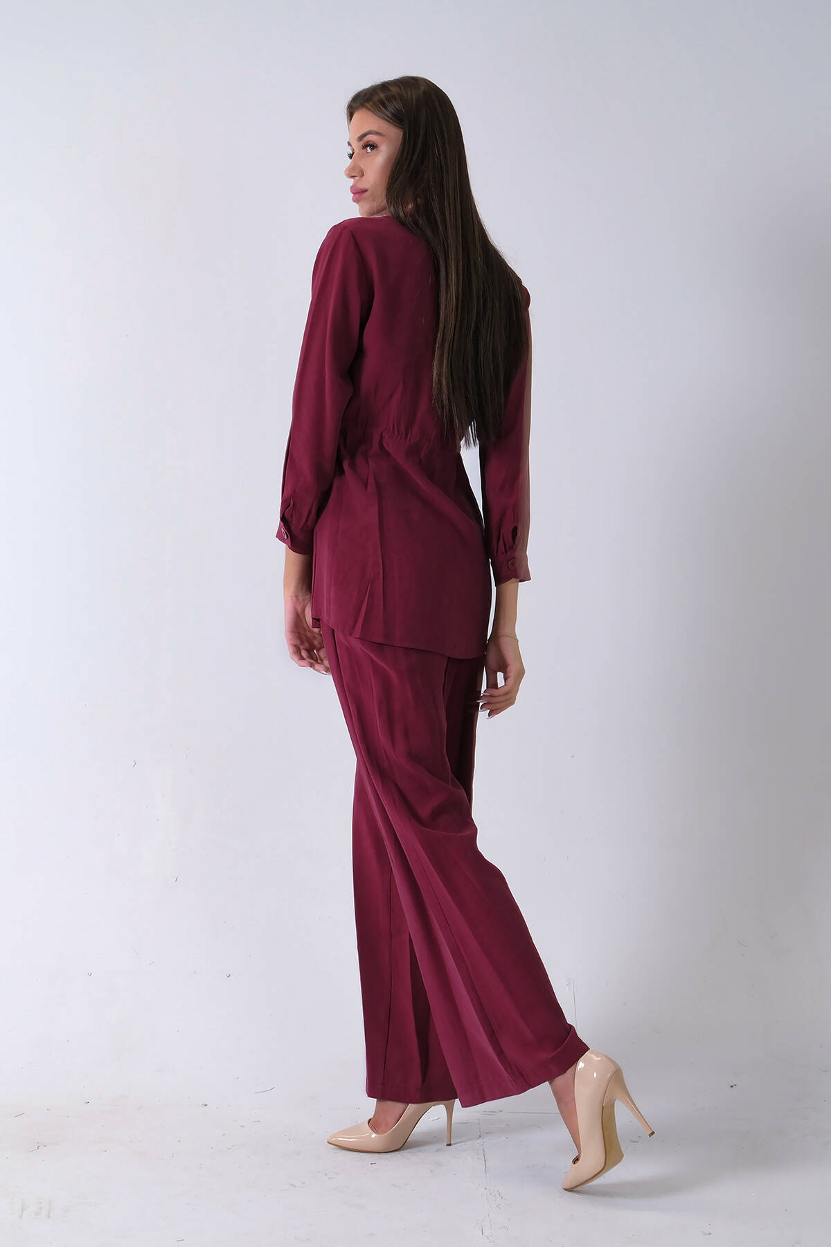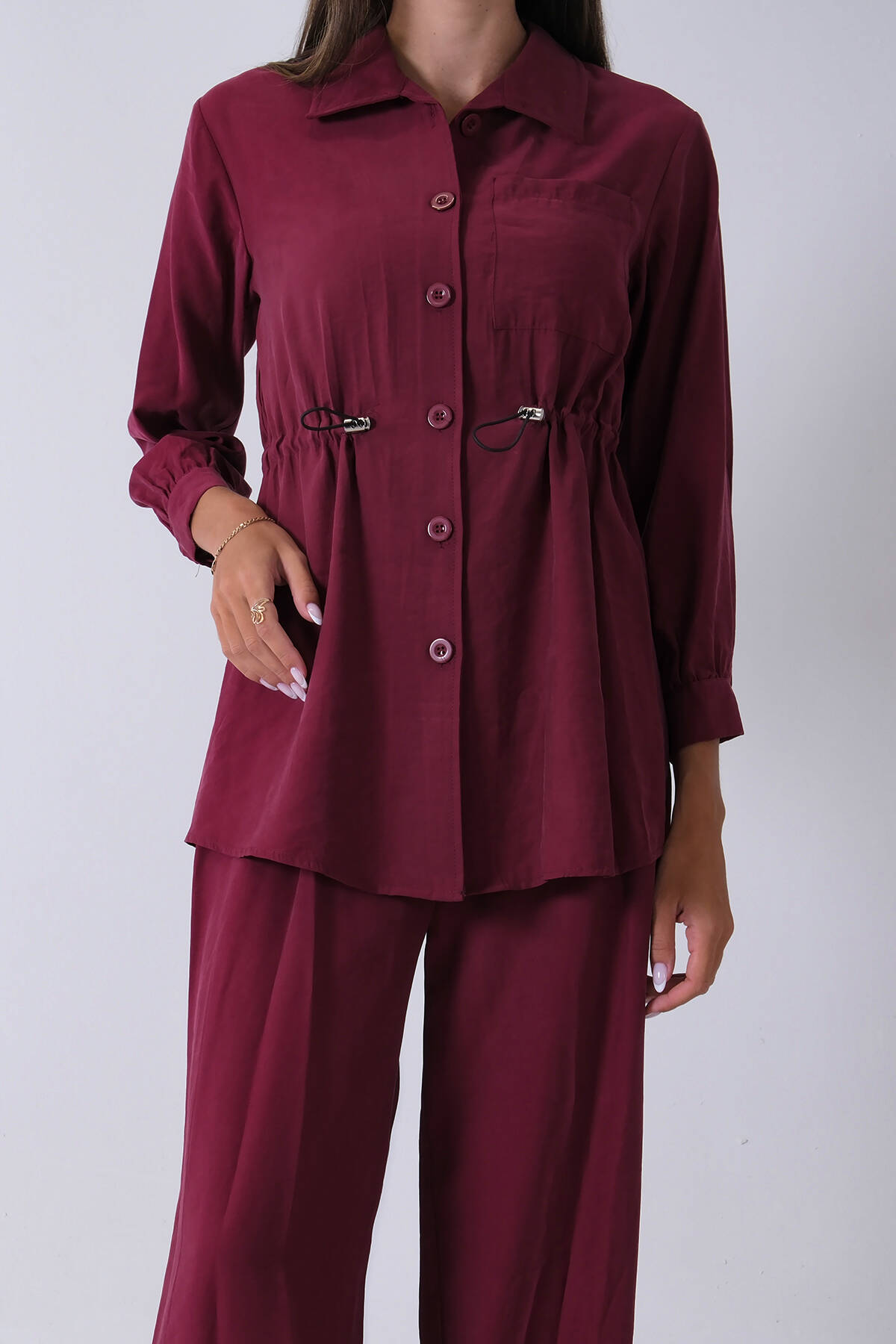 Bordo Beli Kemerli Gömlek Yaka Tunik Pantolonlu Takım 4592258.04