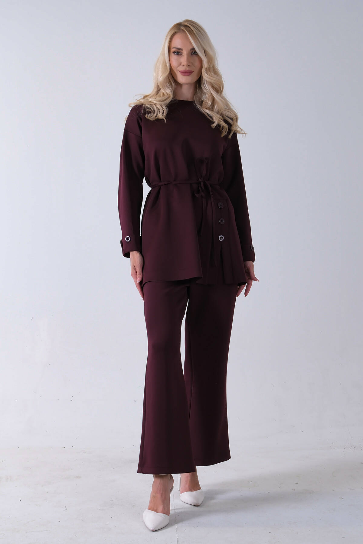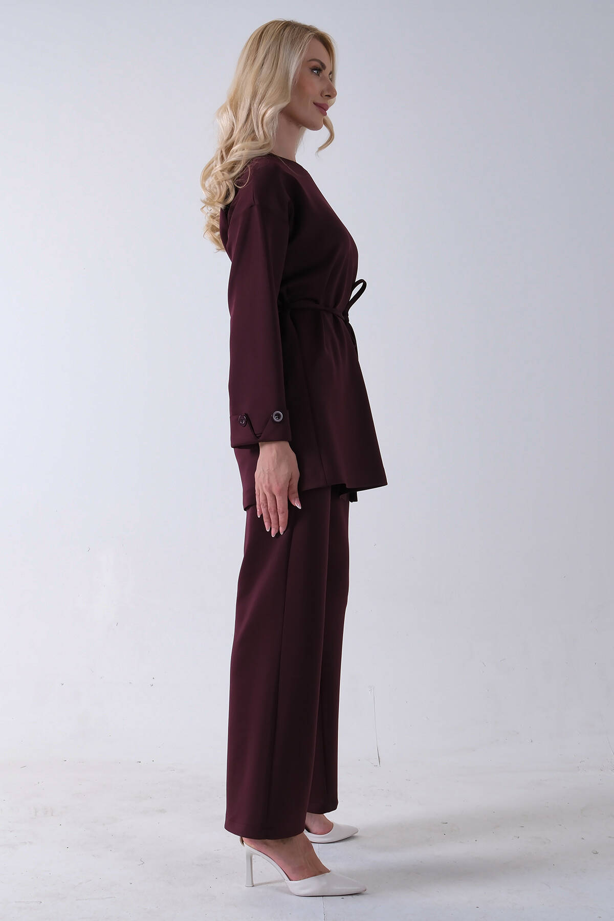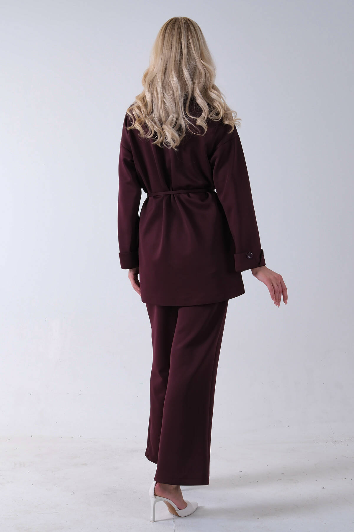 Bordo Bisiklet Yaka Önü Düğme Kapama Görünümlü Pantolonlu Scuba Takım 4592265.04