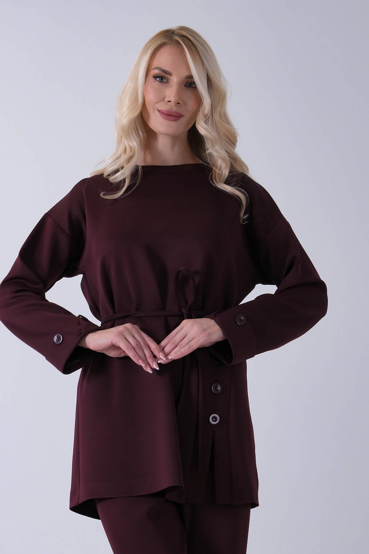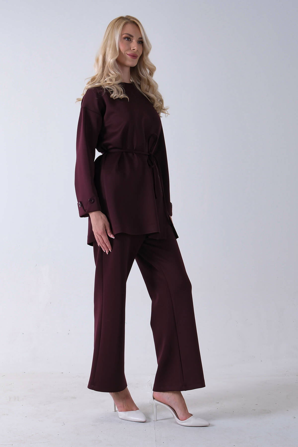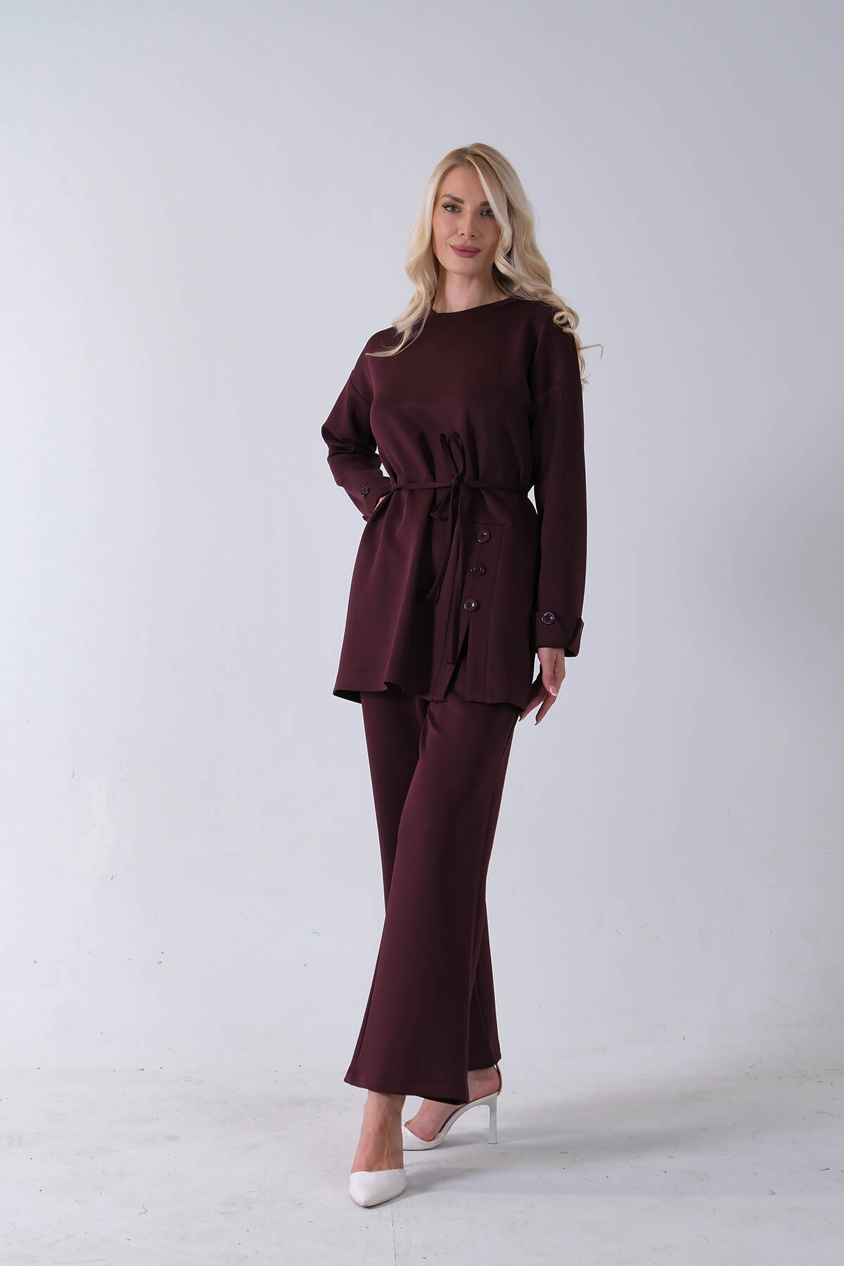 Bordo Bisiklet Yaka Önü Düğme Kapama Görünümlü Pantolonlu Scuba Takım 4592265.04