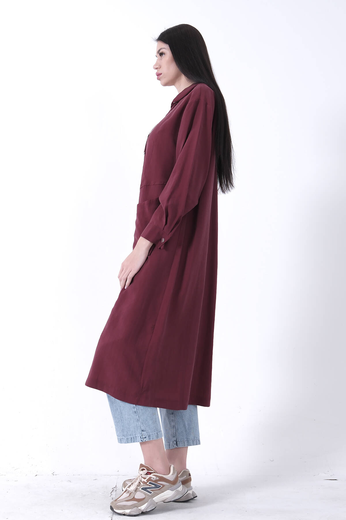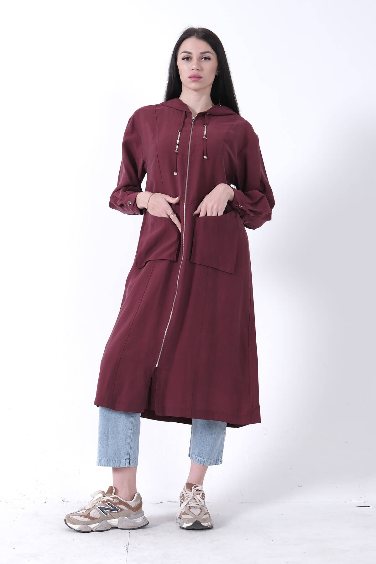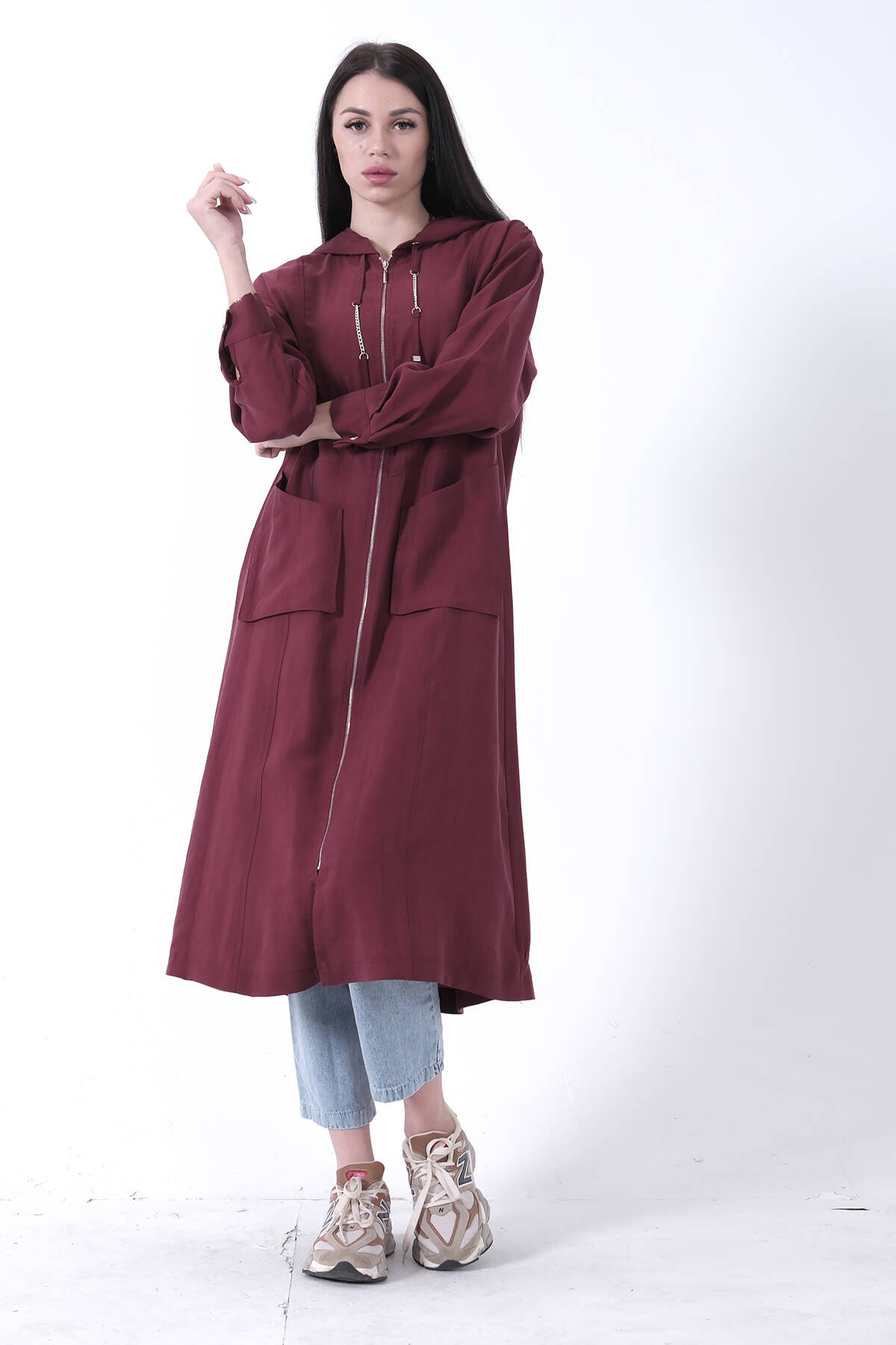 Bordo Çift Cep Detaylı Fermuar Kapamalı Kapüşonlu Kap 44510684.04