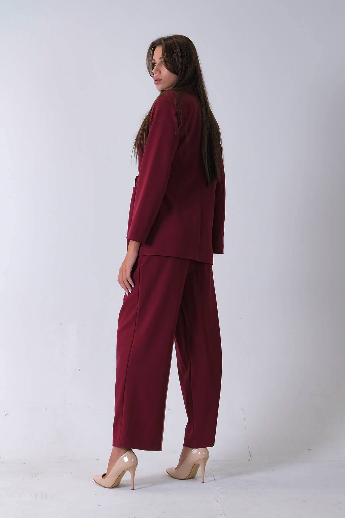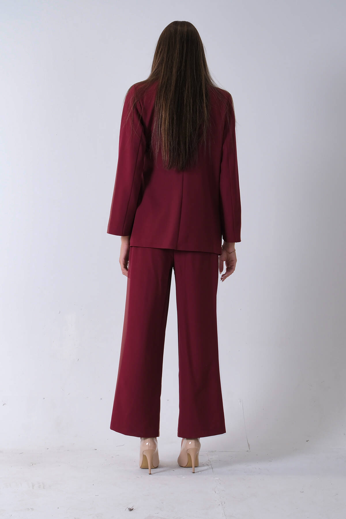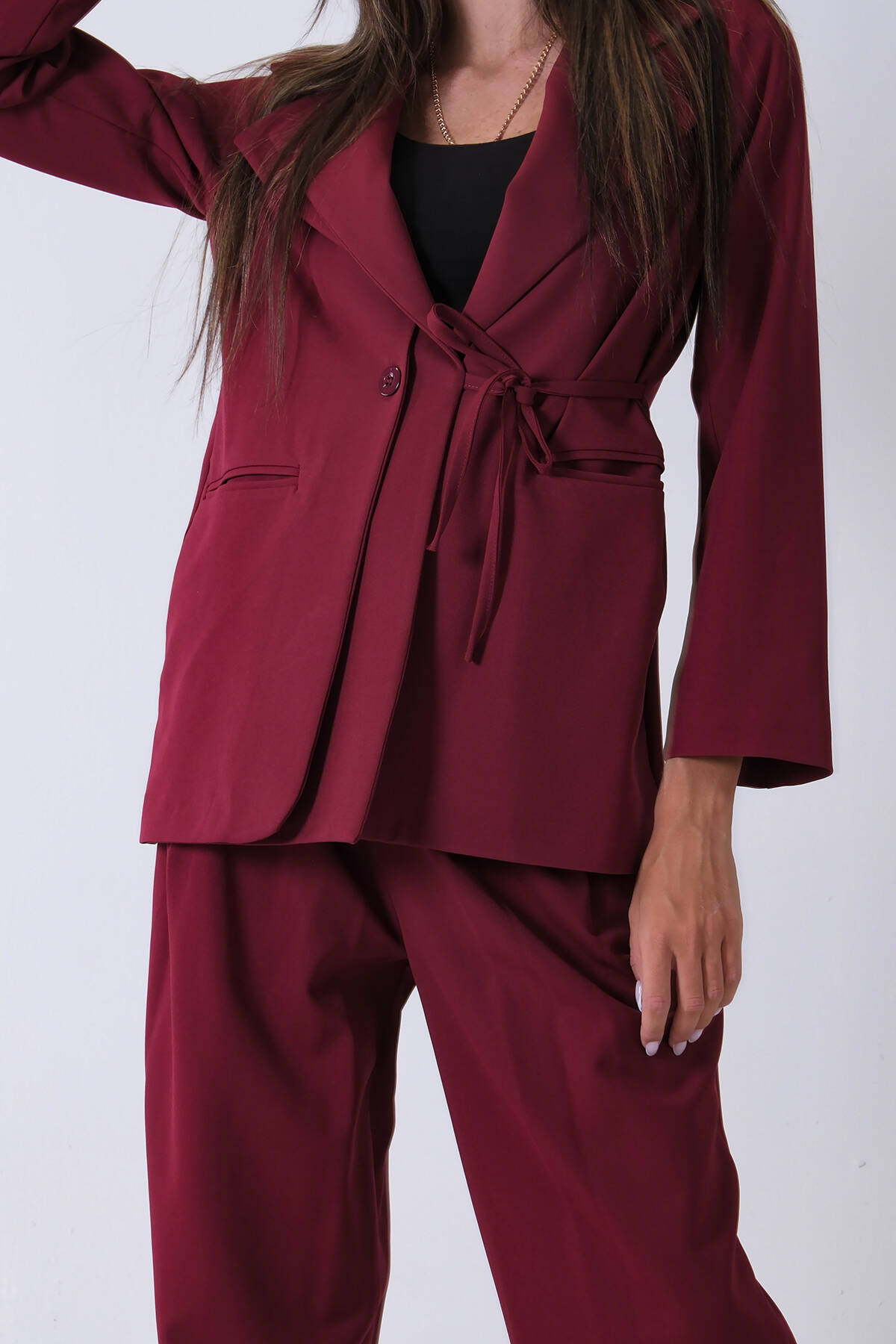 Bordo Çift Cep Yandan Bağlamalı Ceket Pantolonlu Takım 4592259.04