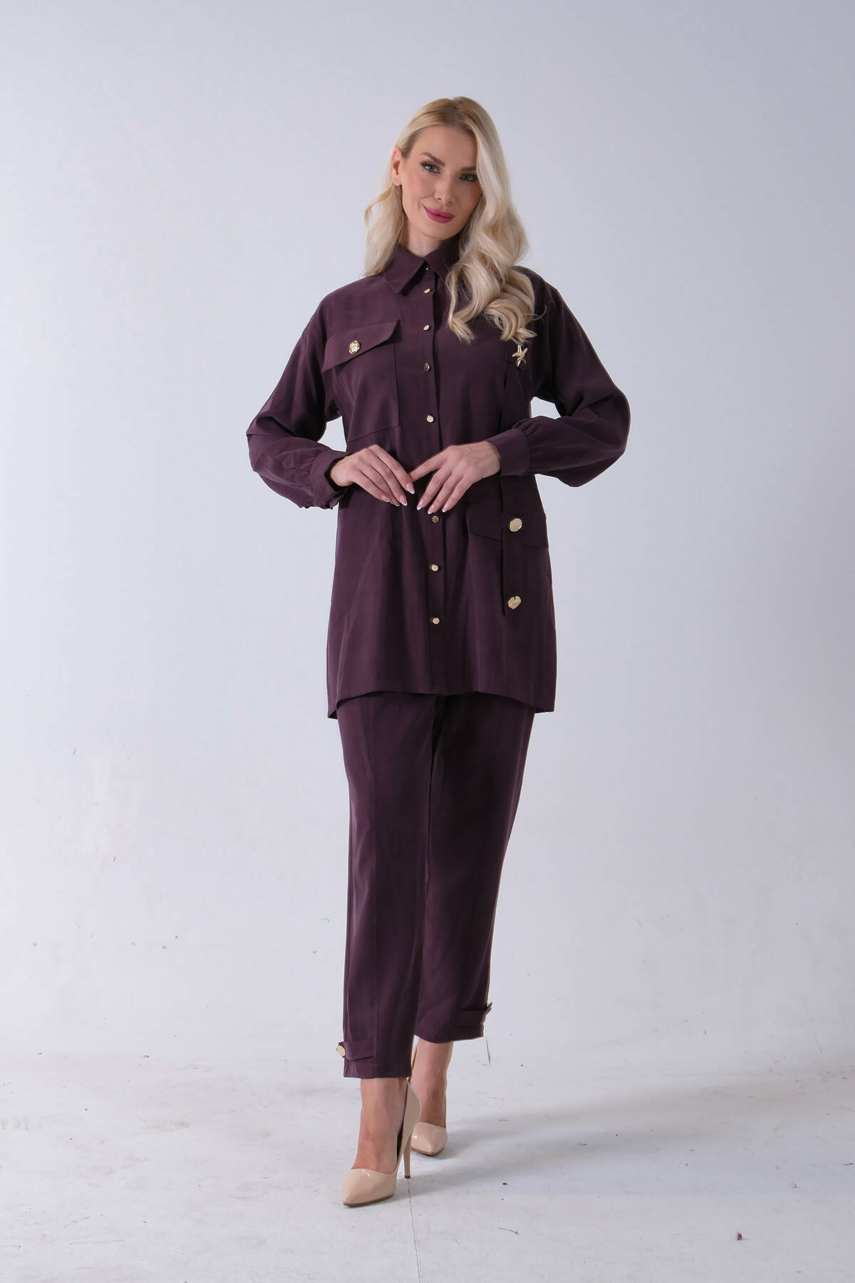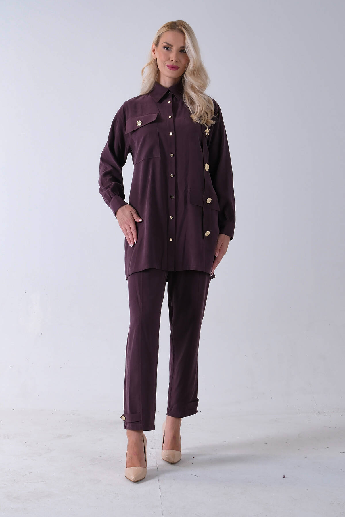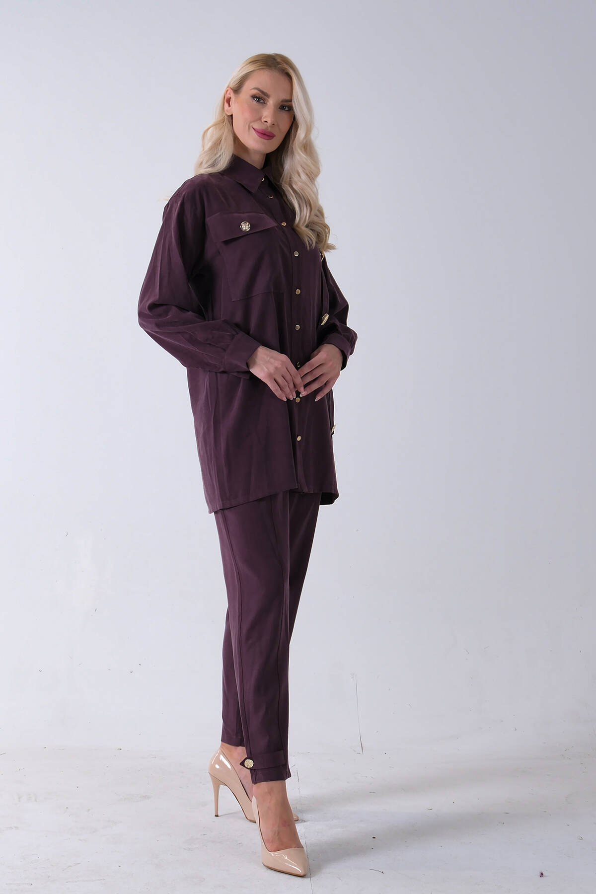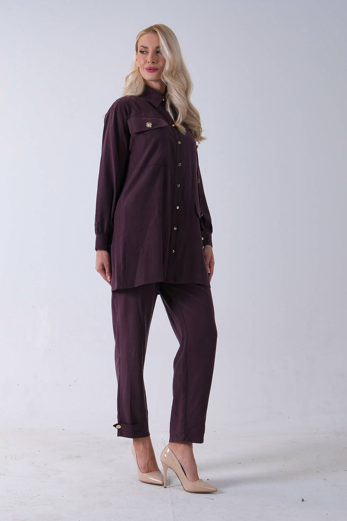 Mürdüm Bileği Lastikli 2 Cepli Fermuar Kapamalı Hırka Pantolonlu Takım 44510854.21