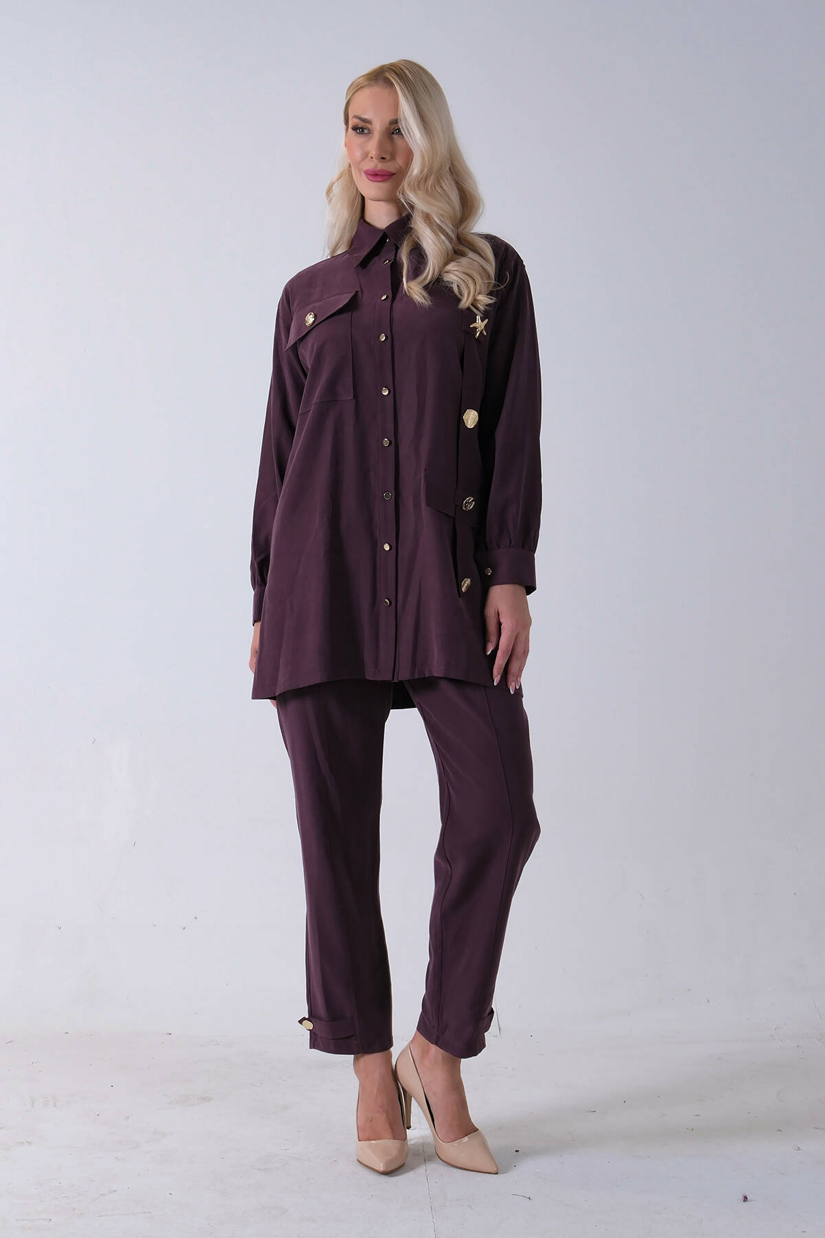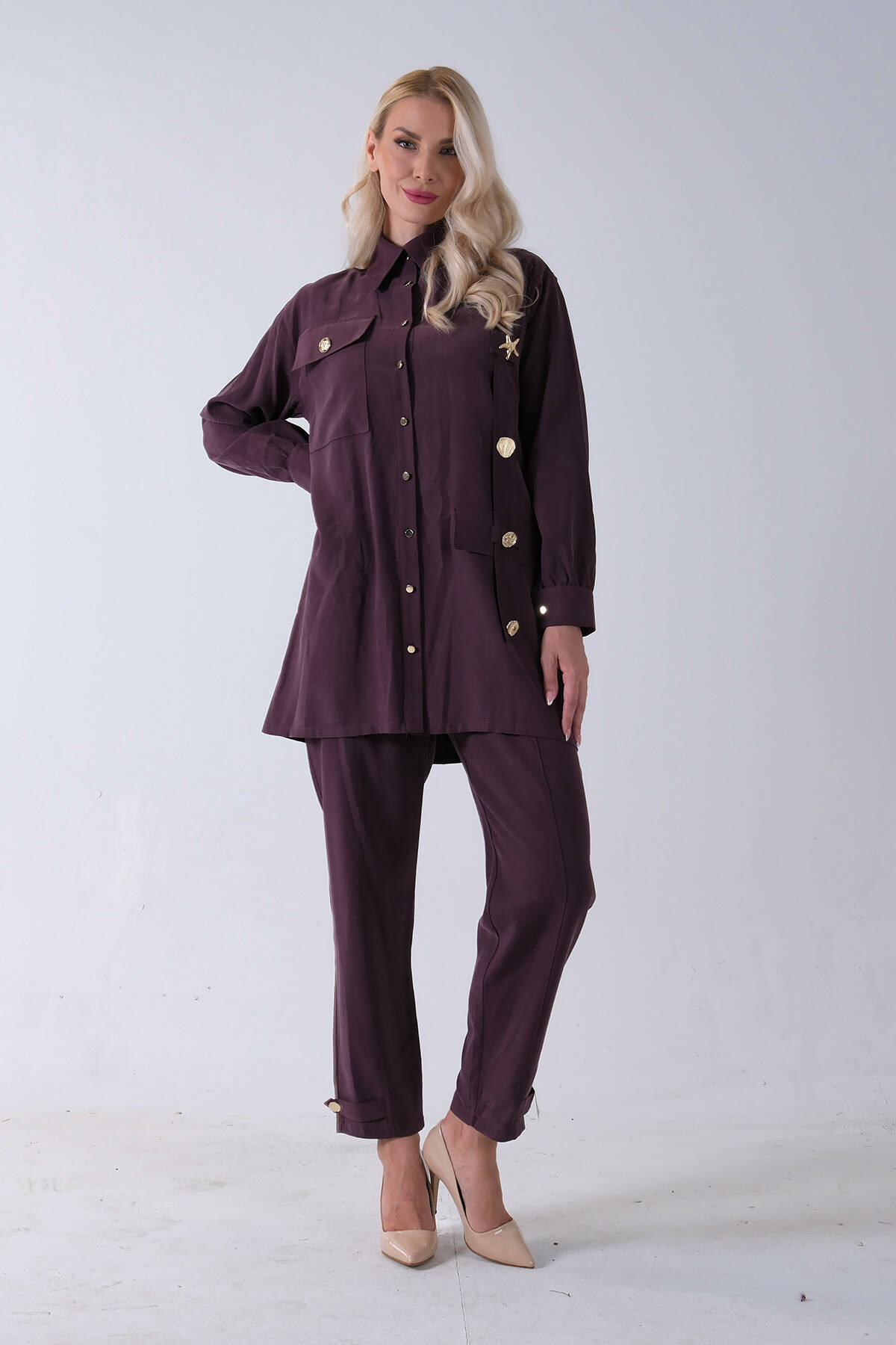Taş Yaka ve Pantolon Paçası Taş Detaylı Tunikli Takım 4703048.50