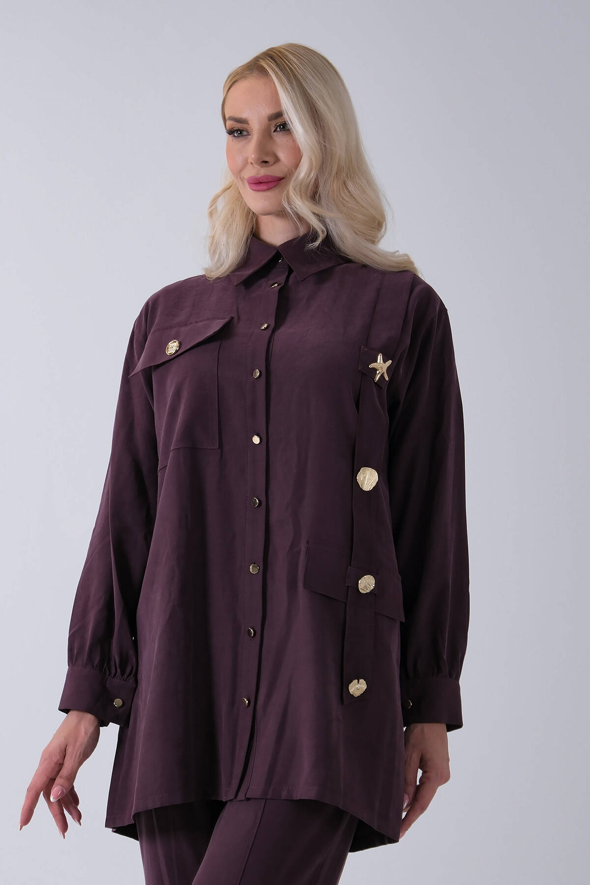 Bordo Göğüs Tek Cep Detaylı Aksesuar Düğmeli Pantolonlu Takım 4701352.04