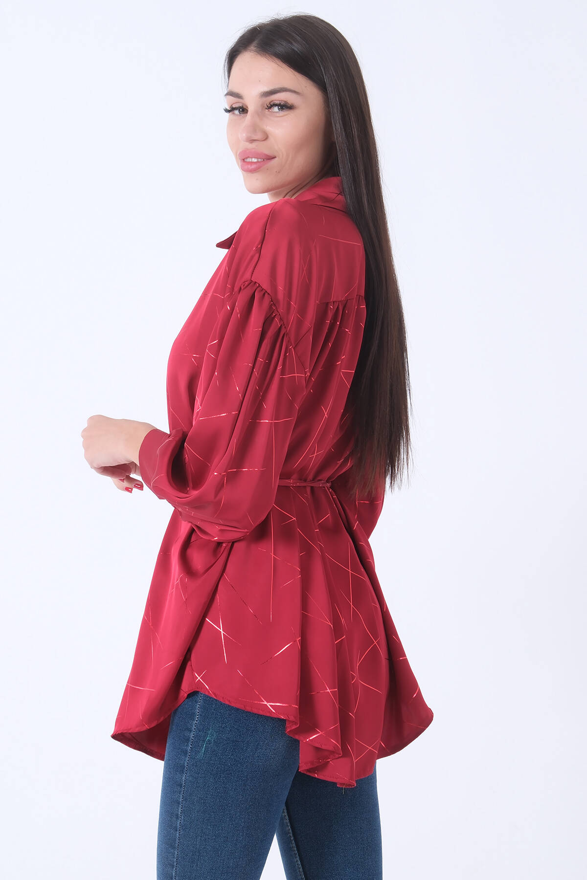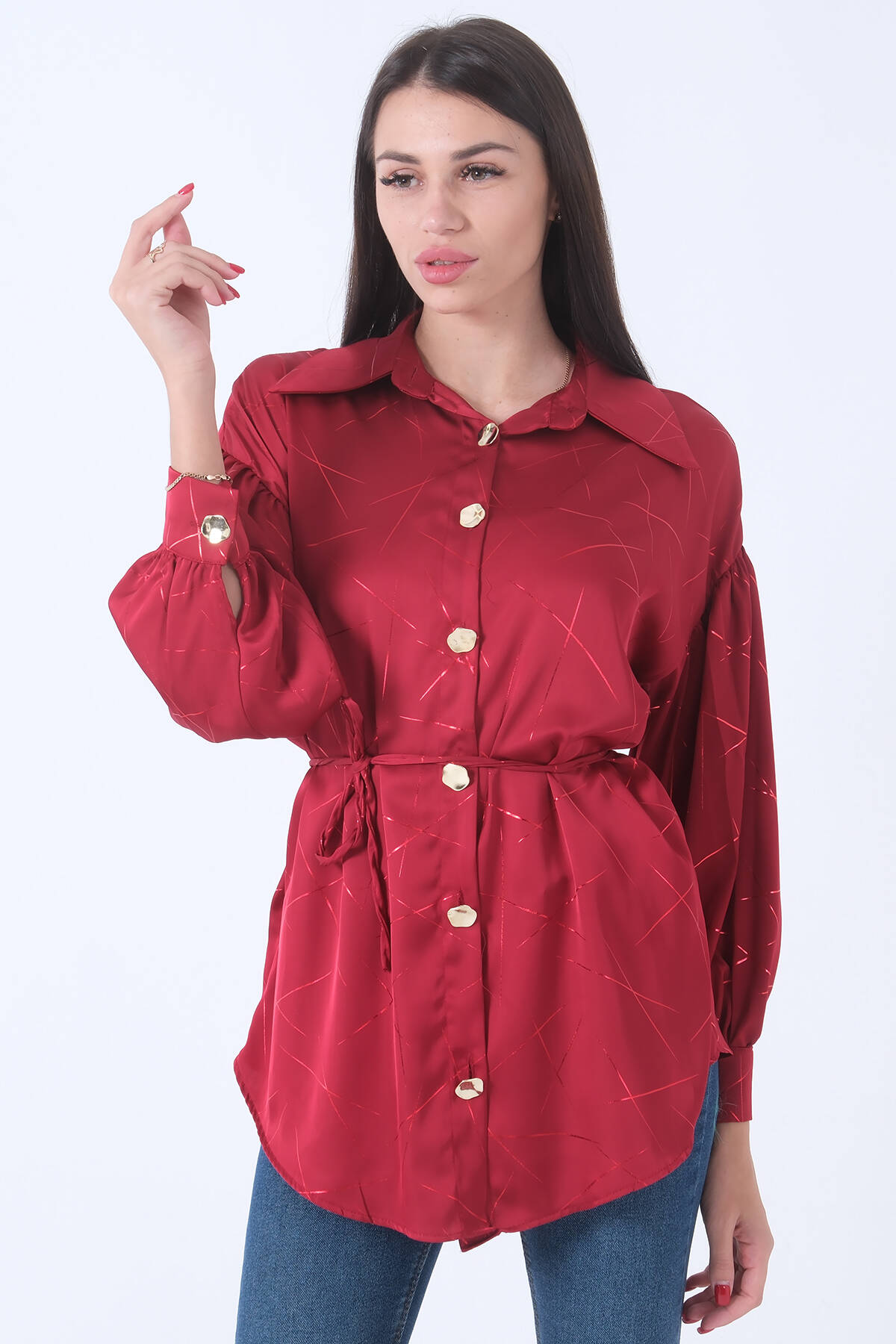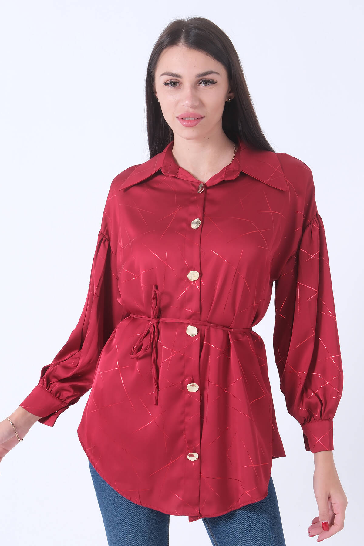 Bordo Gömlek Yaka Desenli Saten Tunik 45951991.04