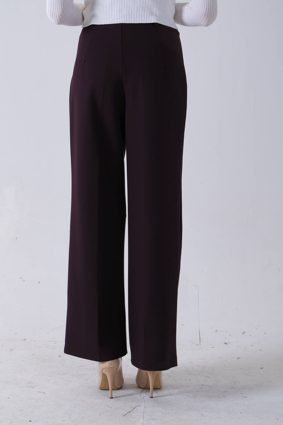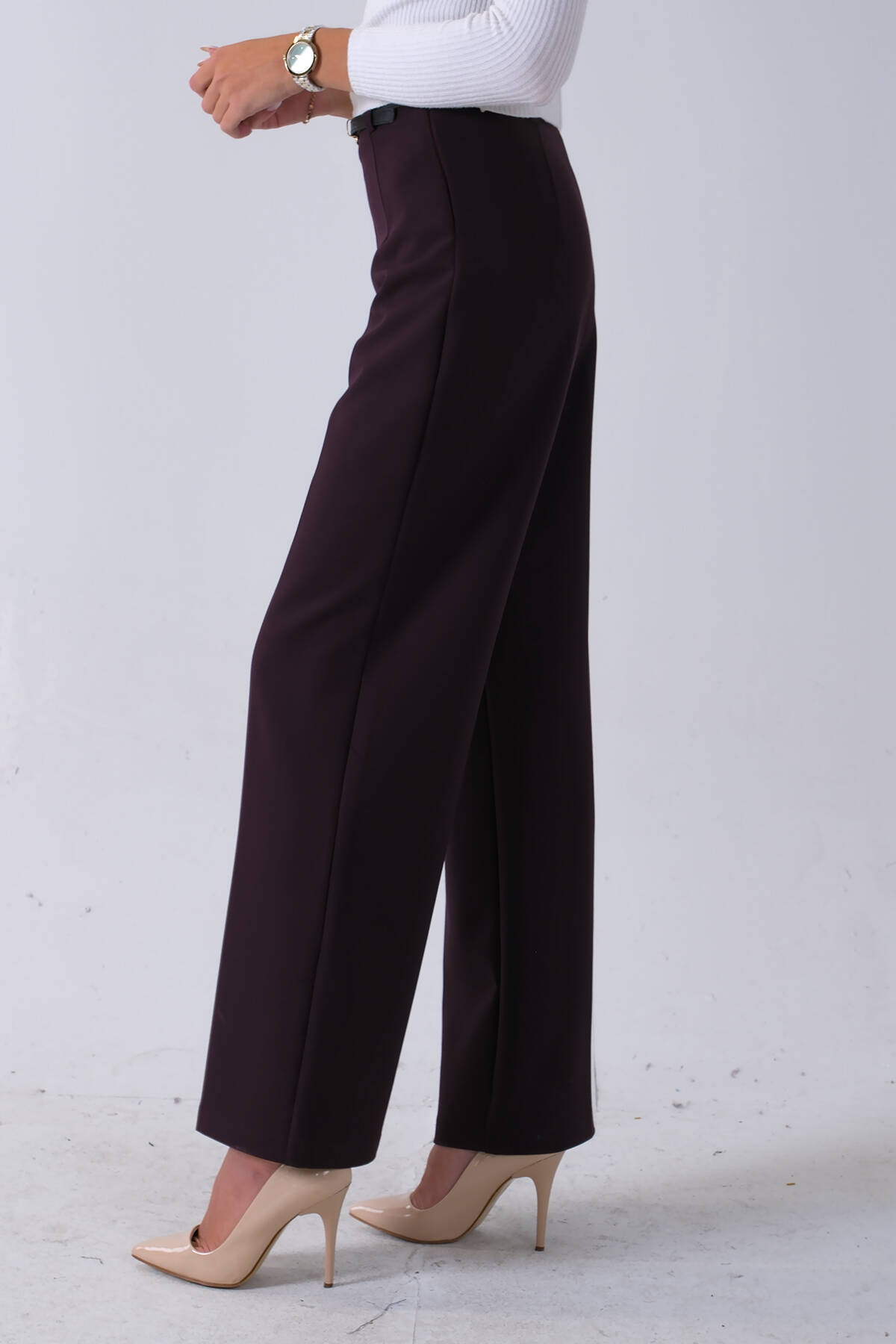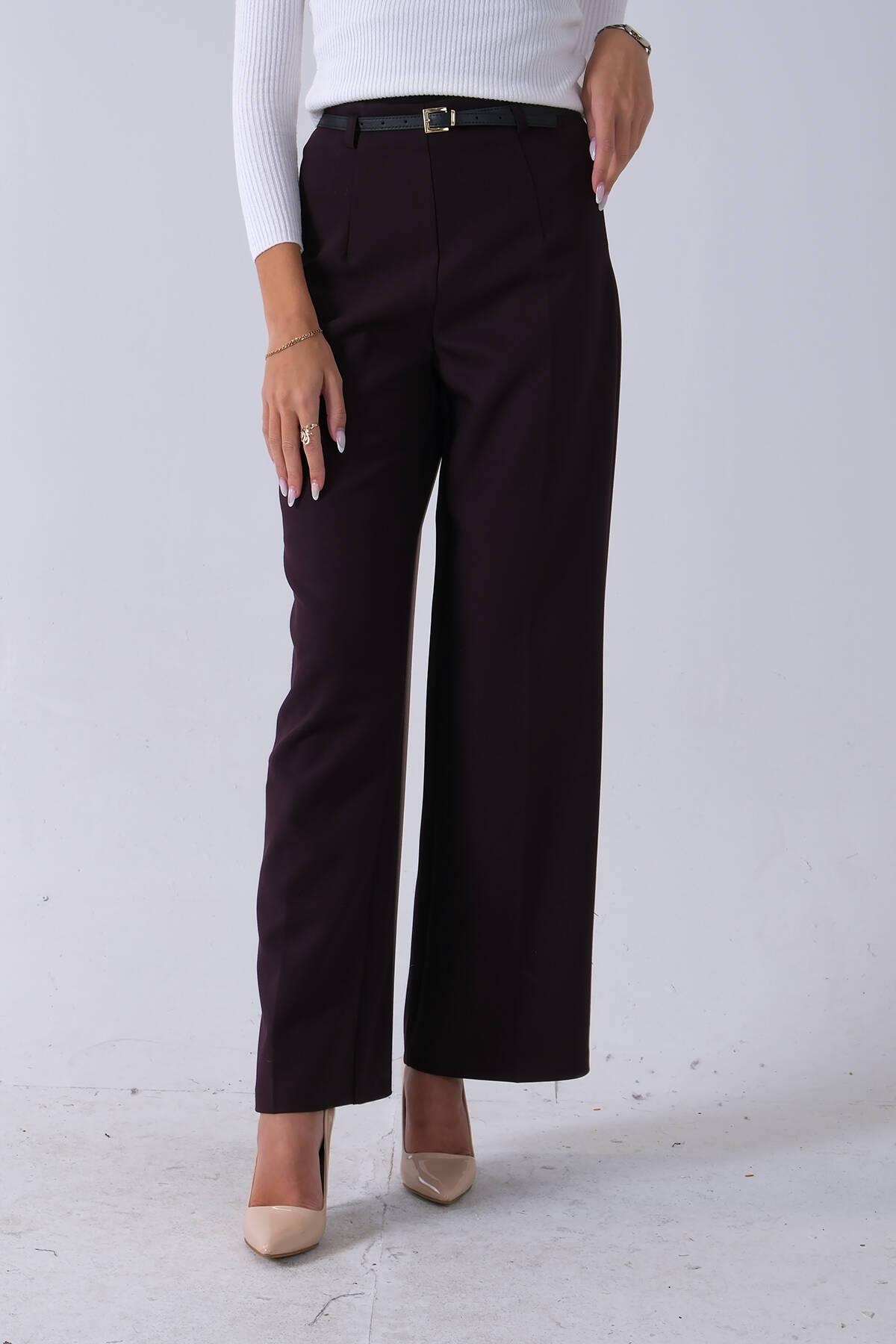 Bordo İnce Kemerli Cepsiz Bol Paça Uzun Pantolon 03030306.04