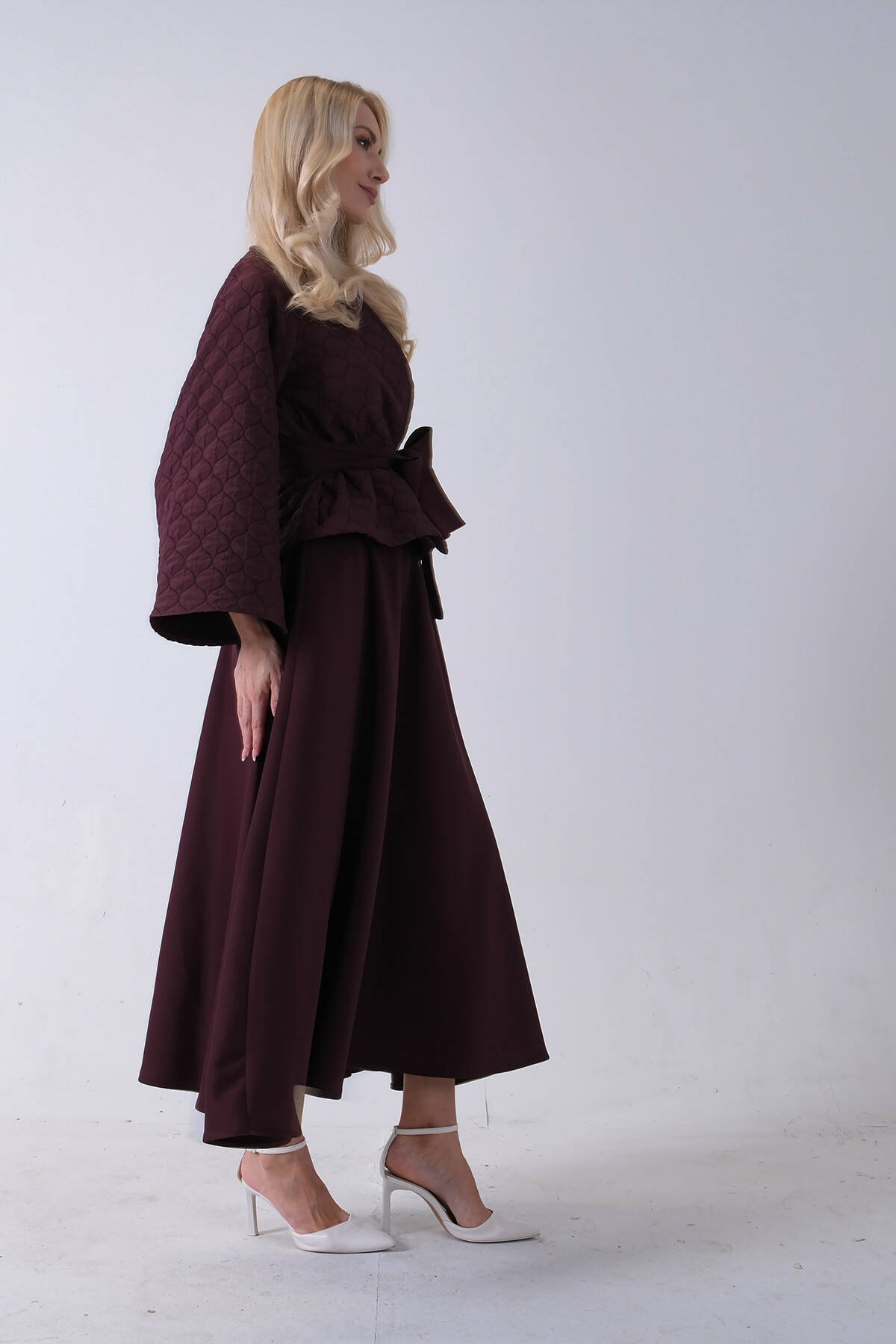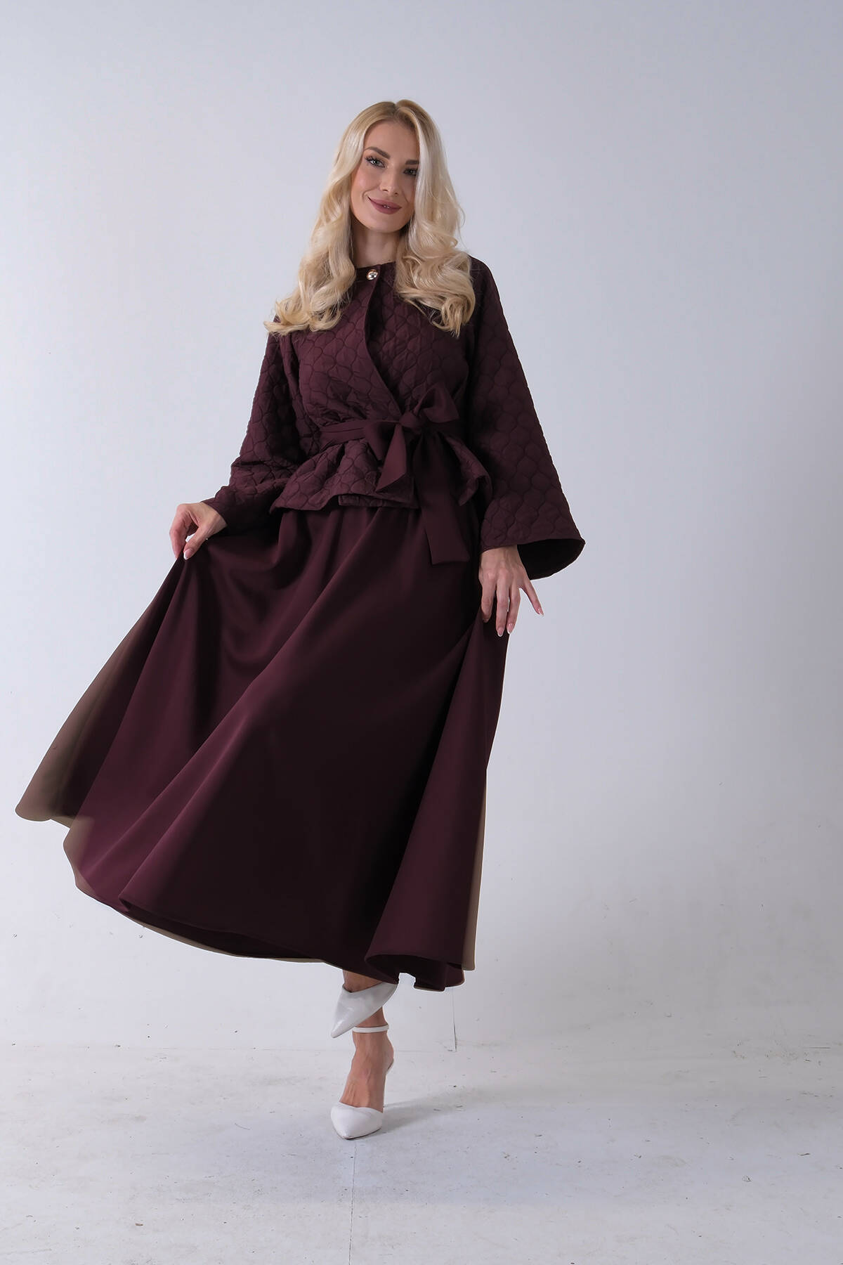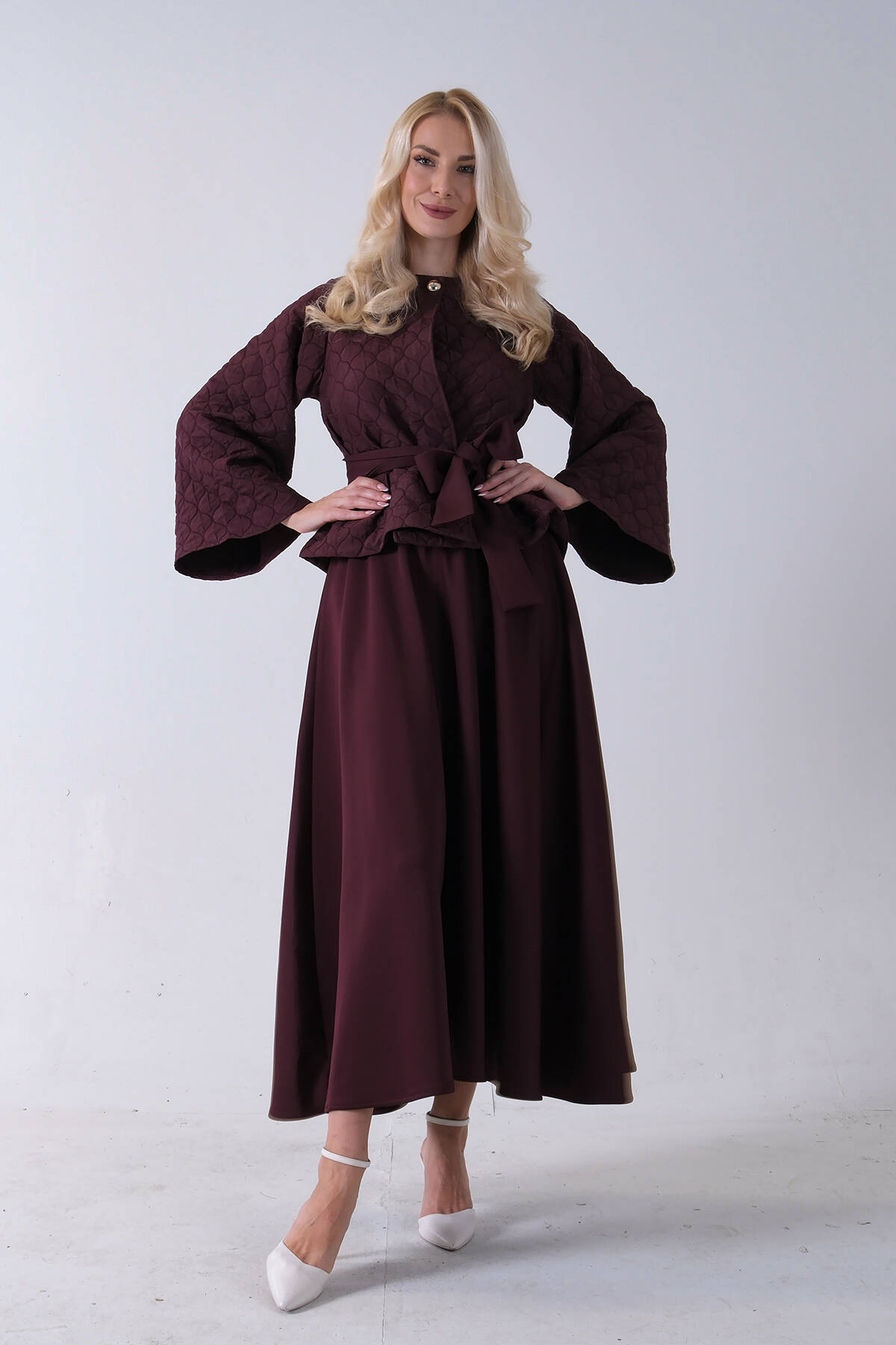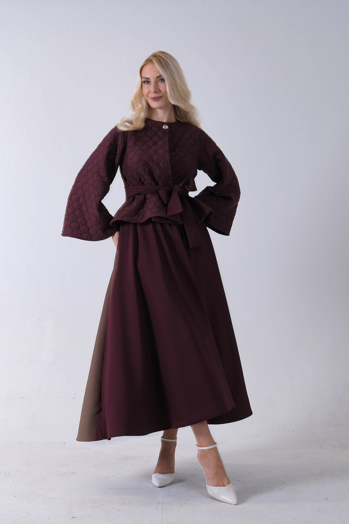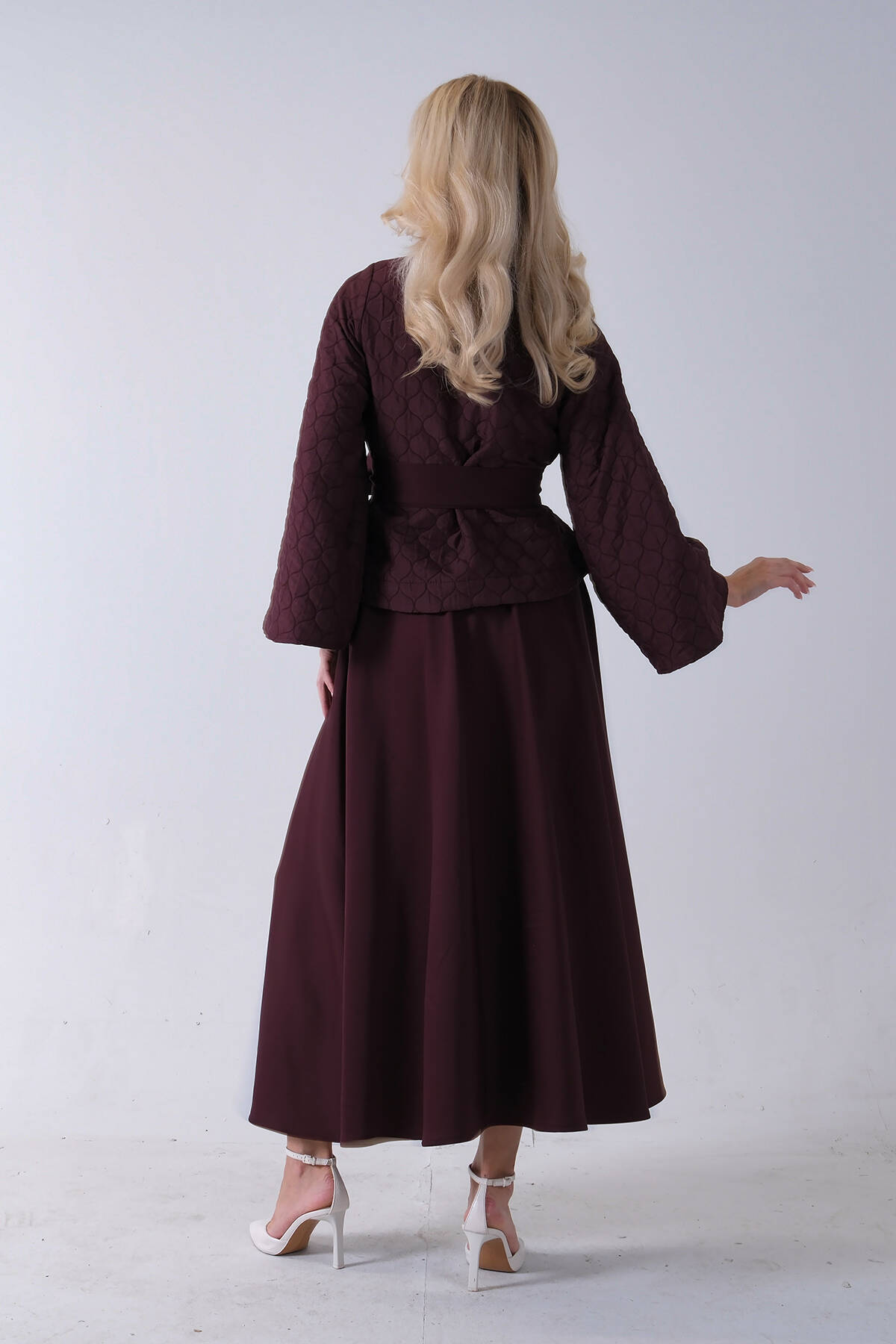 Bordo Kapitone Desenli Ceket Etekli Scuba Takım 5303163.04